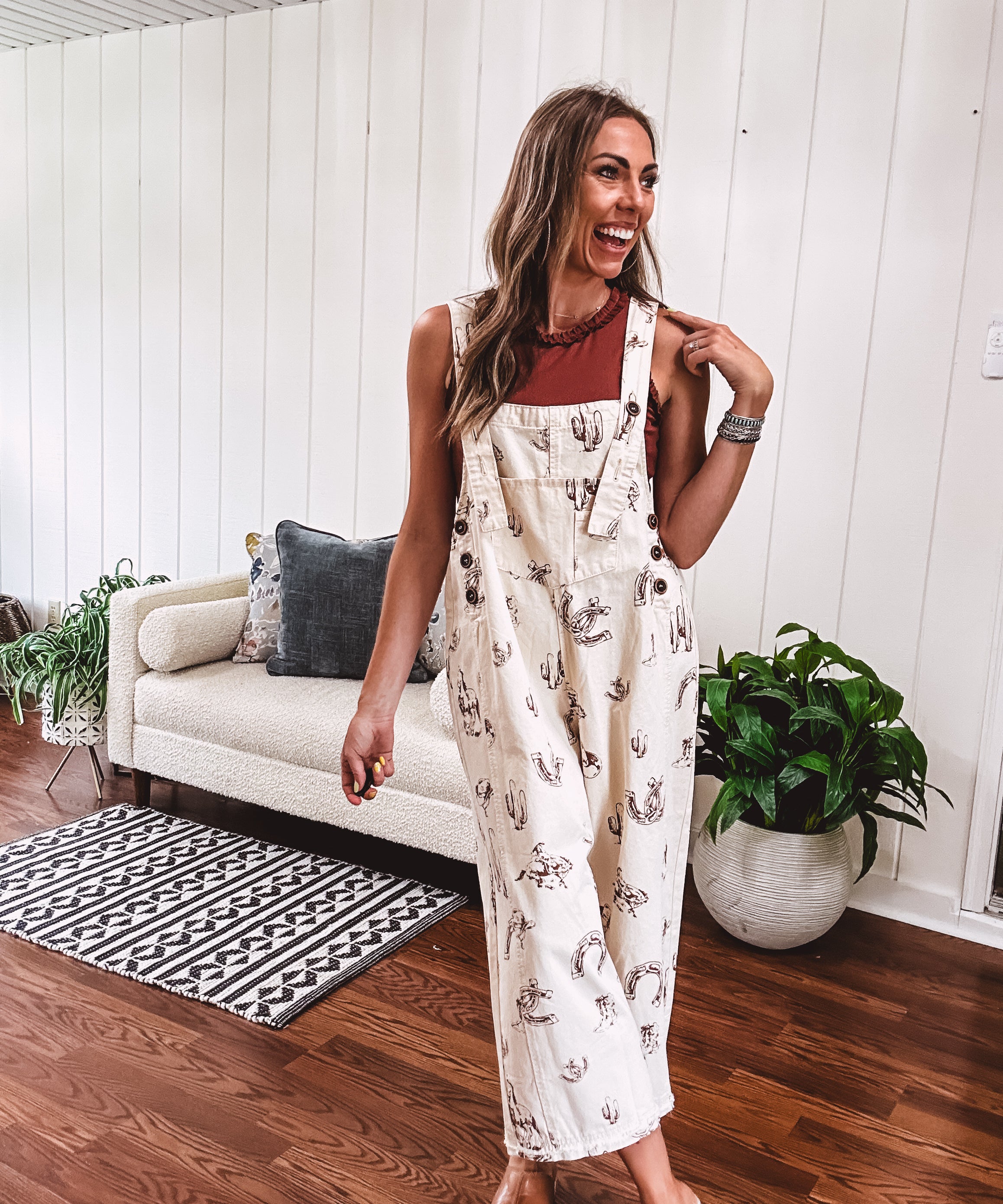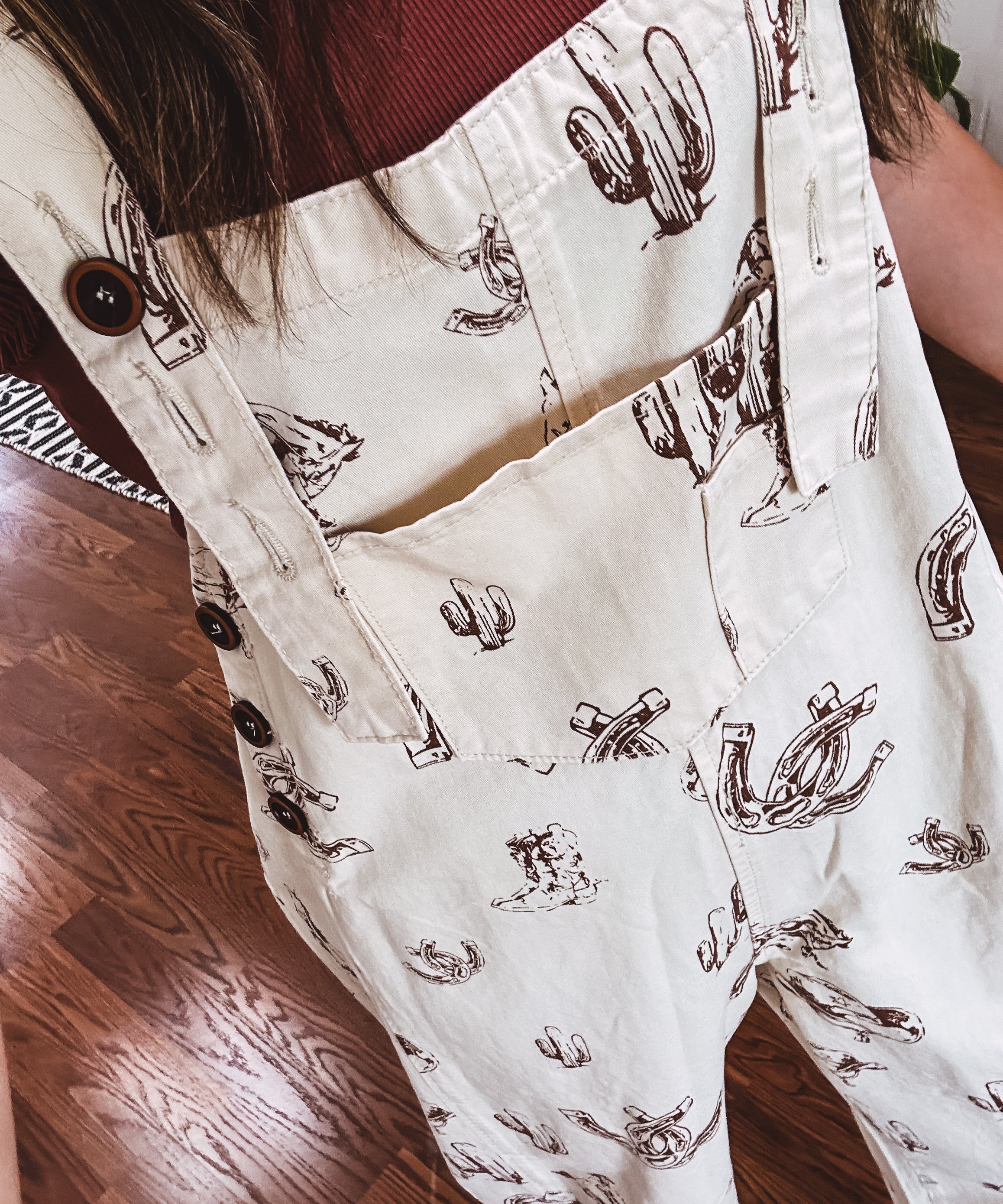 Khaki Western Print Twill Overalls