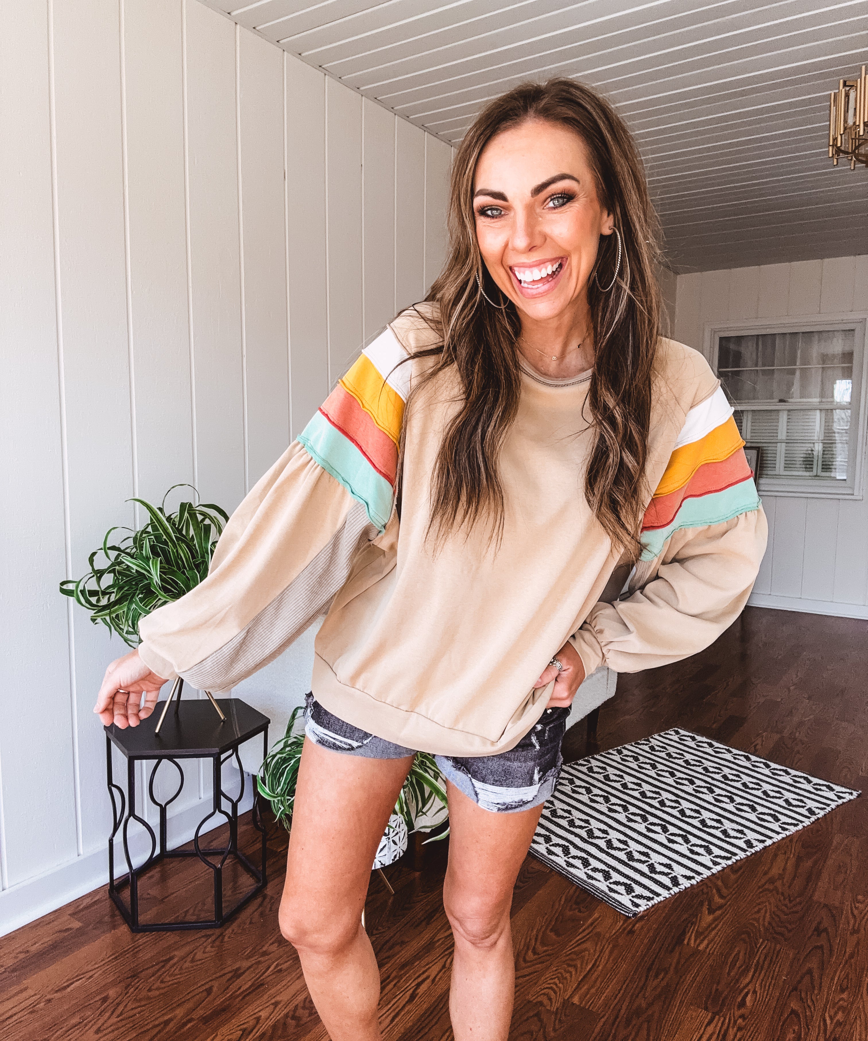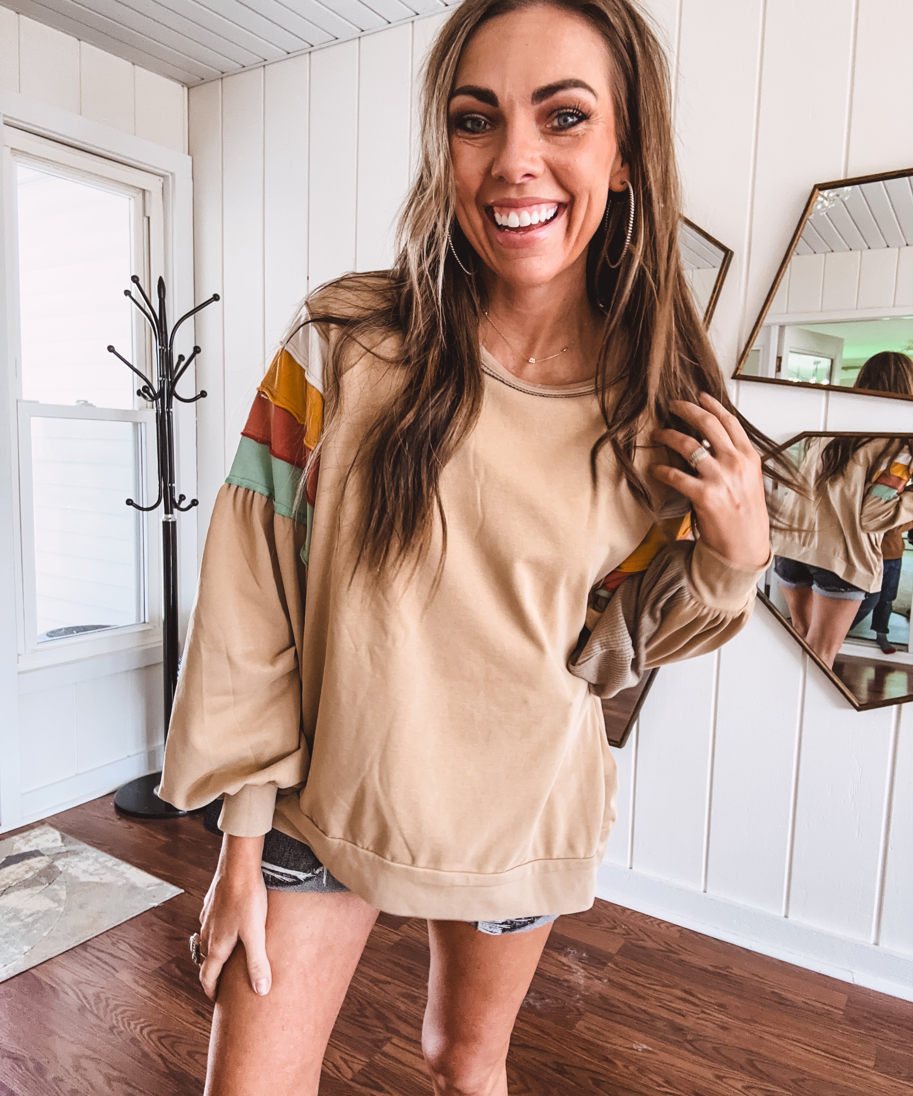 Latte Colorblock Shoulder Mineral Wash Terry Pullover