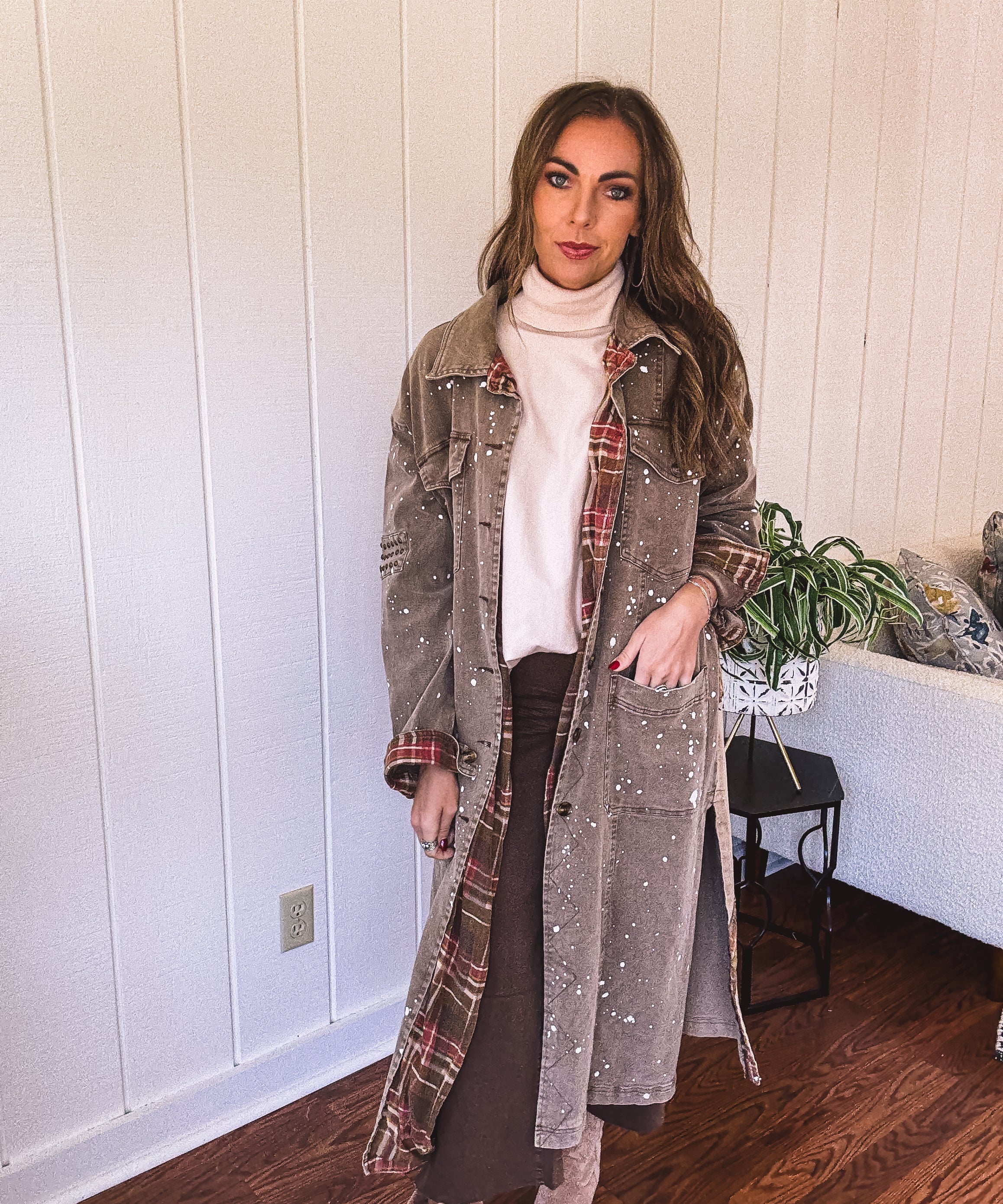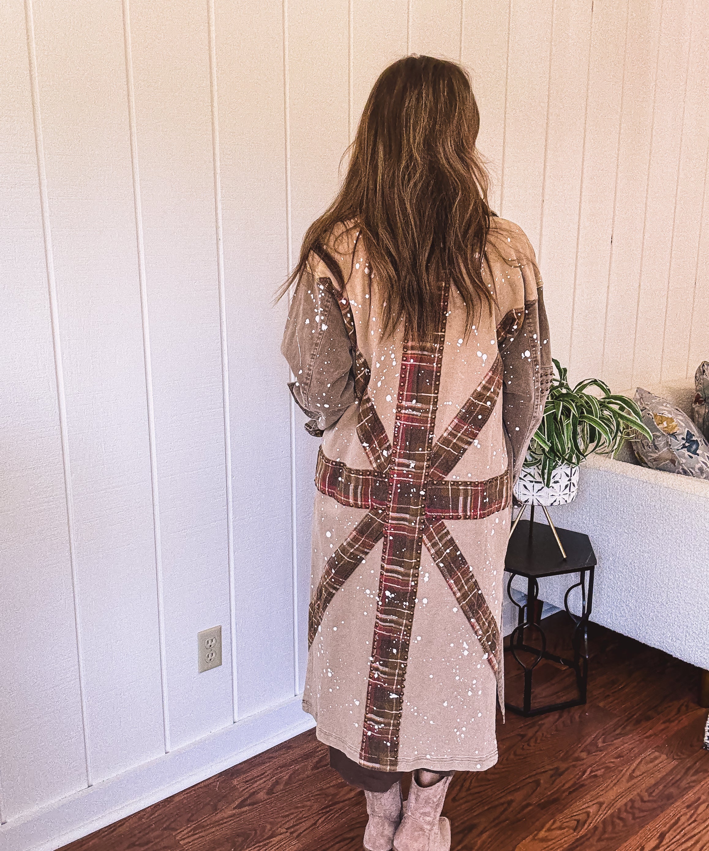 Brown Mineral Wash Paint Splatter Starburst Jacket