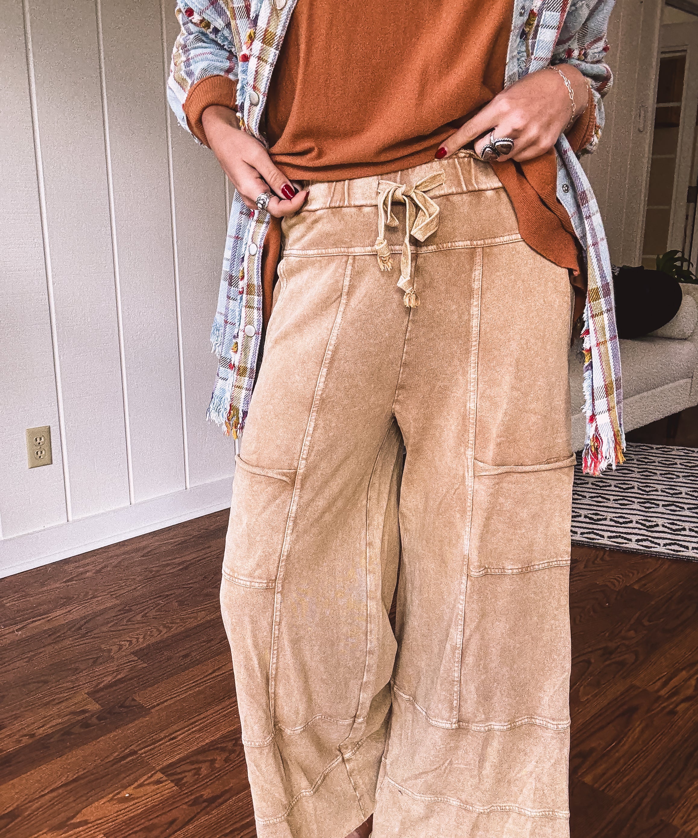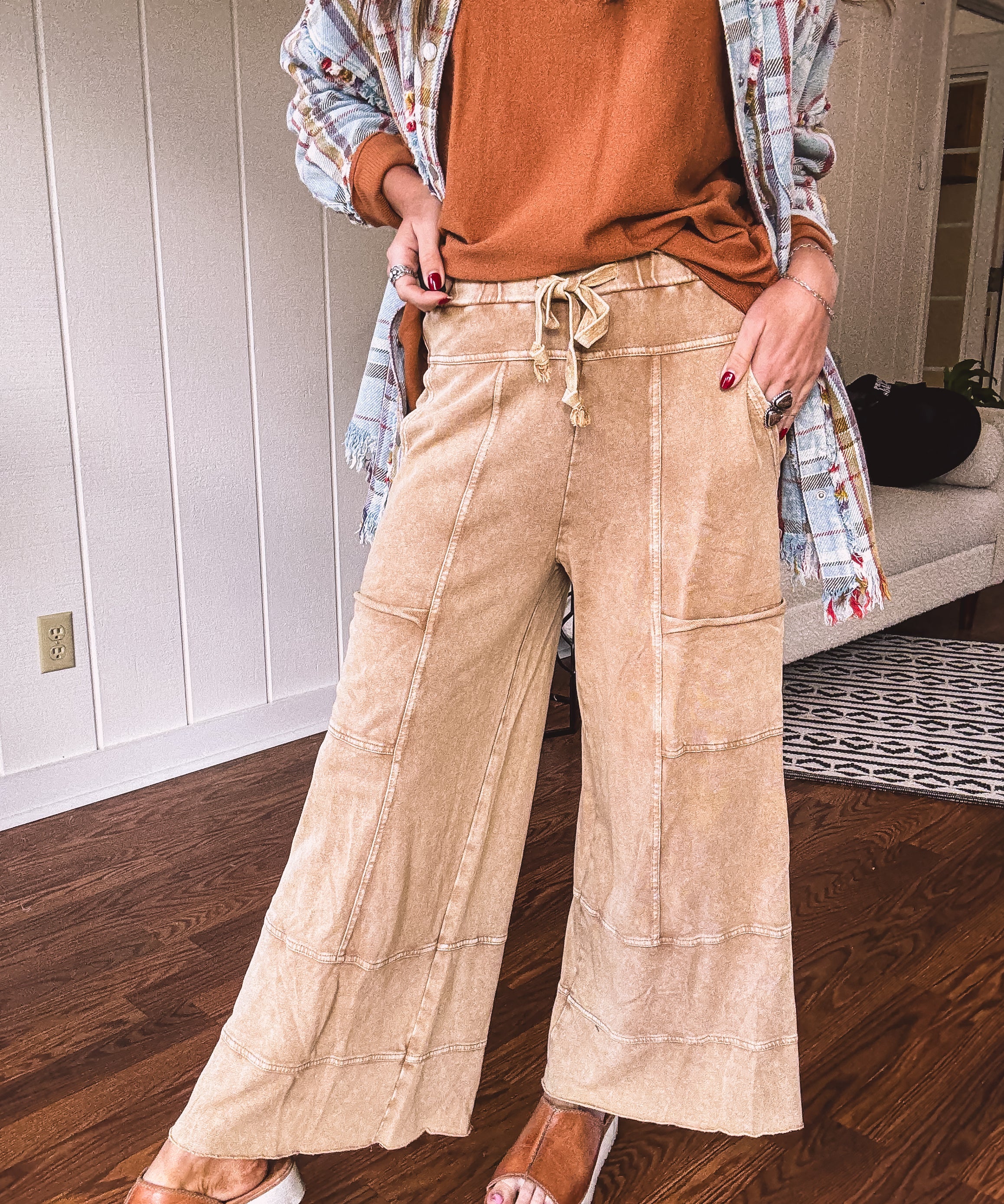 Camel Terry Knit Utility Pant