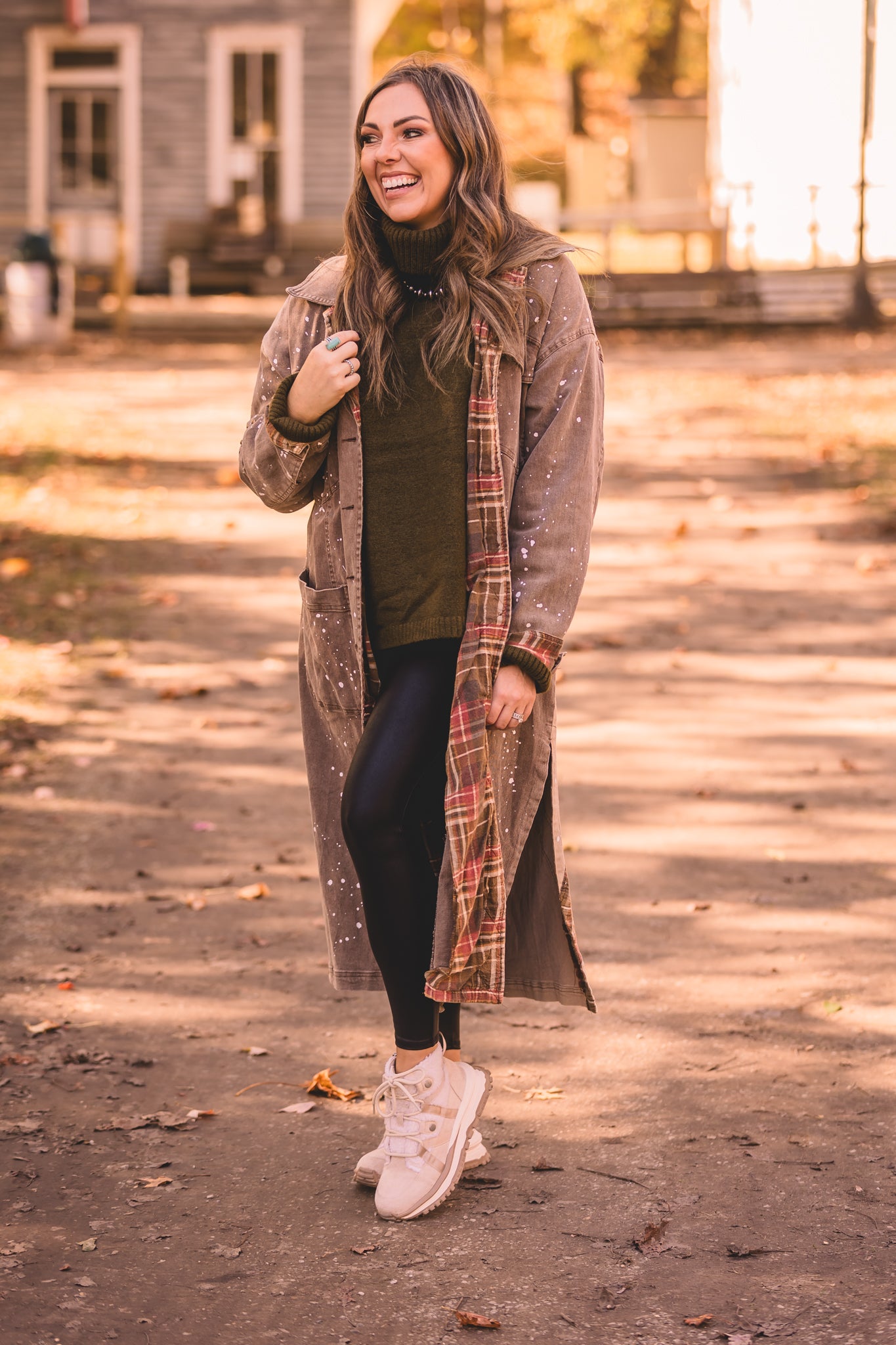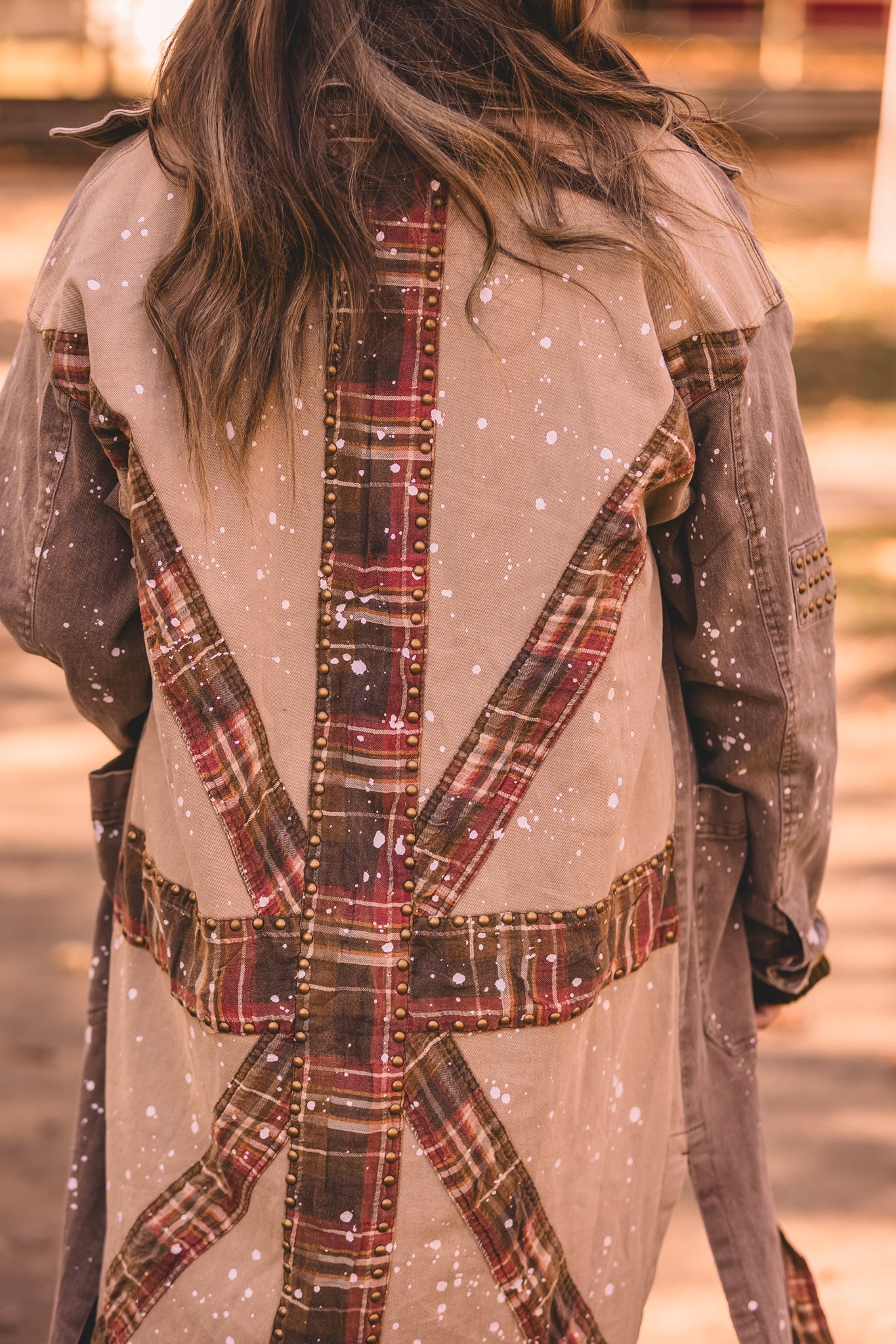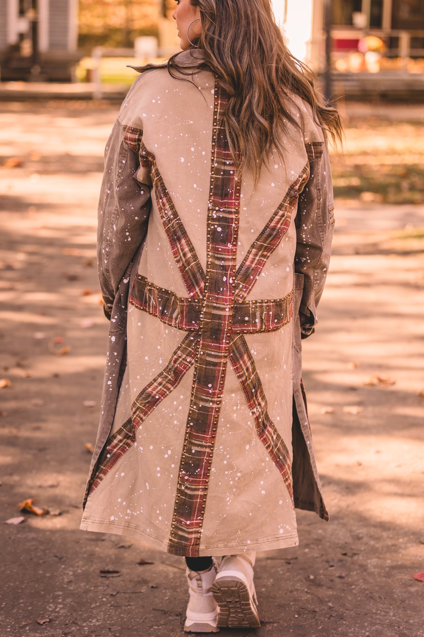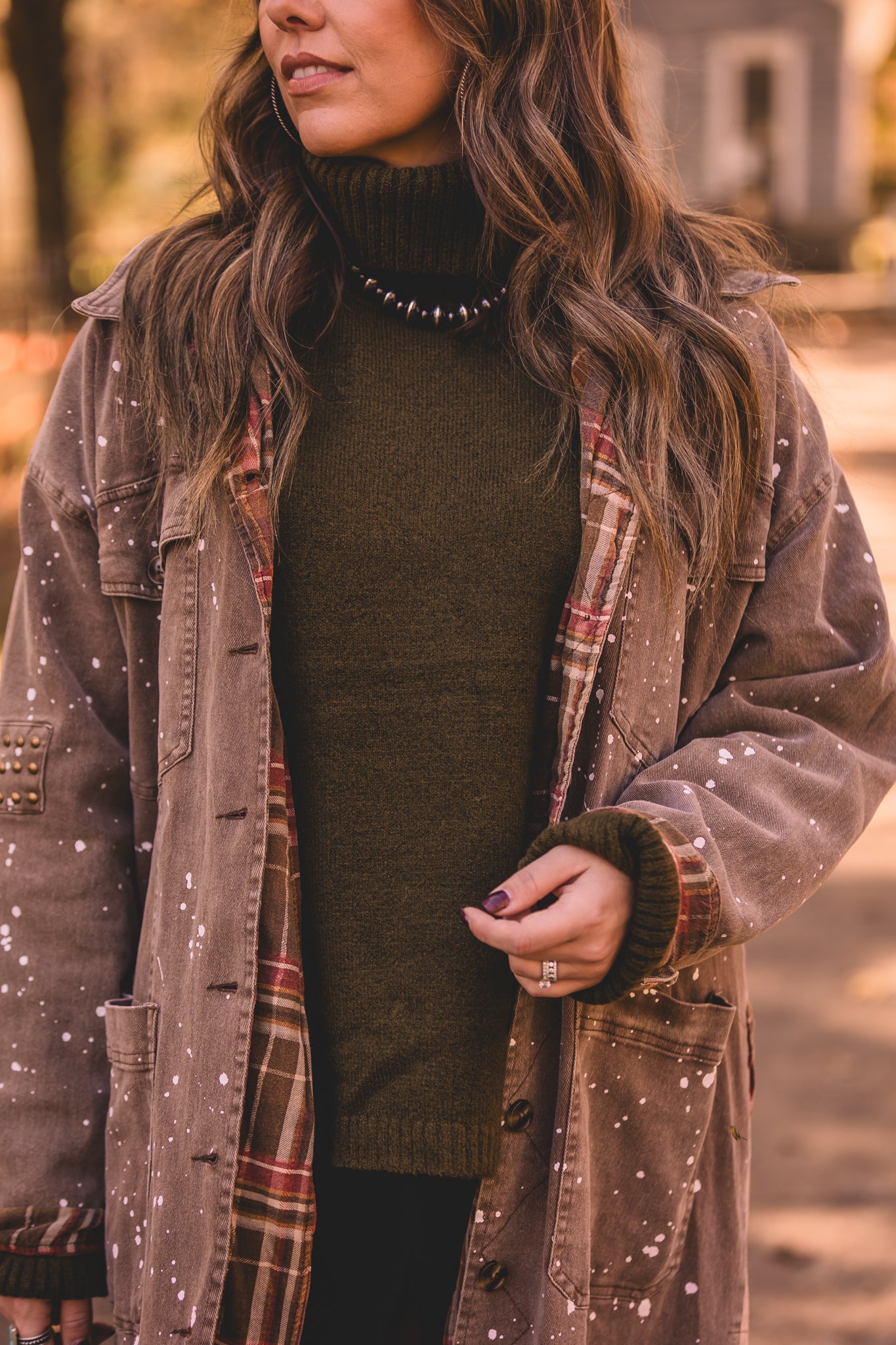 Embrace vintage vibes with this Brown Mineral Wash Paint Splatter Starburst Jacket—perfect for playful layering. Its casual yet bold design effortlessly adds character to any outfit, making your style stand out with a fun, artistic edge.