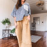 Washed Wide Leg Terry Knit Pant