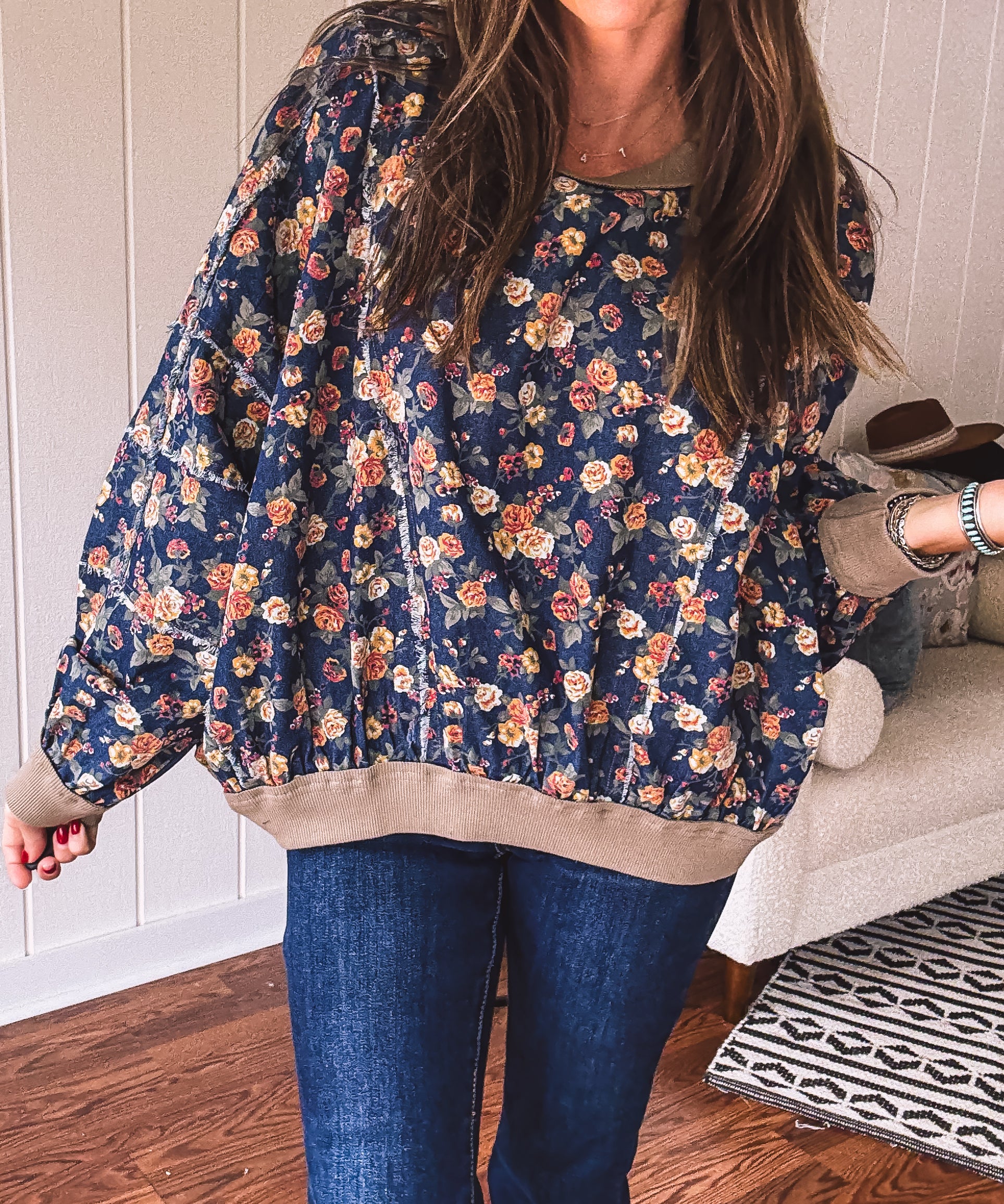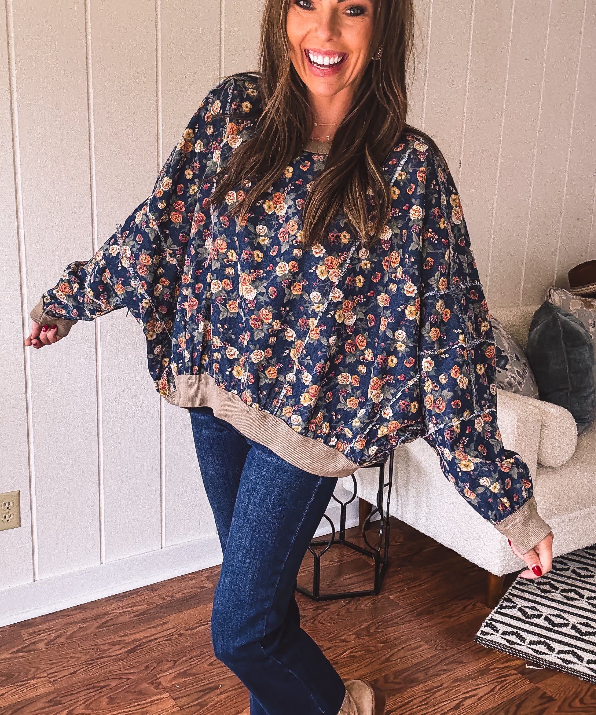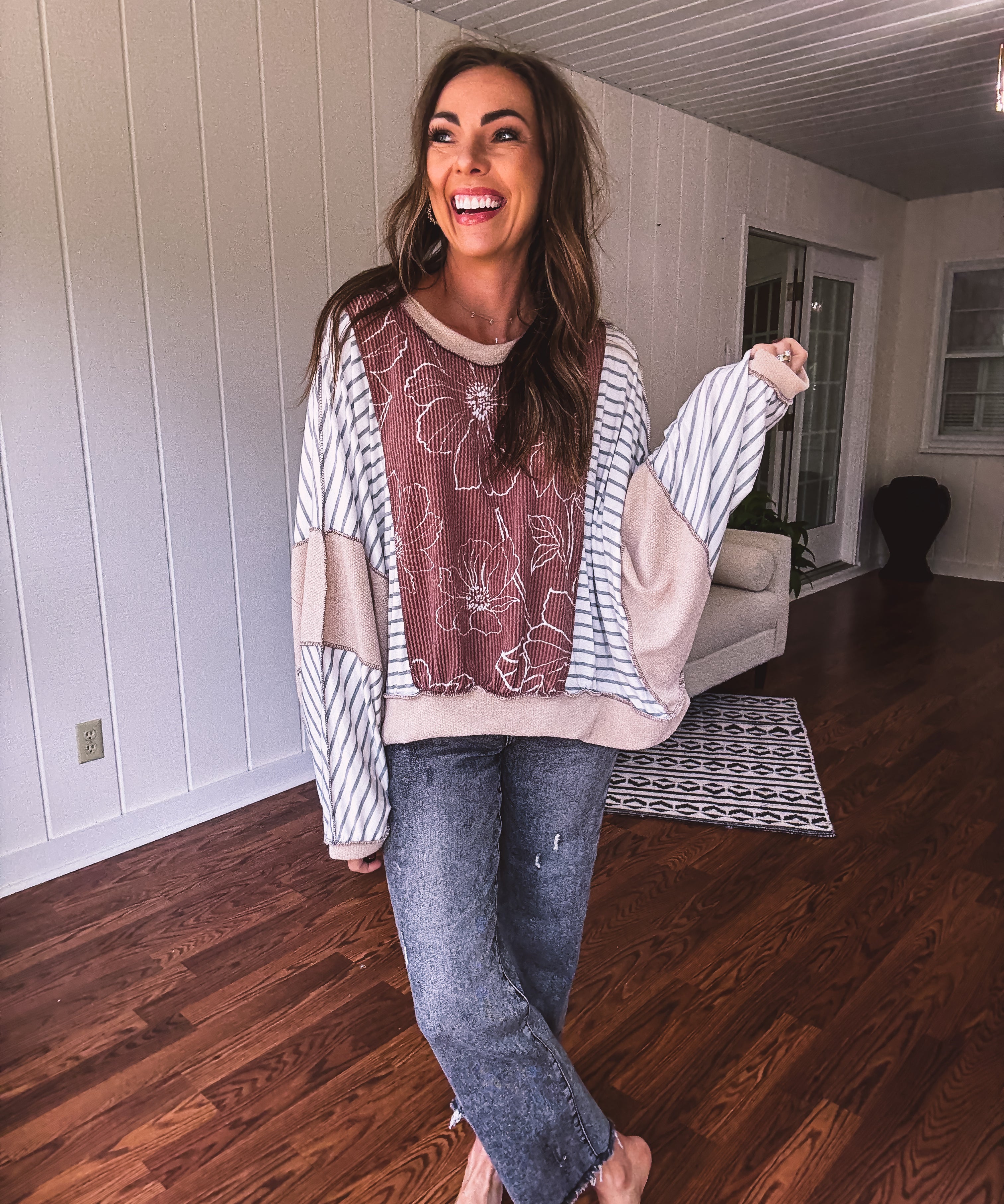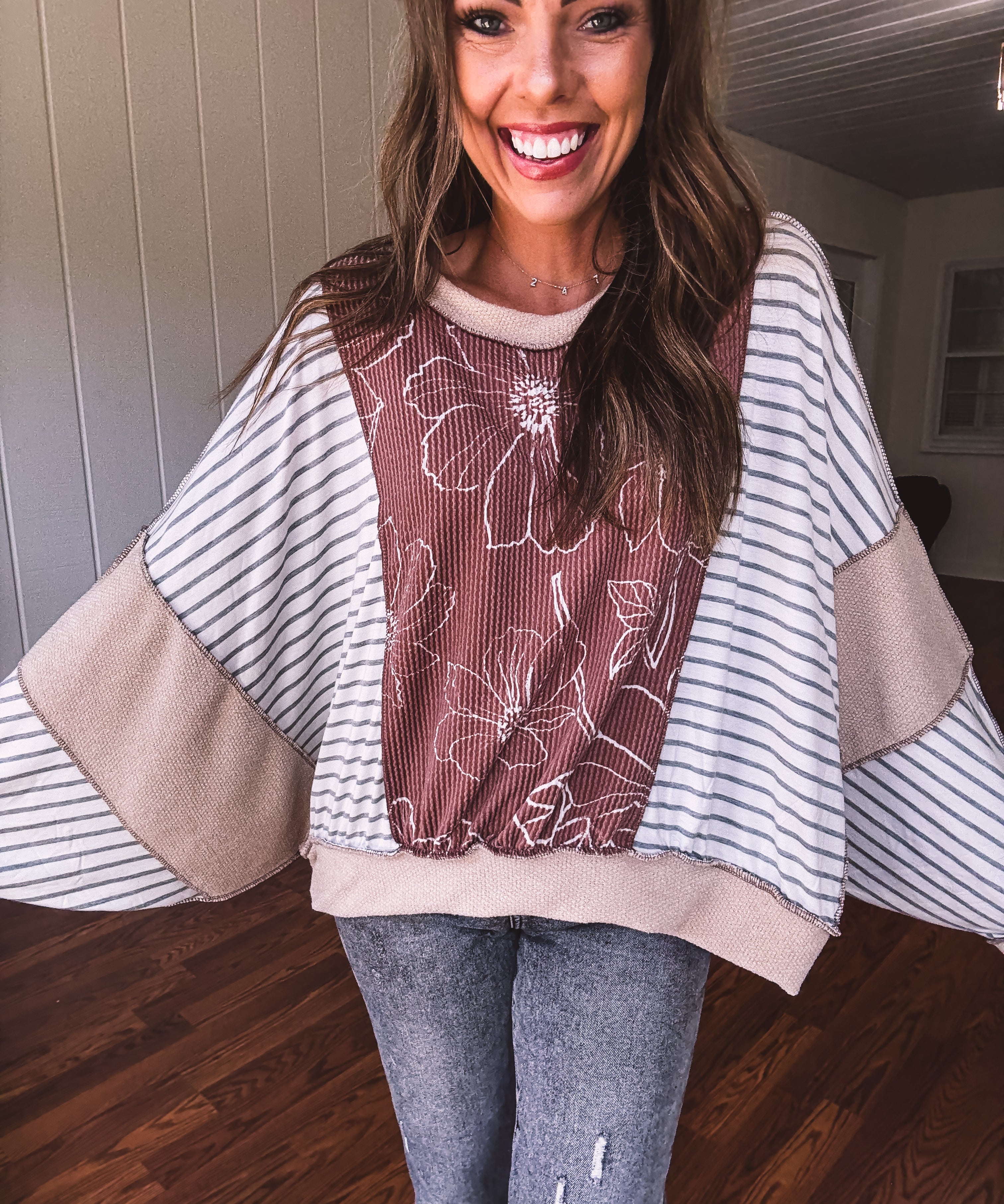 Oatmeal + Mocha Floral & Stripe Mix Oversize Dolman