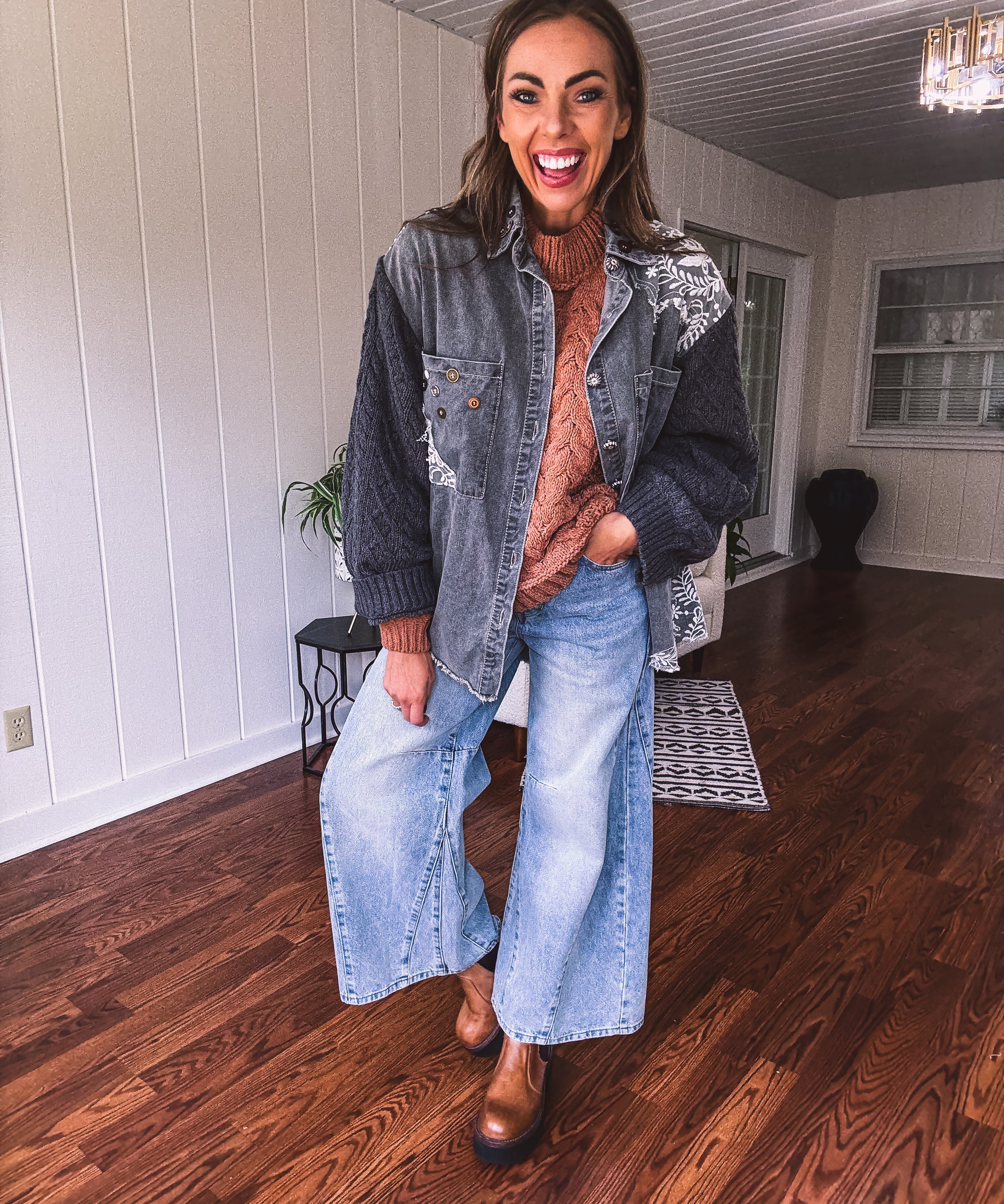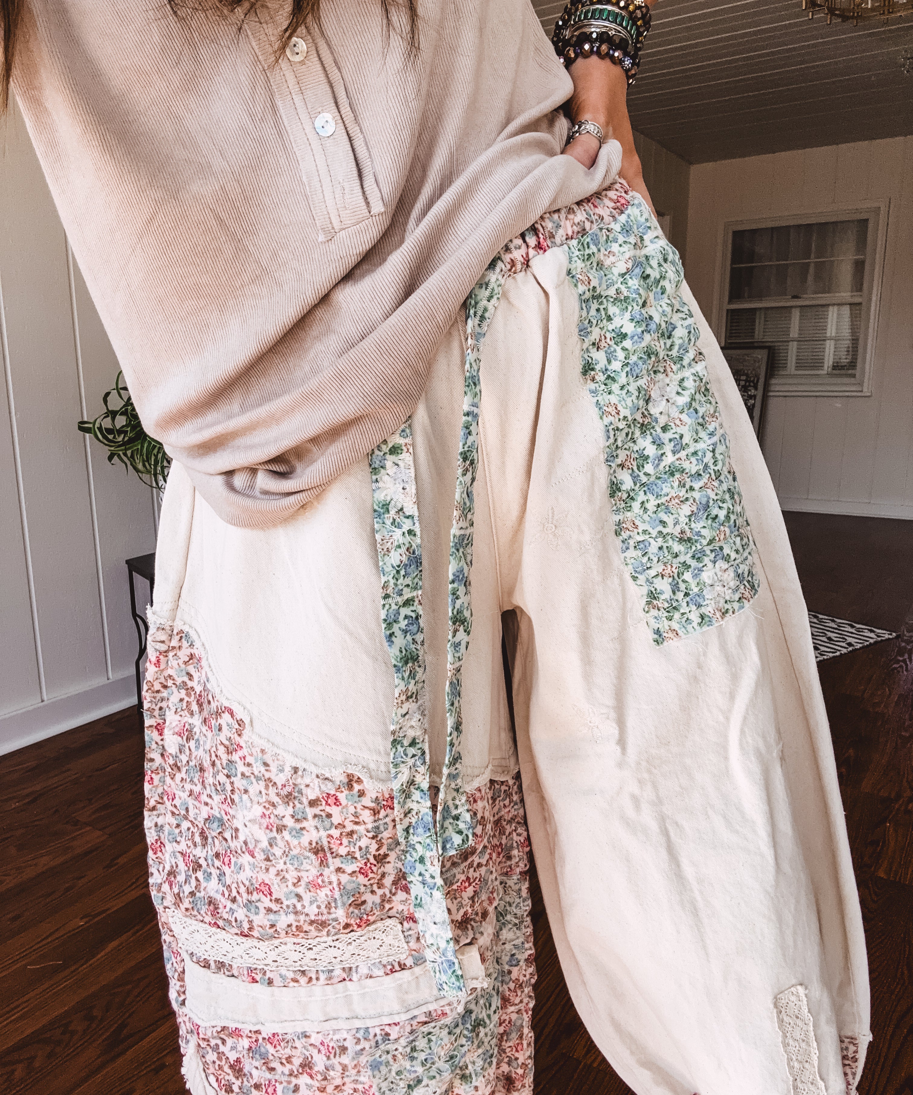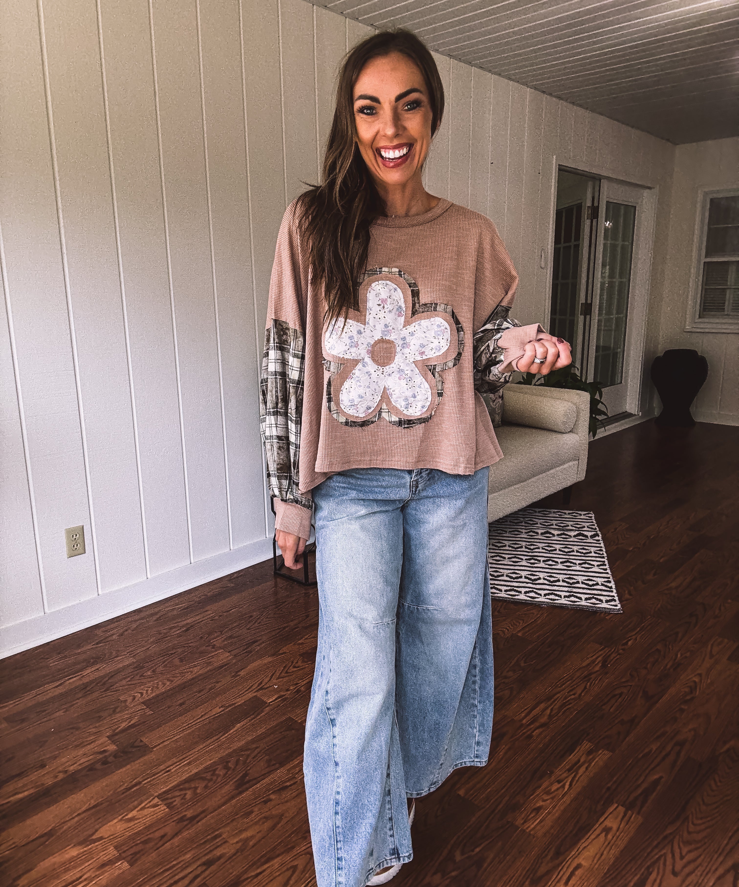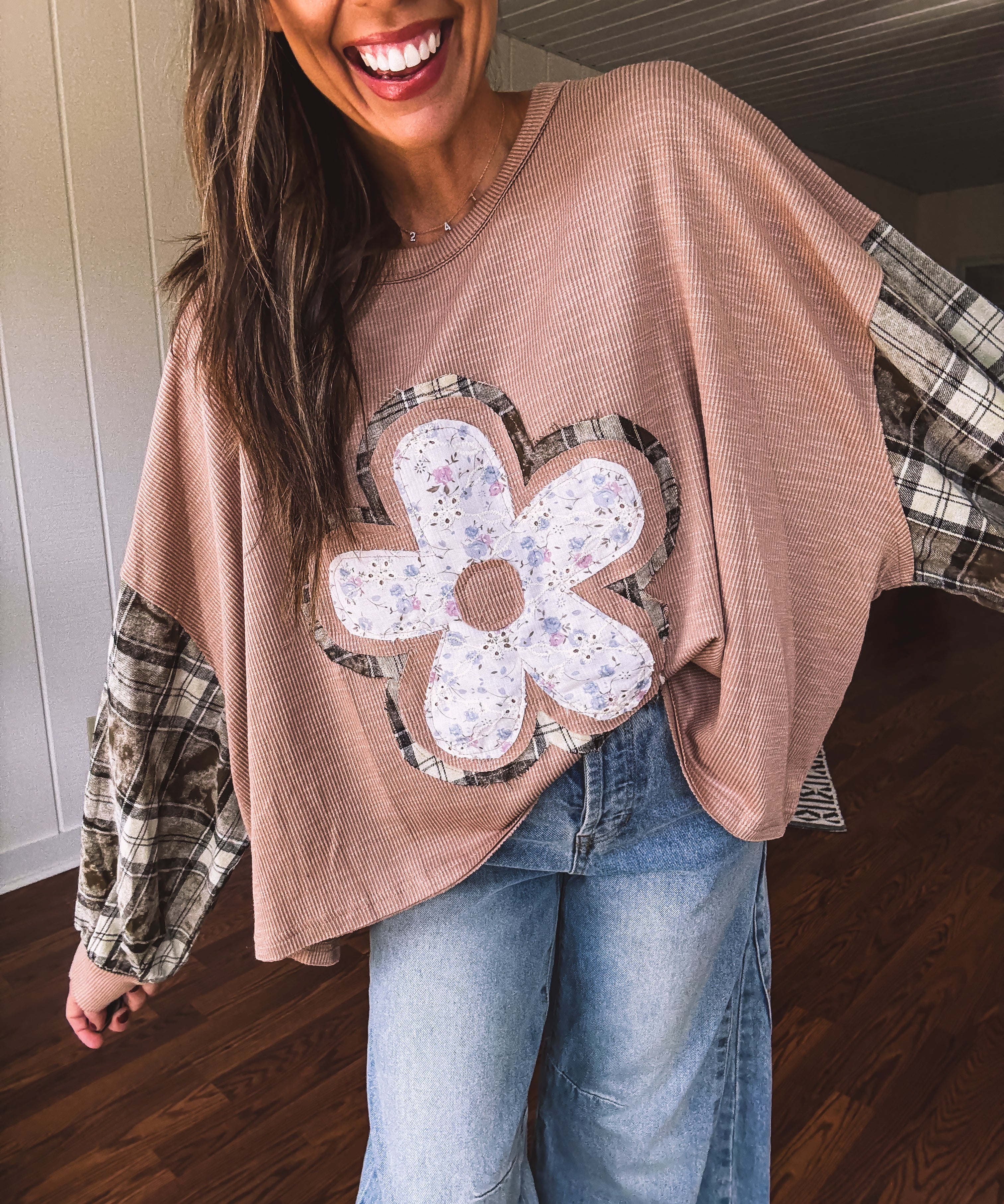Oatmeal + Mocha Floral & Stripe Mix Oversize Dolman