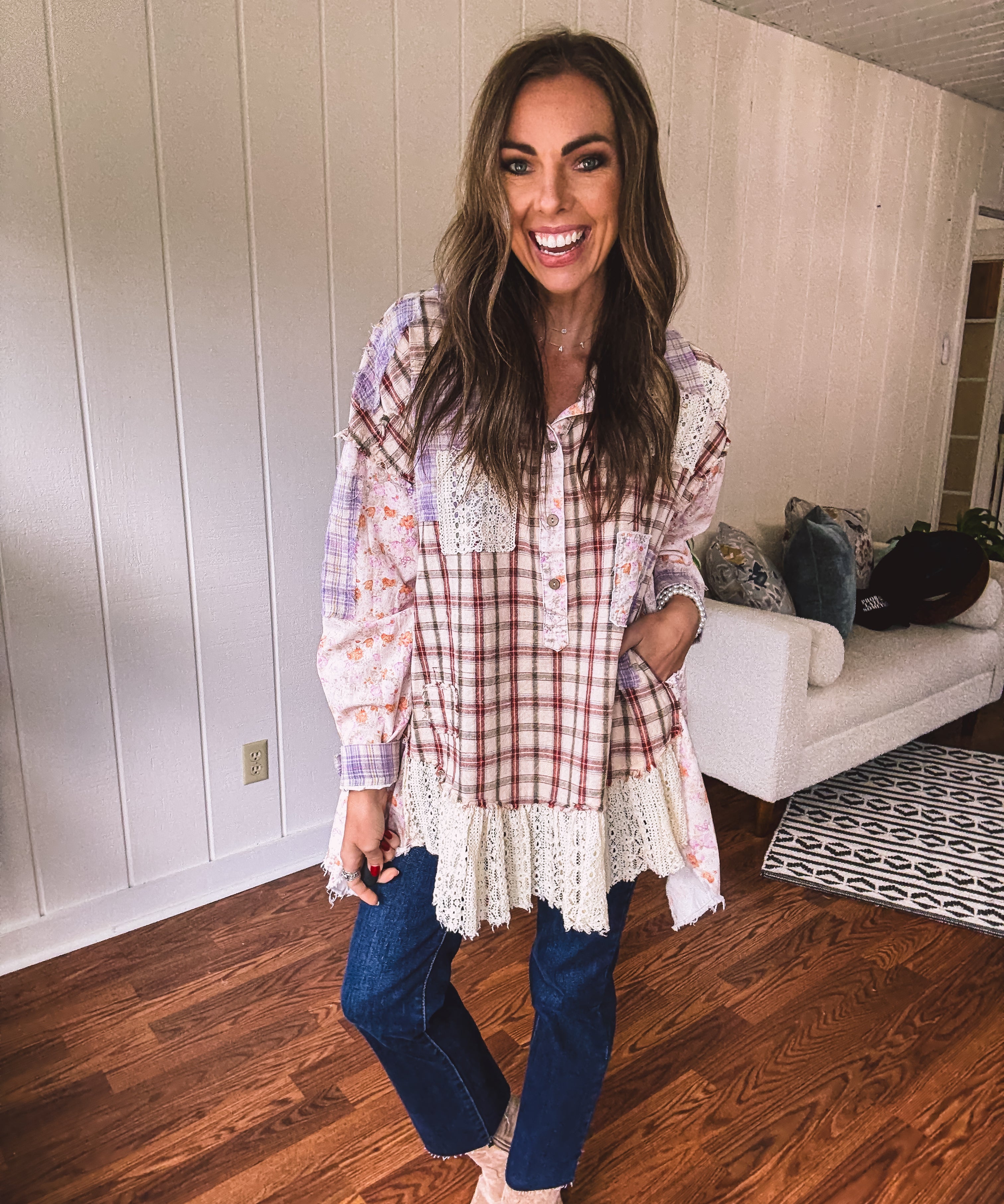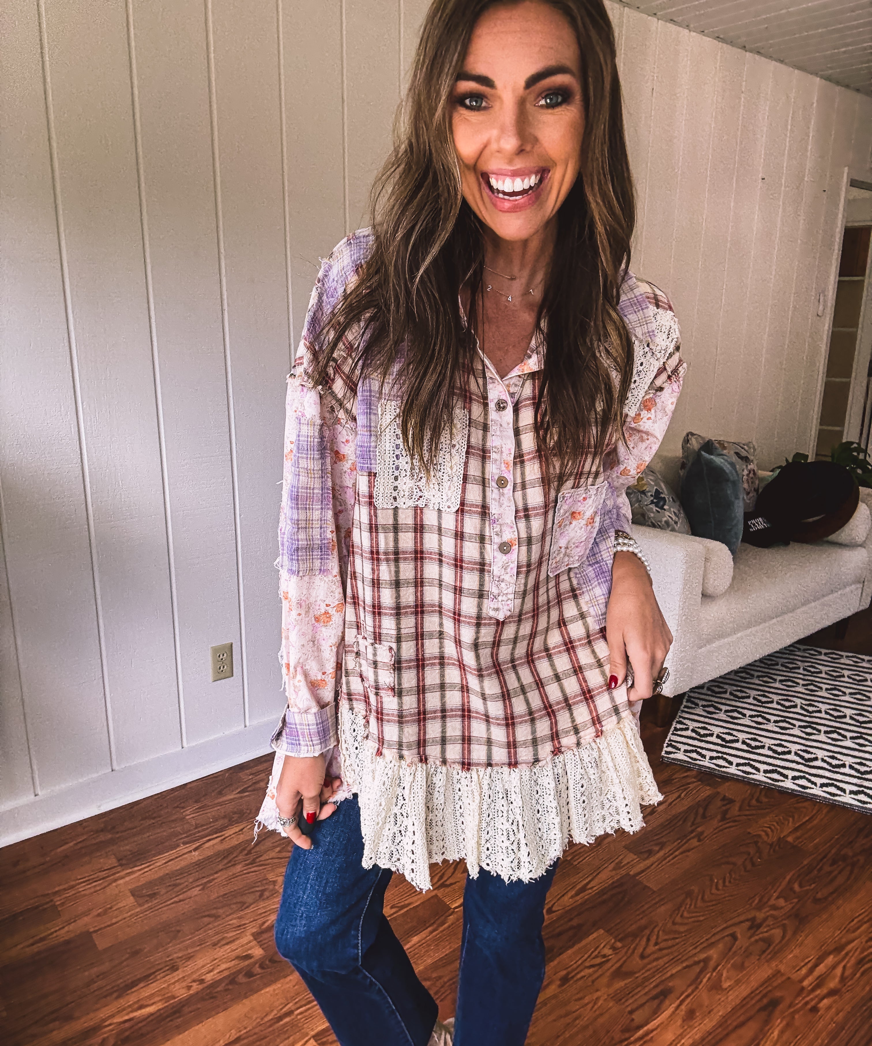 That's So Vintage Pink Plaid Patchwork Mix Button Up