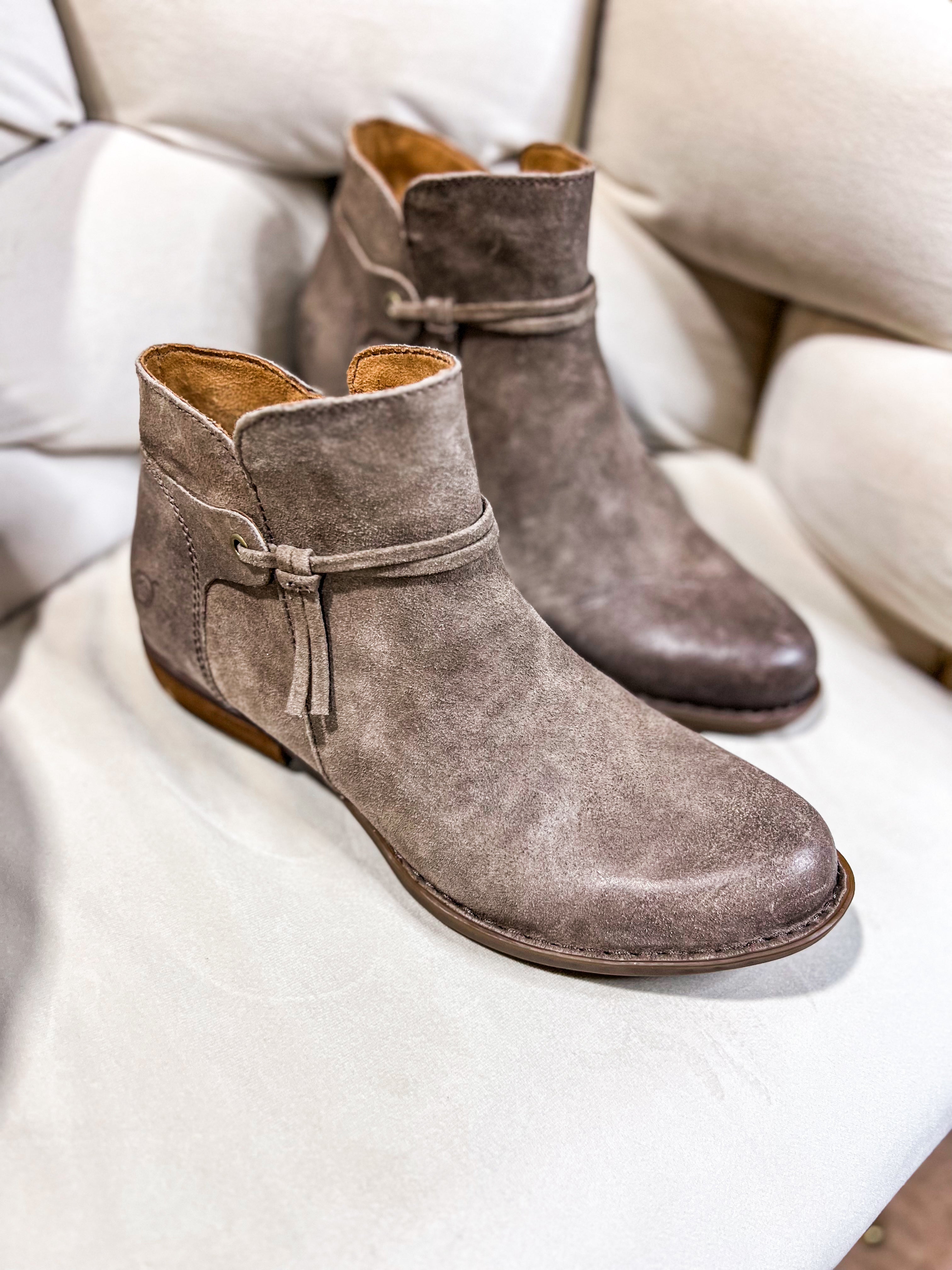 If you admire the artisanal charm of our Tarkiln but want a sleeker bootie for dressier occasions, meet Kimmie! This ankle boot blends natural textures with versatile style, perfect for any adventure. It features soft, hand-finished leather or distressed suede, a breathable suede lining, and a cushioned footbed with extra foam for all-day comfort. The lightweight rubber sole offers excellent grip, while the Leawood-wrapped heel and Opanka handcrafting add unique flair. Step out with Kimmie and bring playful sophistication to your look!