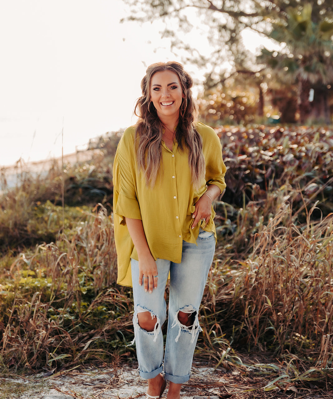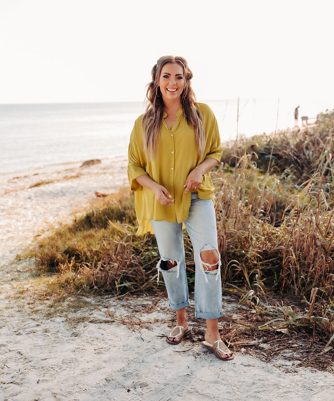 Stretch Boyfriend Colorblock with Rolled Cuff