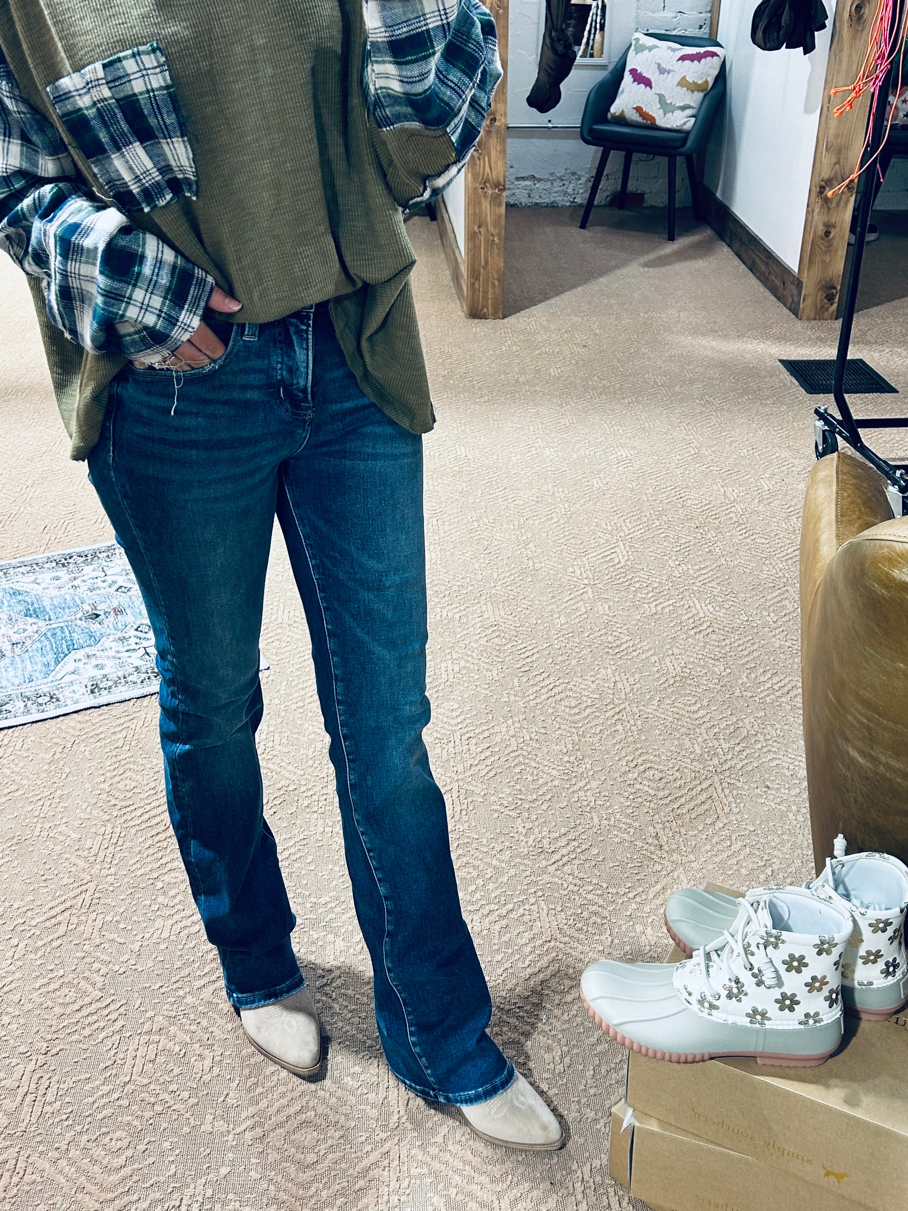 Dark Tummy Control Straight Denim | High Rise