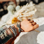 Navajo Pearls are a type of jewelry crafted by skilled Navajo silversmiths using sterling silver beads. These beads have a rich cultural and storytelling tradition, often passed down from one generation to another. Each Navajo Pearl is crafted by hand, imbuing it with a unique and one-of-a-kind character.