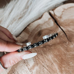 Add a touch of elegance with this dainty Sterling Silver band showcasing authentic Onyx stones in a unique cuff design. Perfectly adjustable, this cuff is sure to fit any wrist. Make a statement by wearing it on its own or pair it with other Sterling Silver bangles and cuffs to elevate your style!