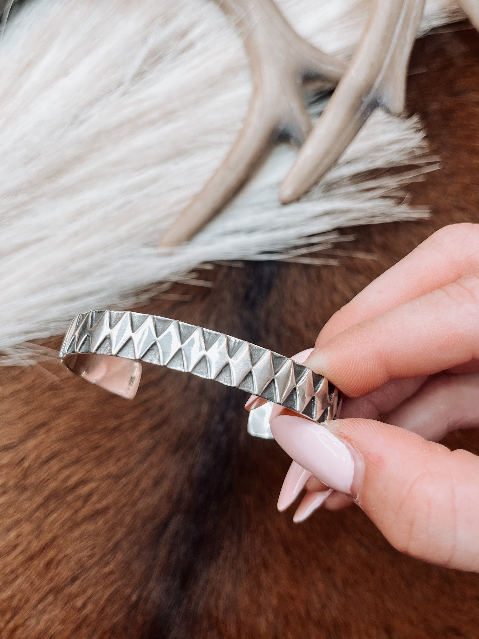 Diamonds are a Girl's Best Friend in this Sterling Silver Oxidized Diamond Cuff