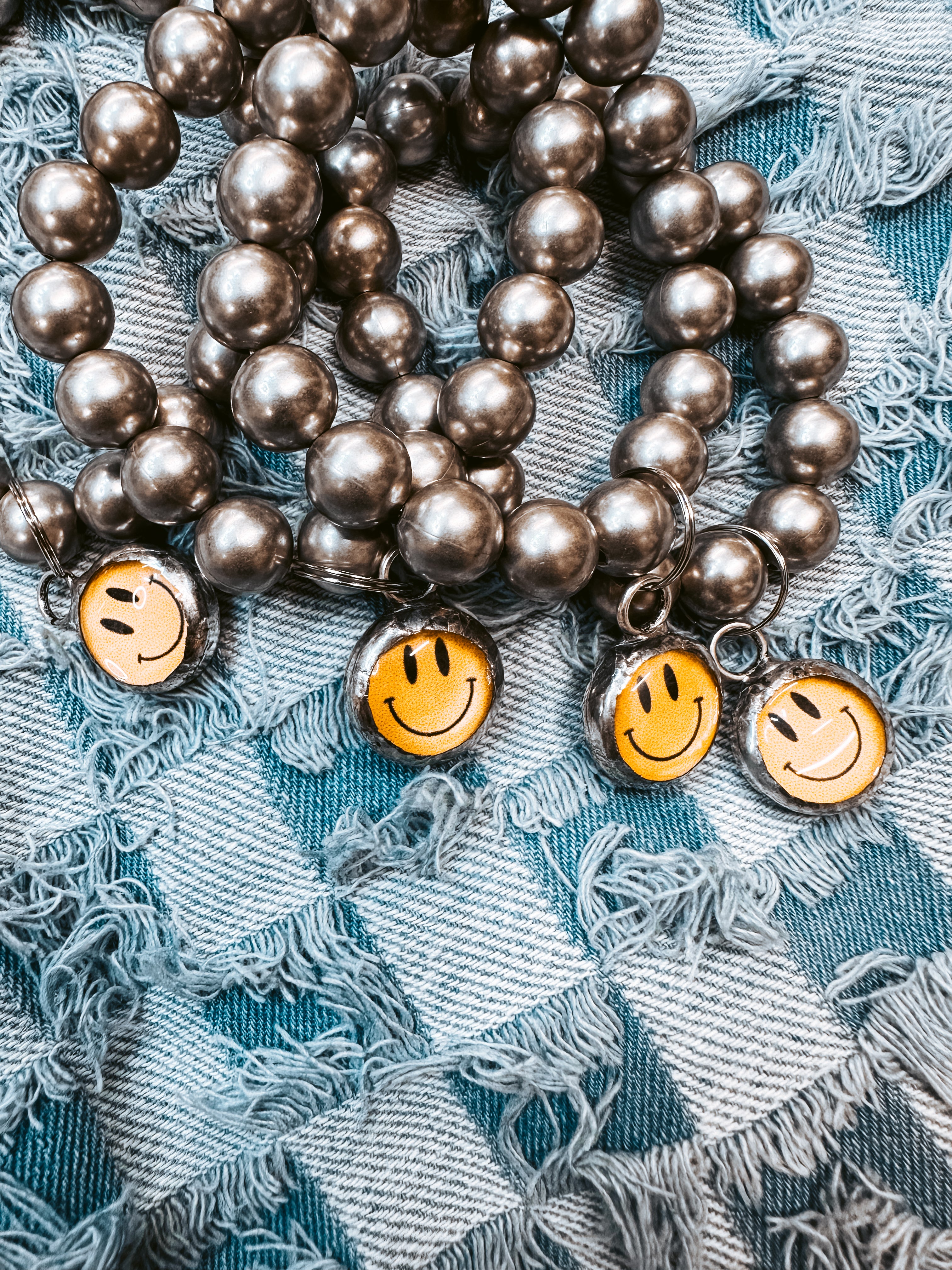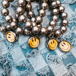 Add a burst of sunshine to your look with the Smile Like The Sun Stretch Bracelet. This charming accessory features large faux silver pearls strung together on a flexible stretch chain, making it easy to slip on and off. Scattered among the pearls are delightful mini happy face charms that sparkle with joy and whimsy, guaranteed to lift your mood and brighten any outfit. Perfect for mixing fun with style, this playful bracelet adds a cheerful twist to your everyday wardrobe while keeping comfort and ease in mind. Let your smile shine as brightly as this unique piece!