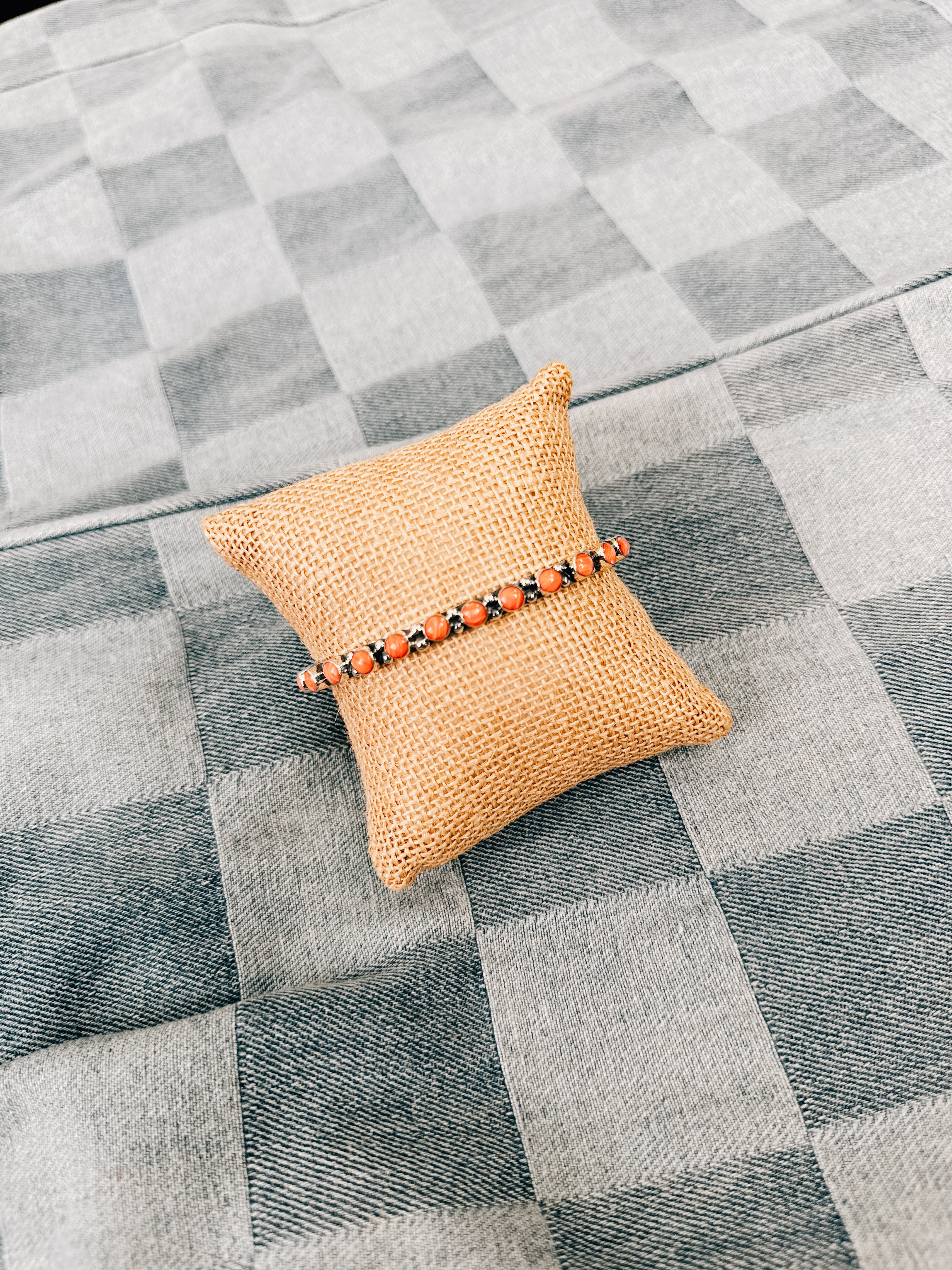 Add a touch of elegance with this dainty Sterling Silver band showcasing authentic Coral stones in a unique cuff design. Perfectly adjustable, this cuff is sure to fit any wrist. Make a statement by wearing it on its own or pair it with other Sterling Silver bangles and cuffs to elevate your style!
