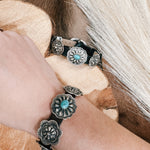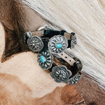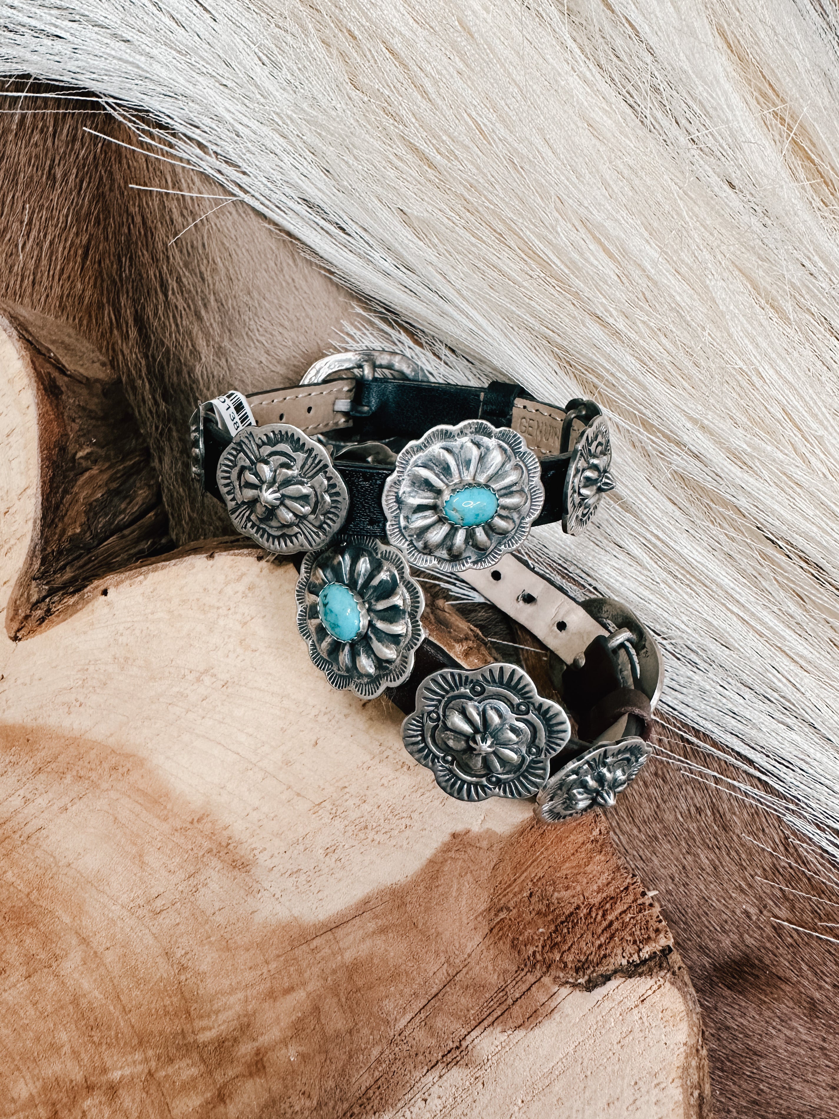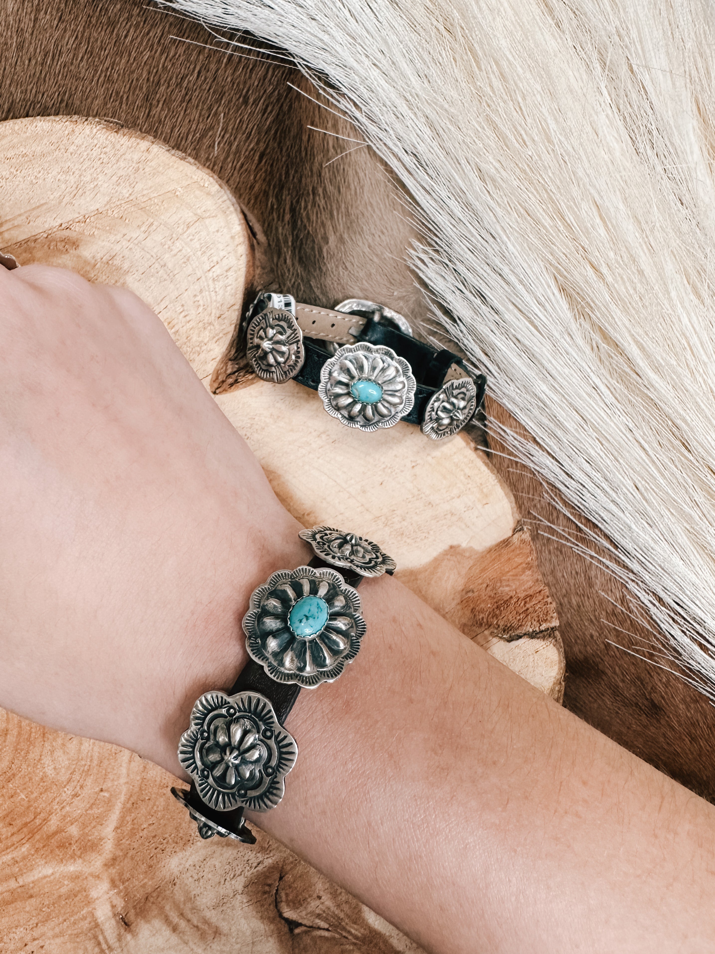 Such a Classic Western Vibe in This Sterling Silver + Genuine Turquoise Leather Wrist Concho Belt