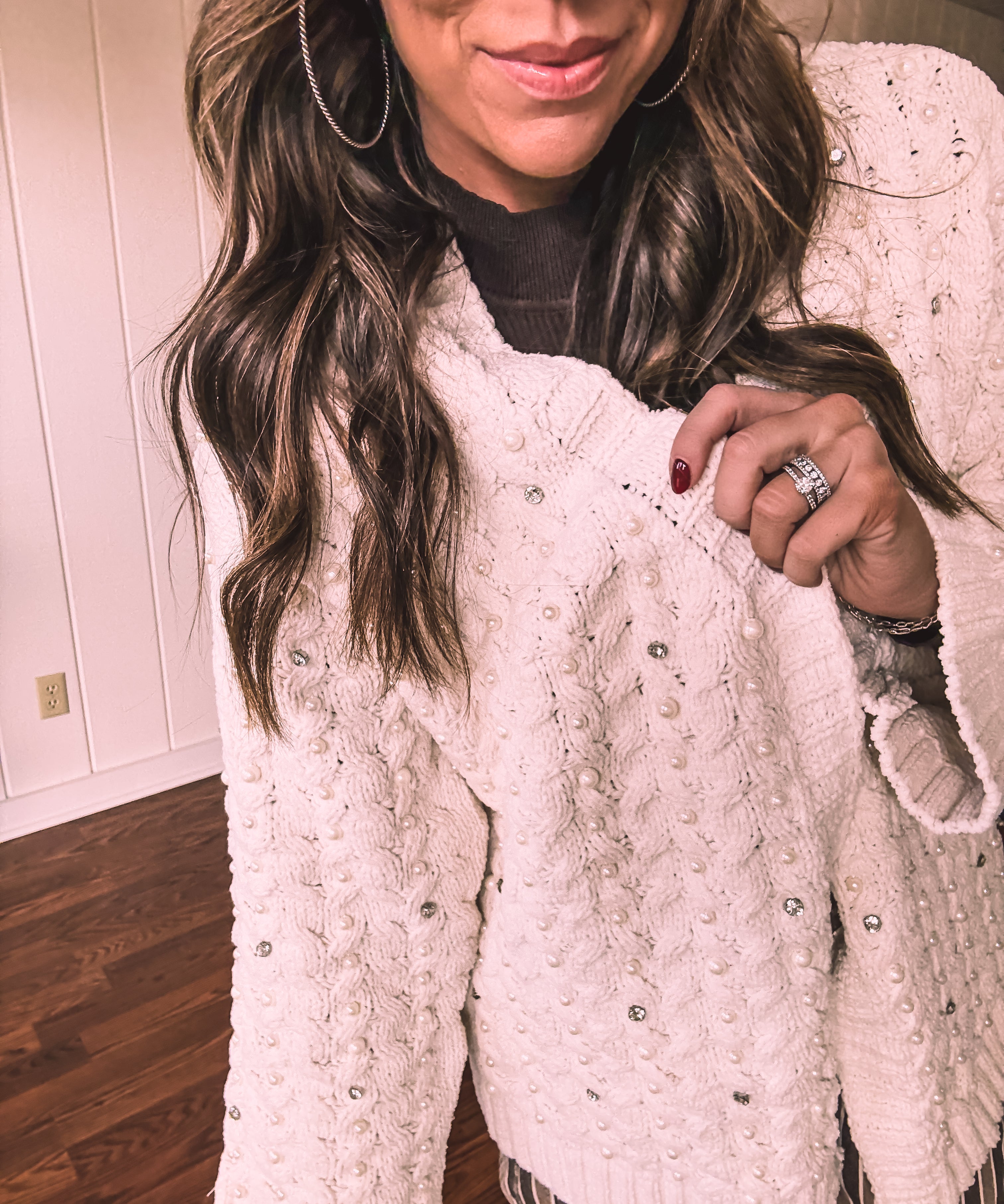 Sand Beige Eyelet Crochet Patch Mix Open Cardigan