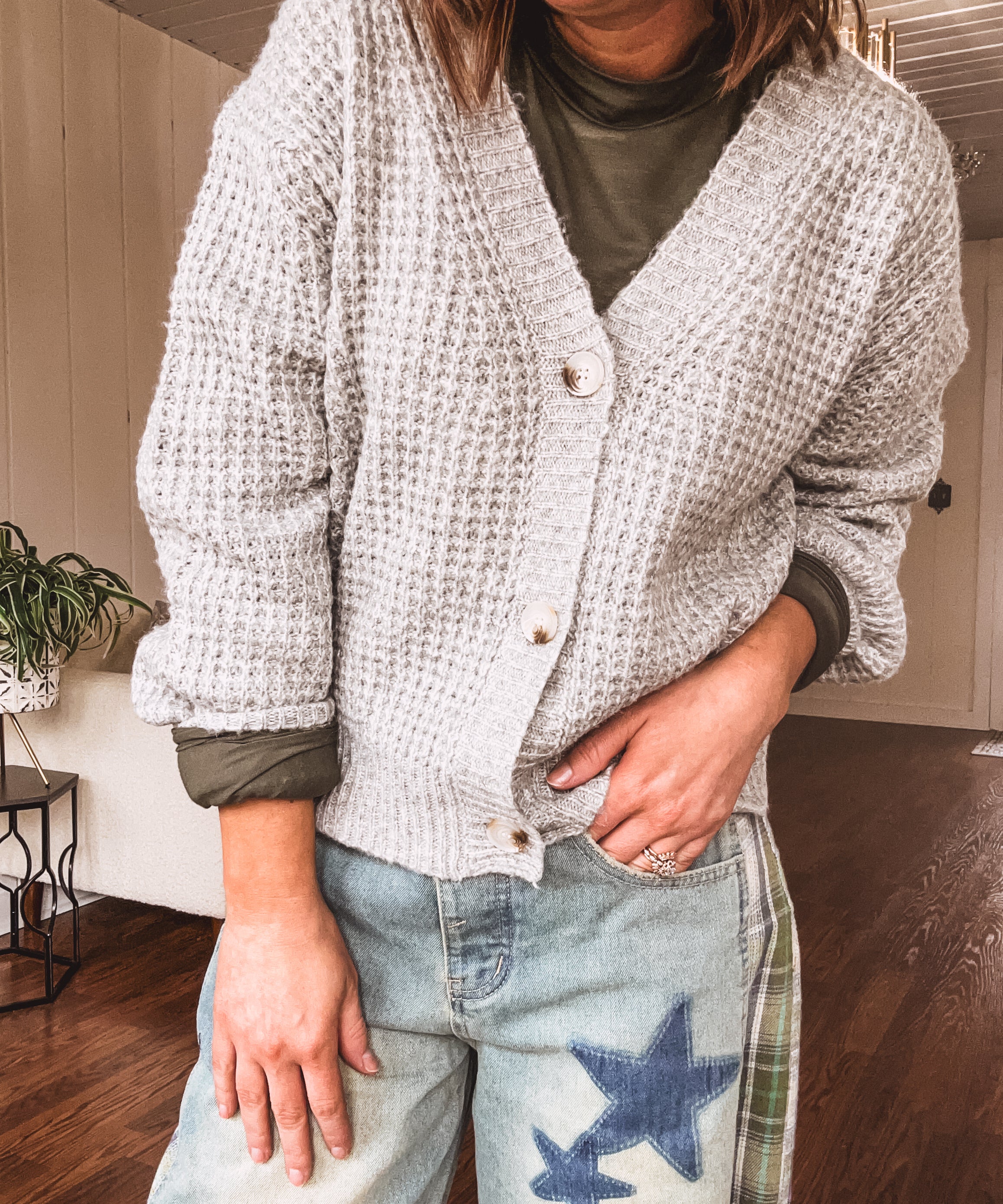 Taupe Rust + Grey Raglan Stripe Sweater Cardigan