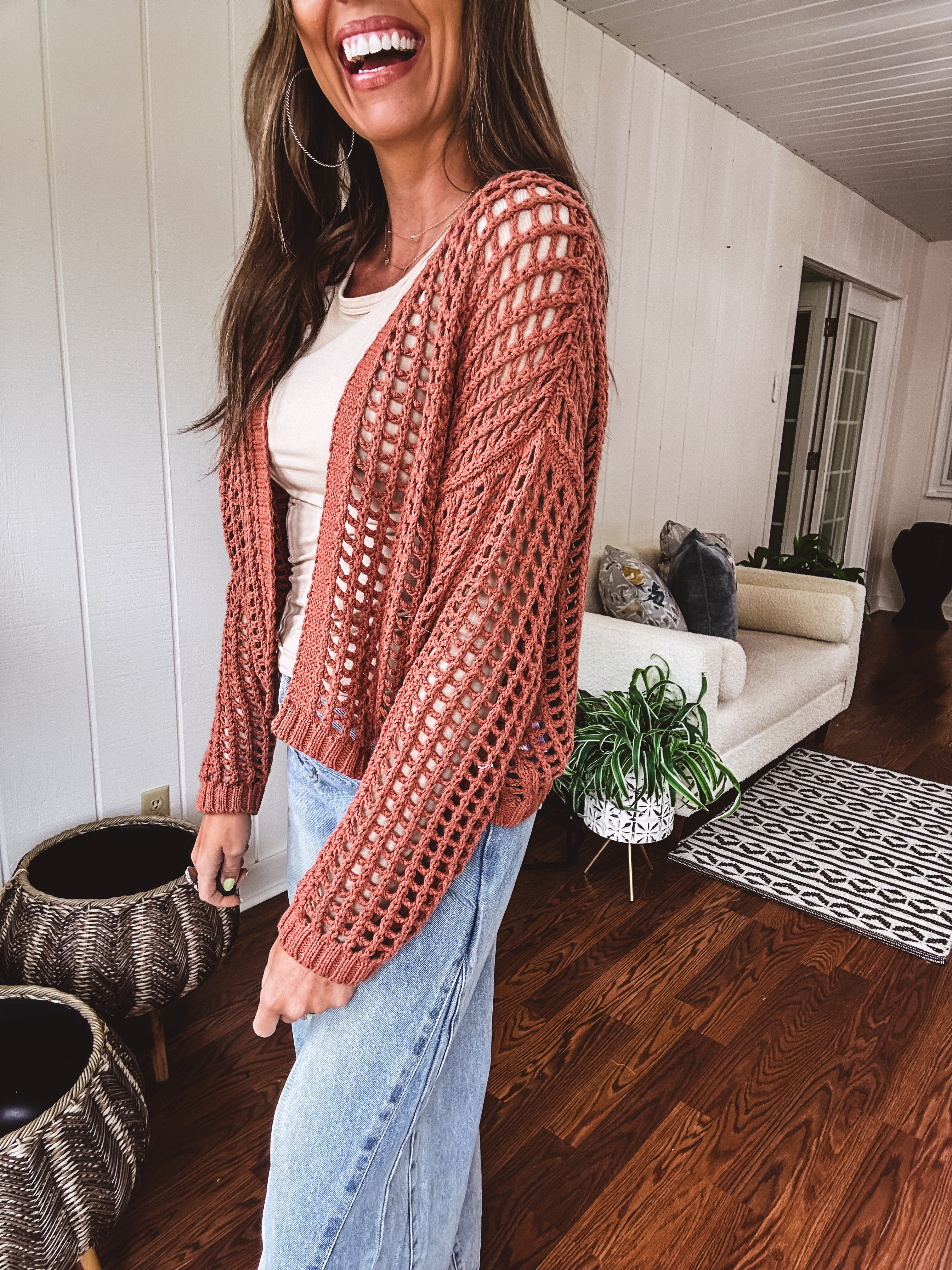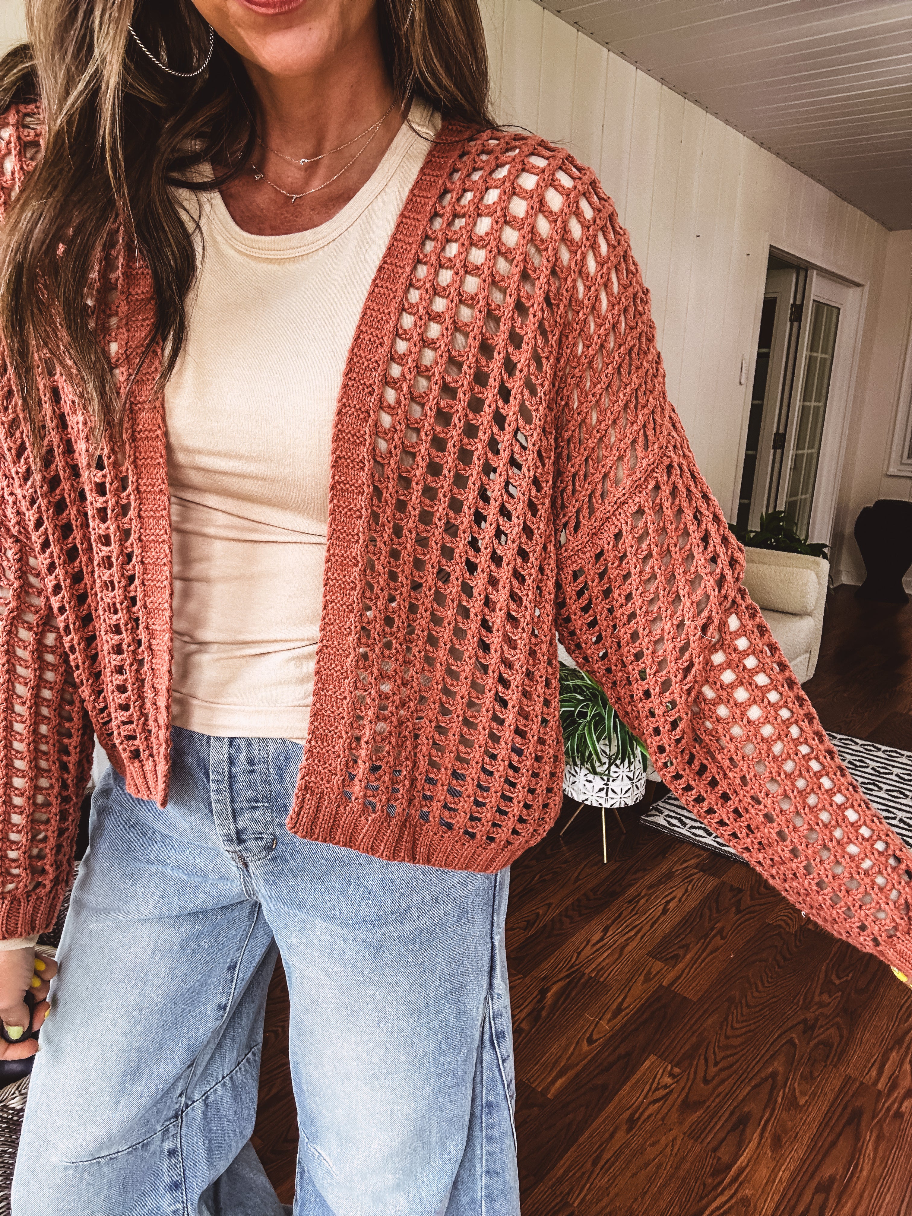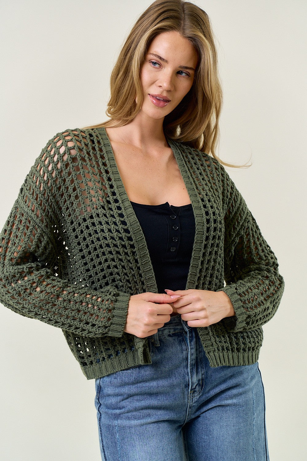 This ultra-soft windowpane crochet cardigan with a cropped hem and roomy silhouette adds a stylish, must-have edge to any outfit. A go-to layering favorite for every fashion lover—flattering on all body types—you’ll definitely want one in every color!