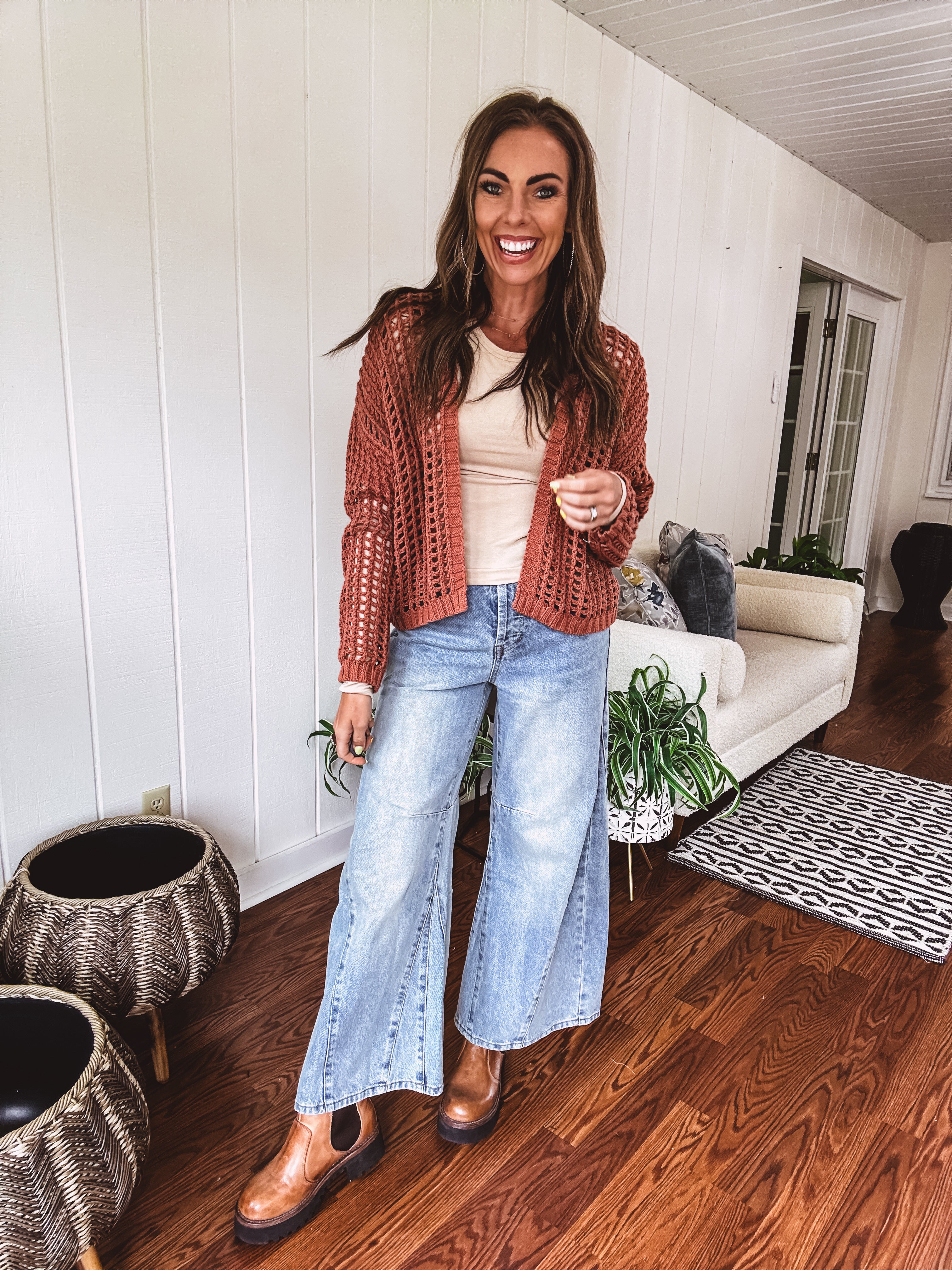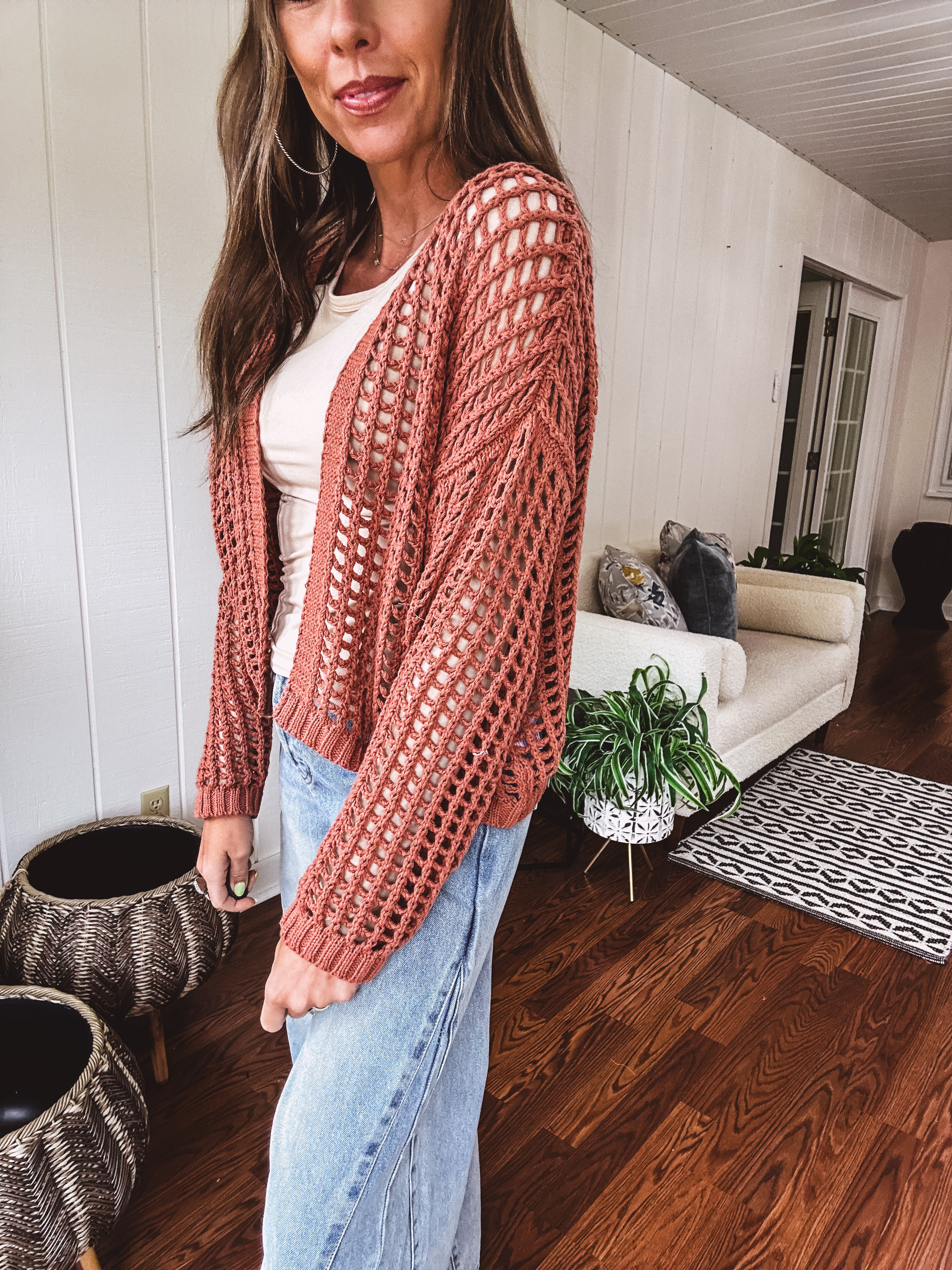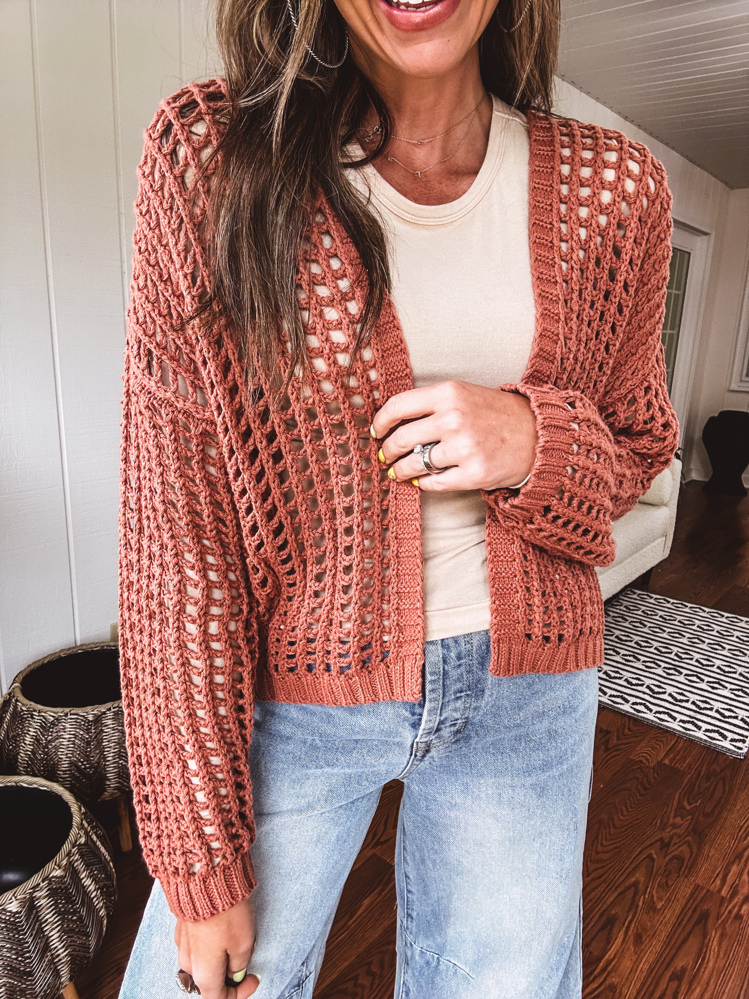 This ultra-soft windowpane crochet cardigan with a cropped hem and roomy silhouette adds a stylish, must-have edge to any outfit. A go-to layering favorite for every fashion lover—flattering on all body types—you’ll definitely want one in every color!