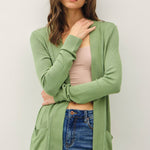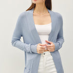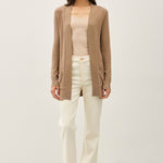 Open Front Cardigan with Rib Trim & Pockets