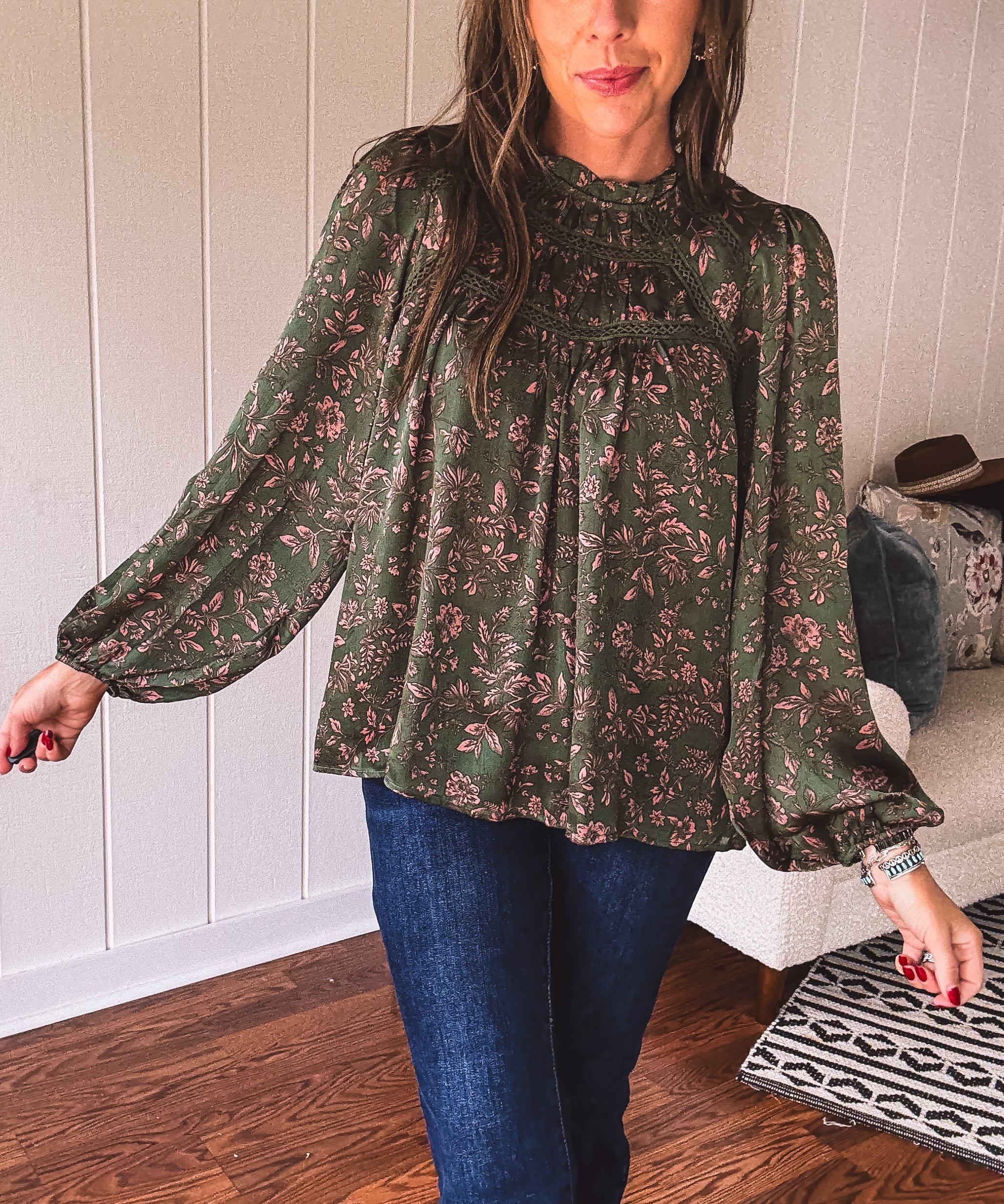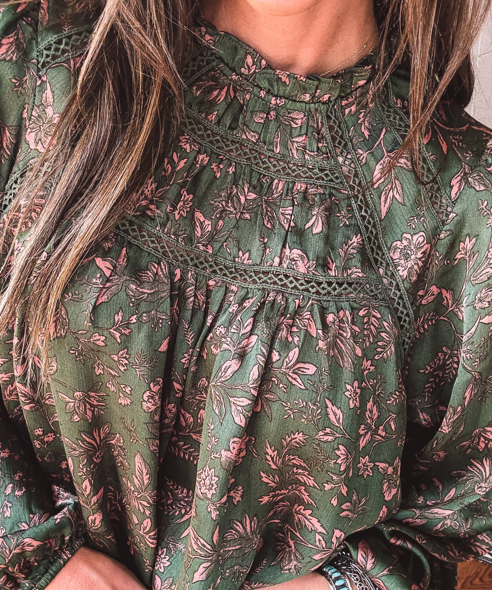 Olive Woven Print Tiered Maxi Dress Flutter Sleeve