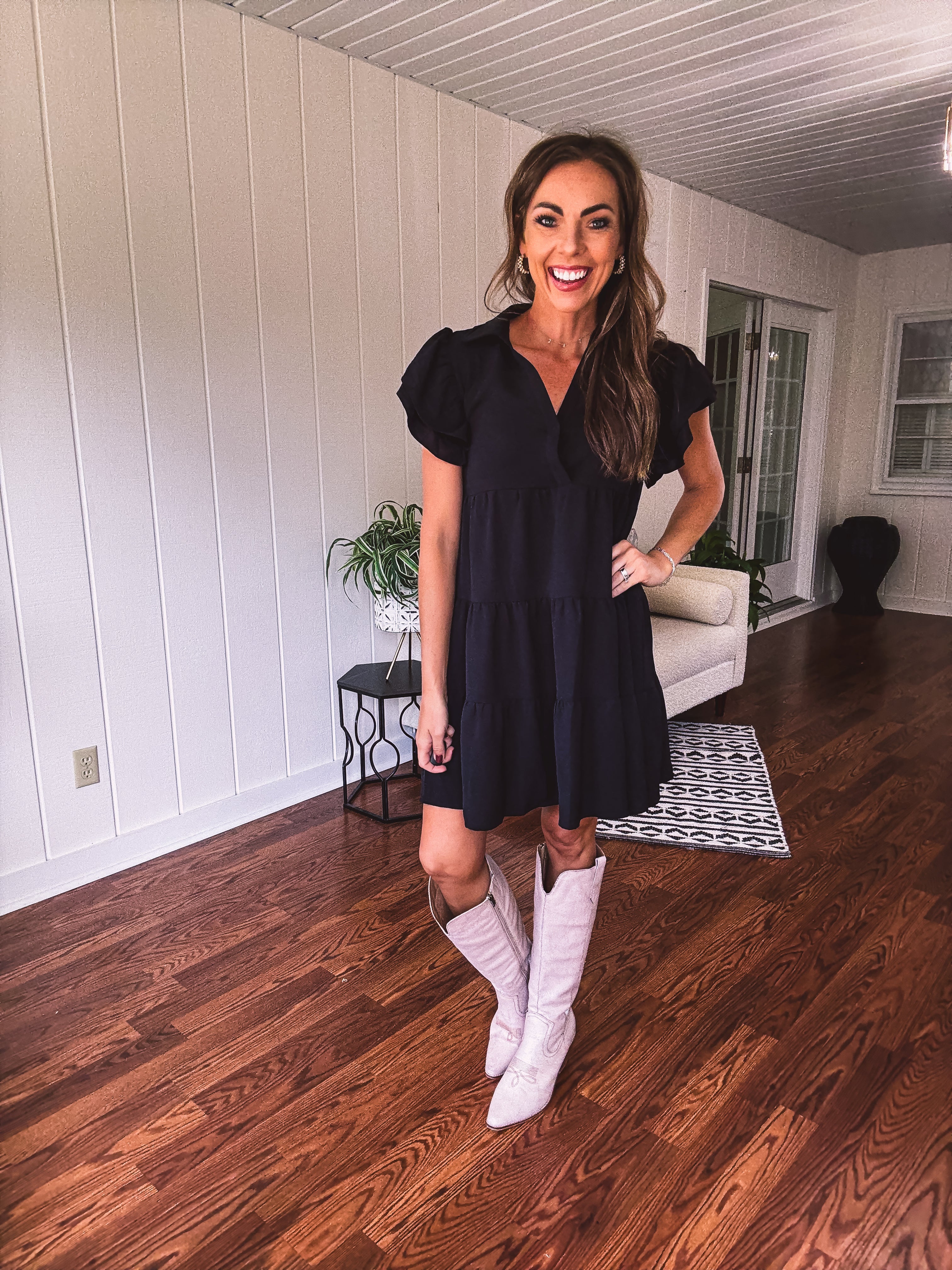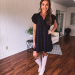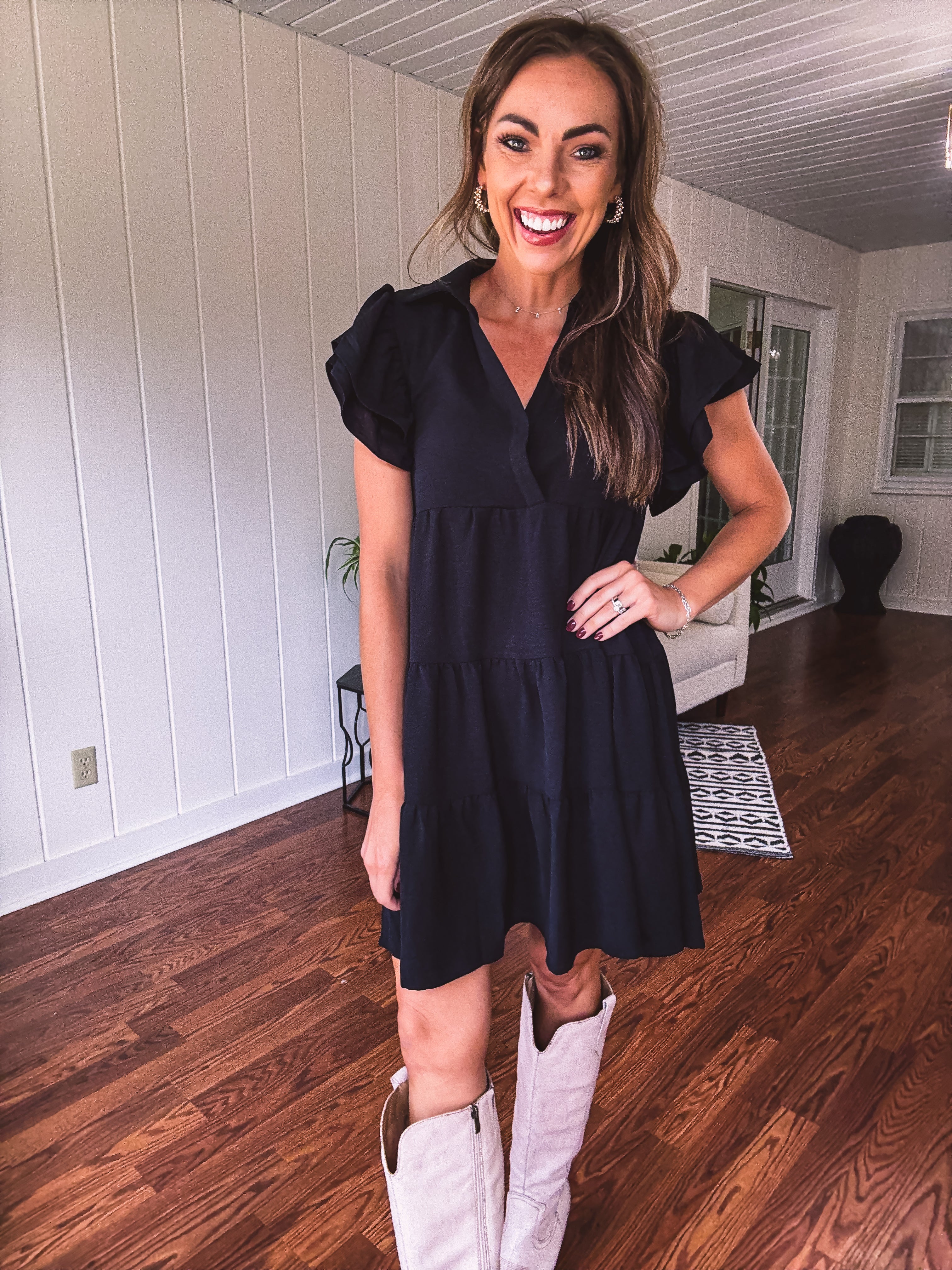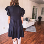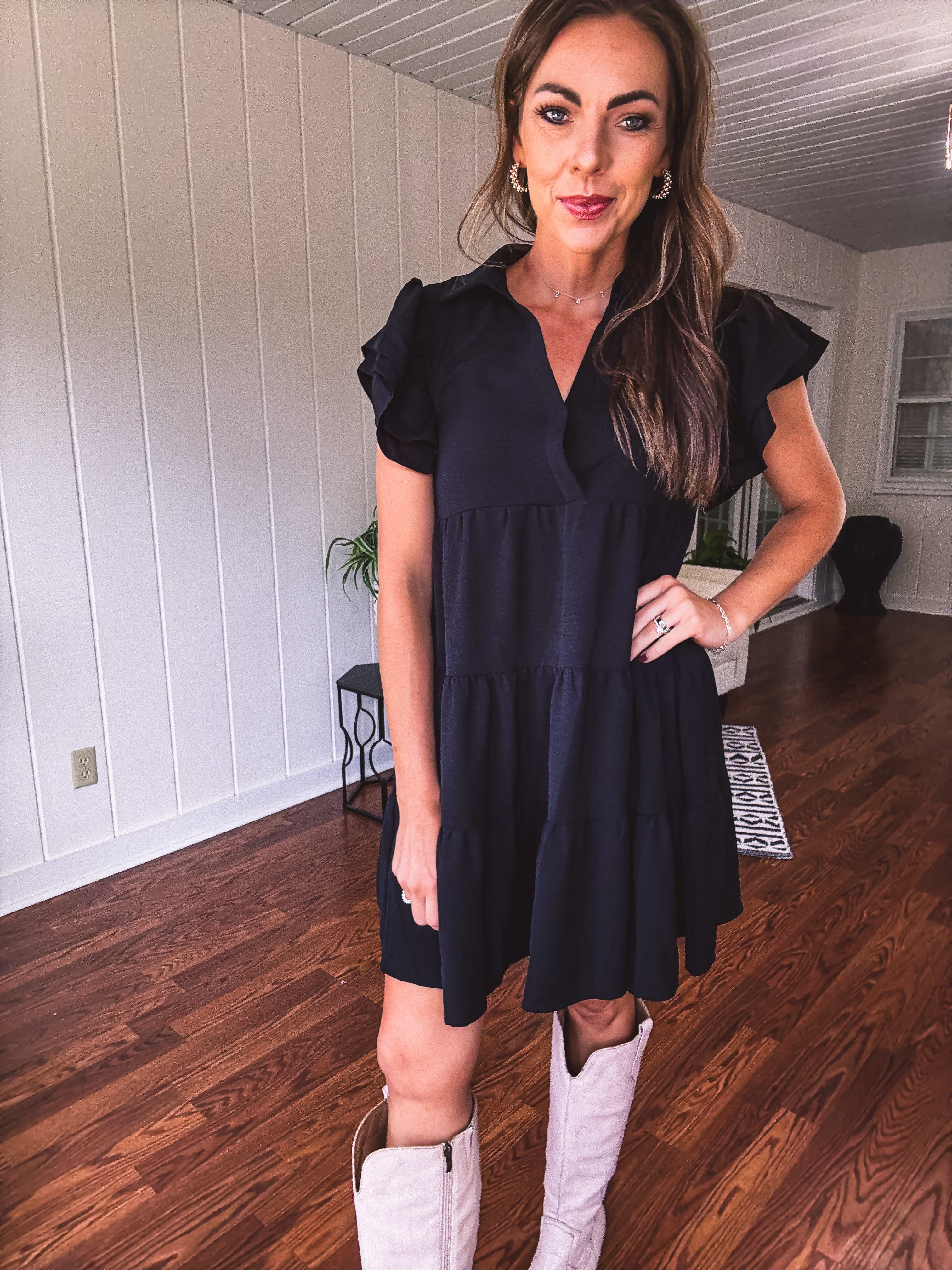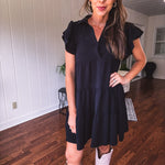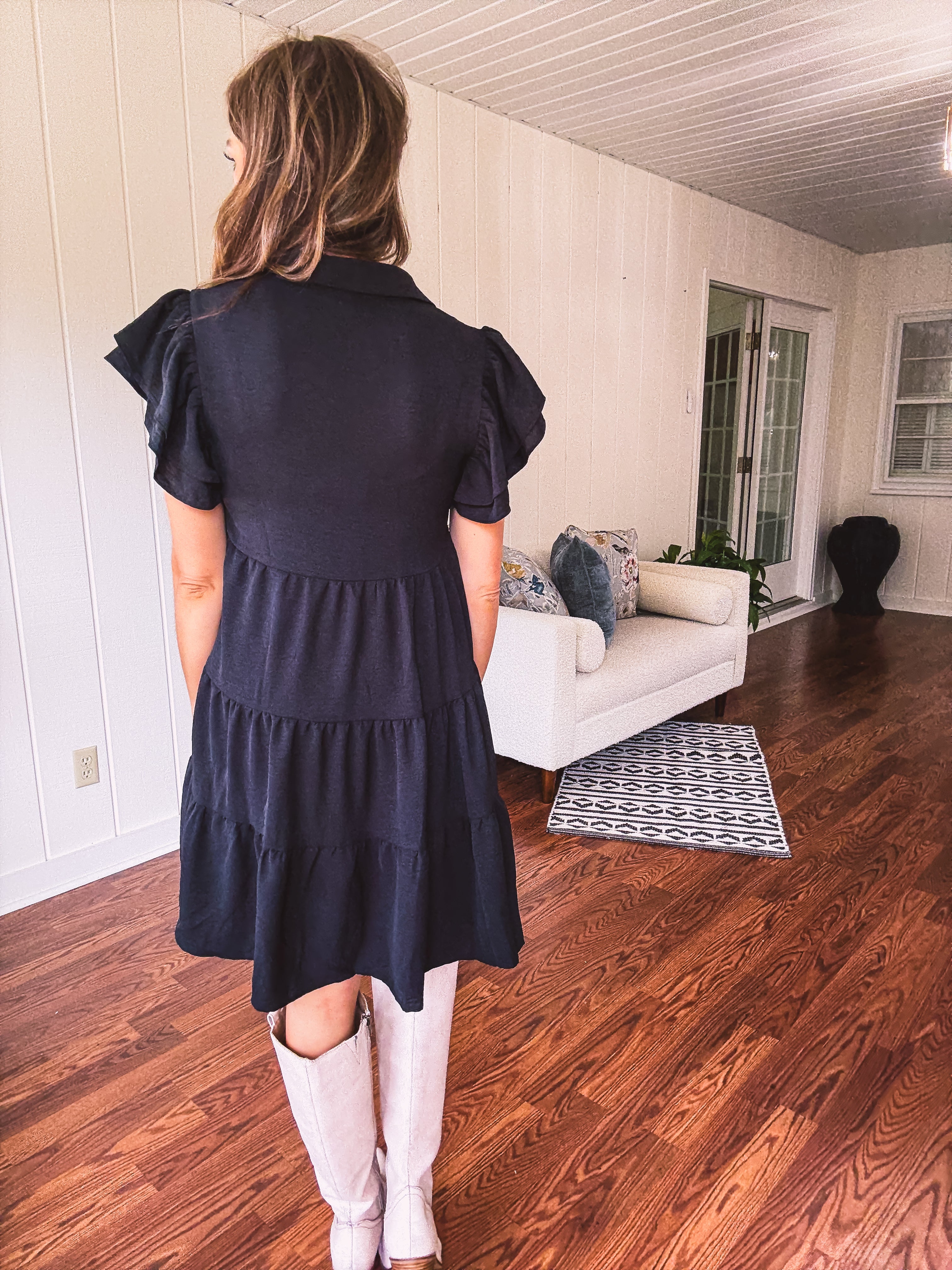 This breezy black dress is a must-have, featuring a chic collar, V-neck with a button to keep things sweet, fluttery sleeves, and a tiered hem for maximum comfort and flair. Unlined and effortlessly stylish, it suits every shape and is perfect for date nights, the office, family portraits, or wherever your day takes you. The options are endless with this versatile beauty!