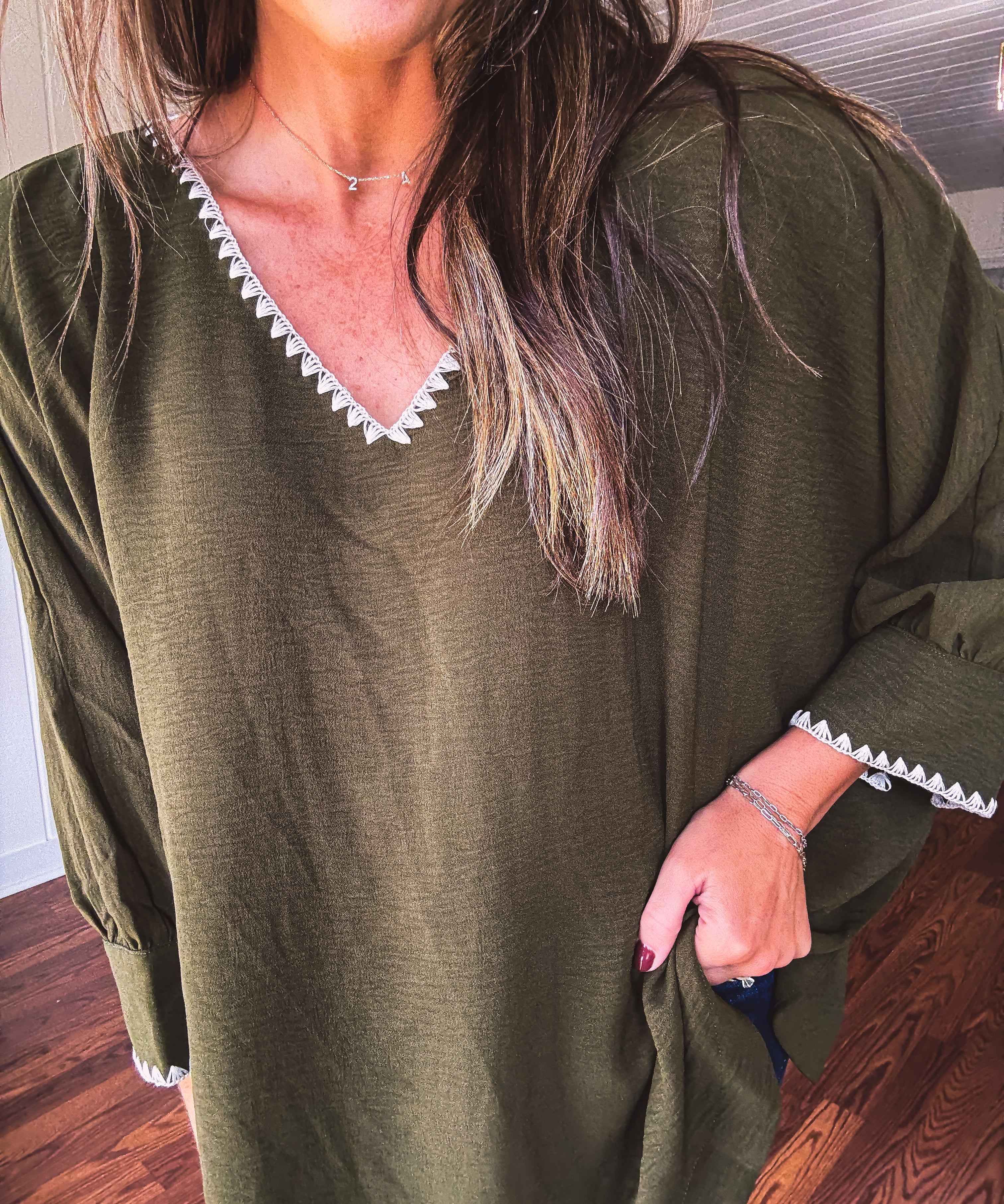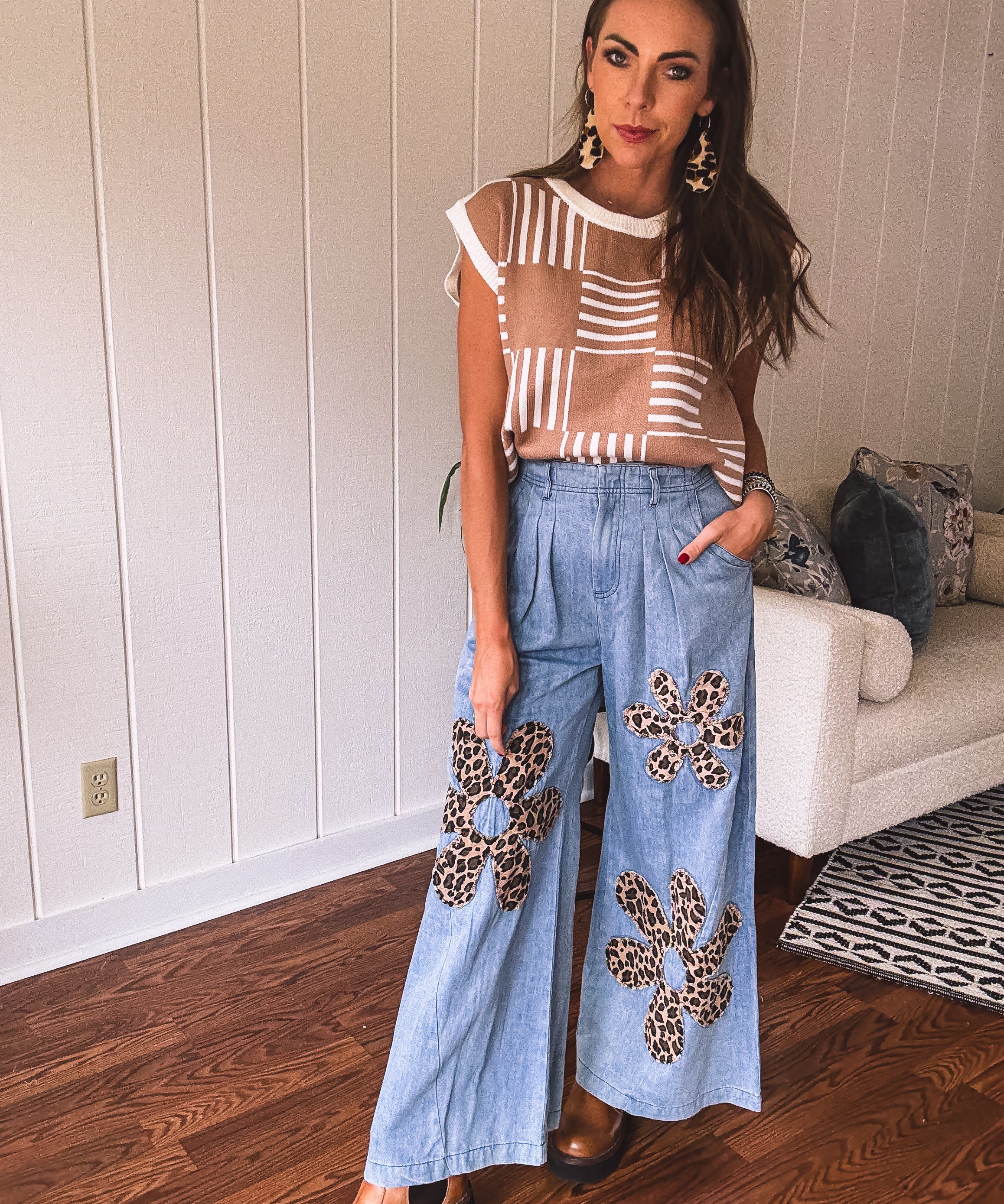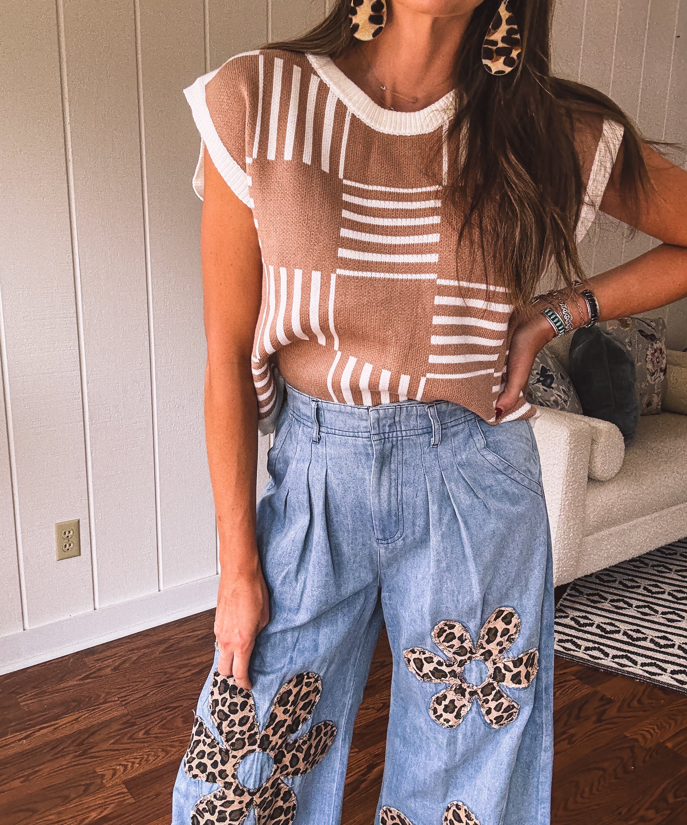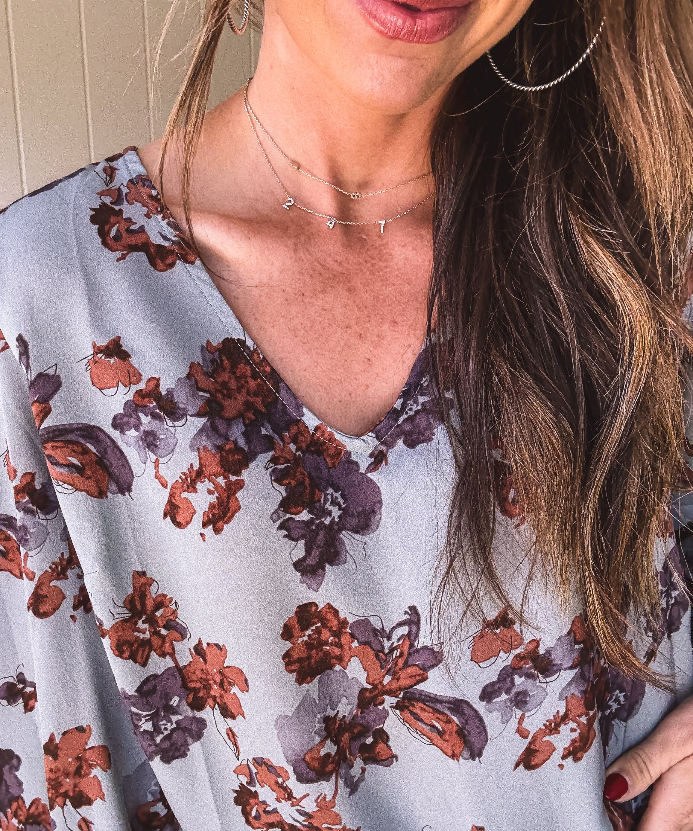 Dusty Floral Stripe Trim Flutter Hem Dress