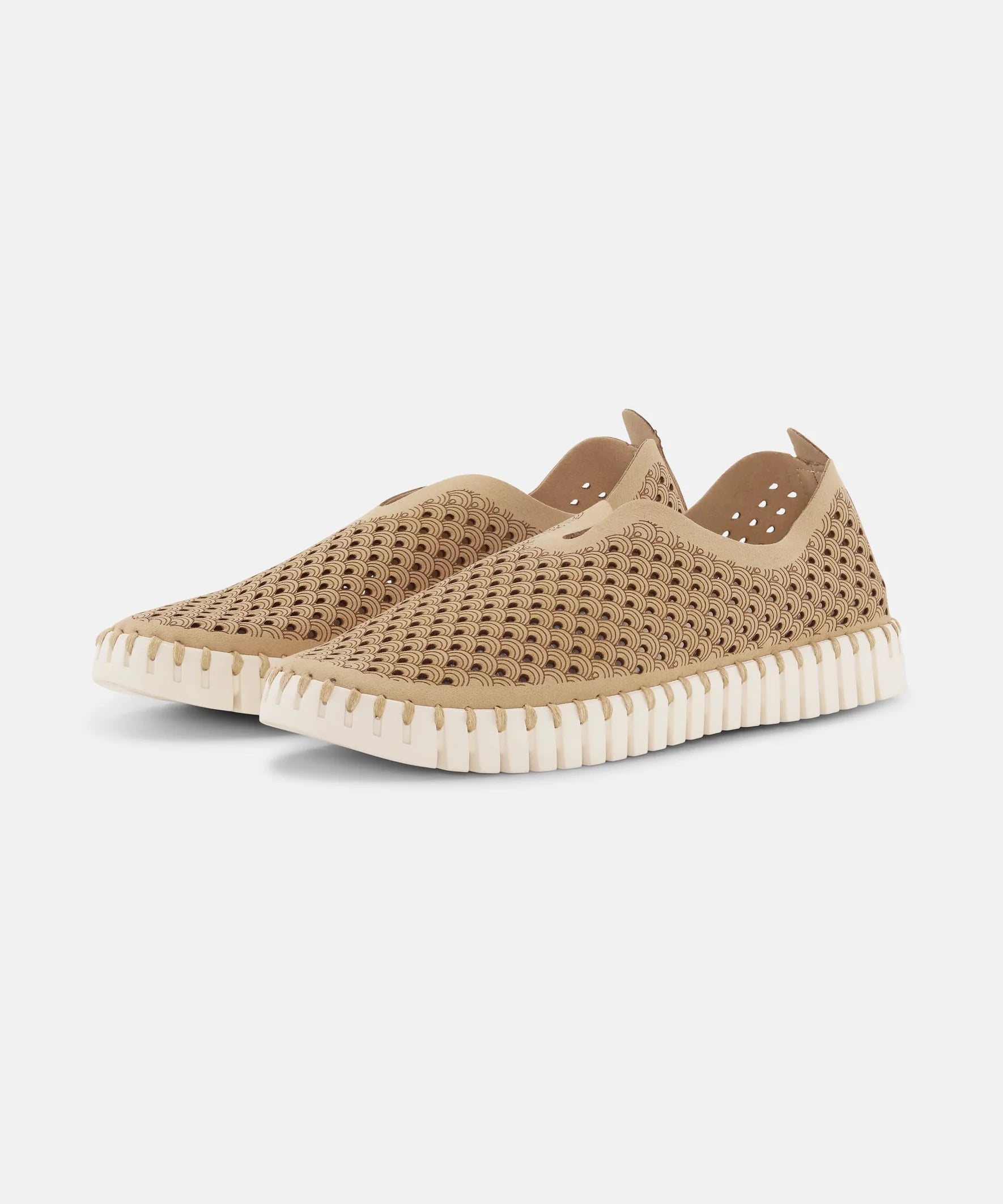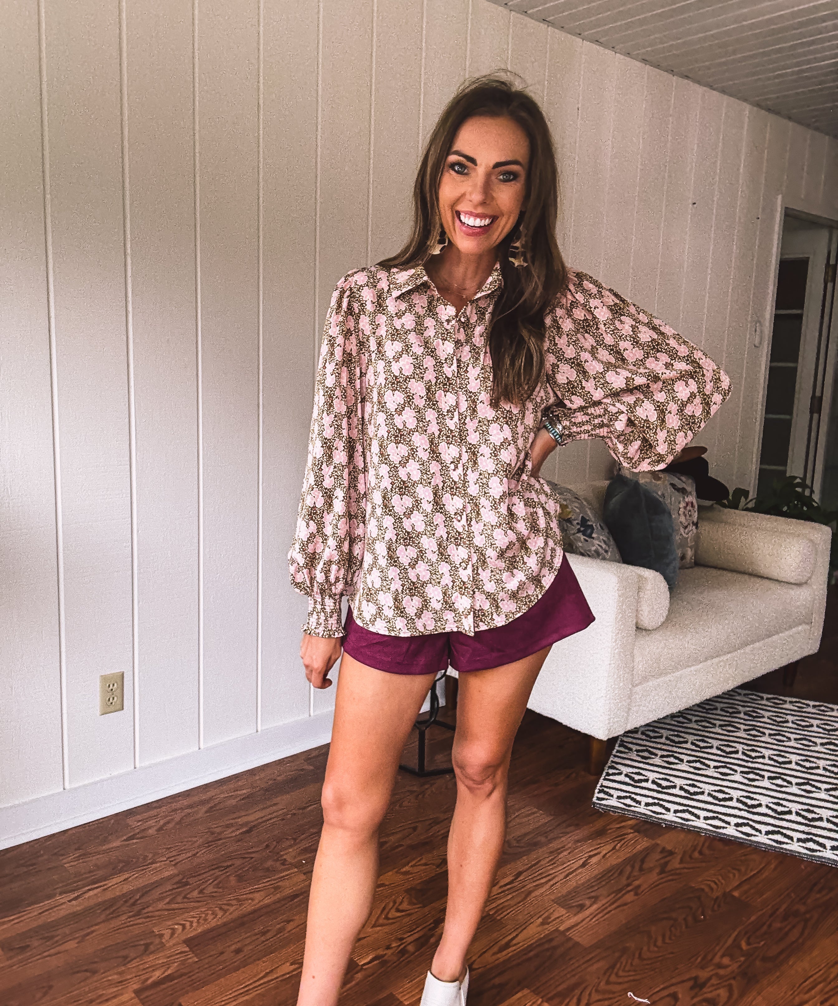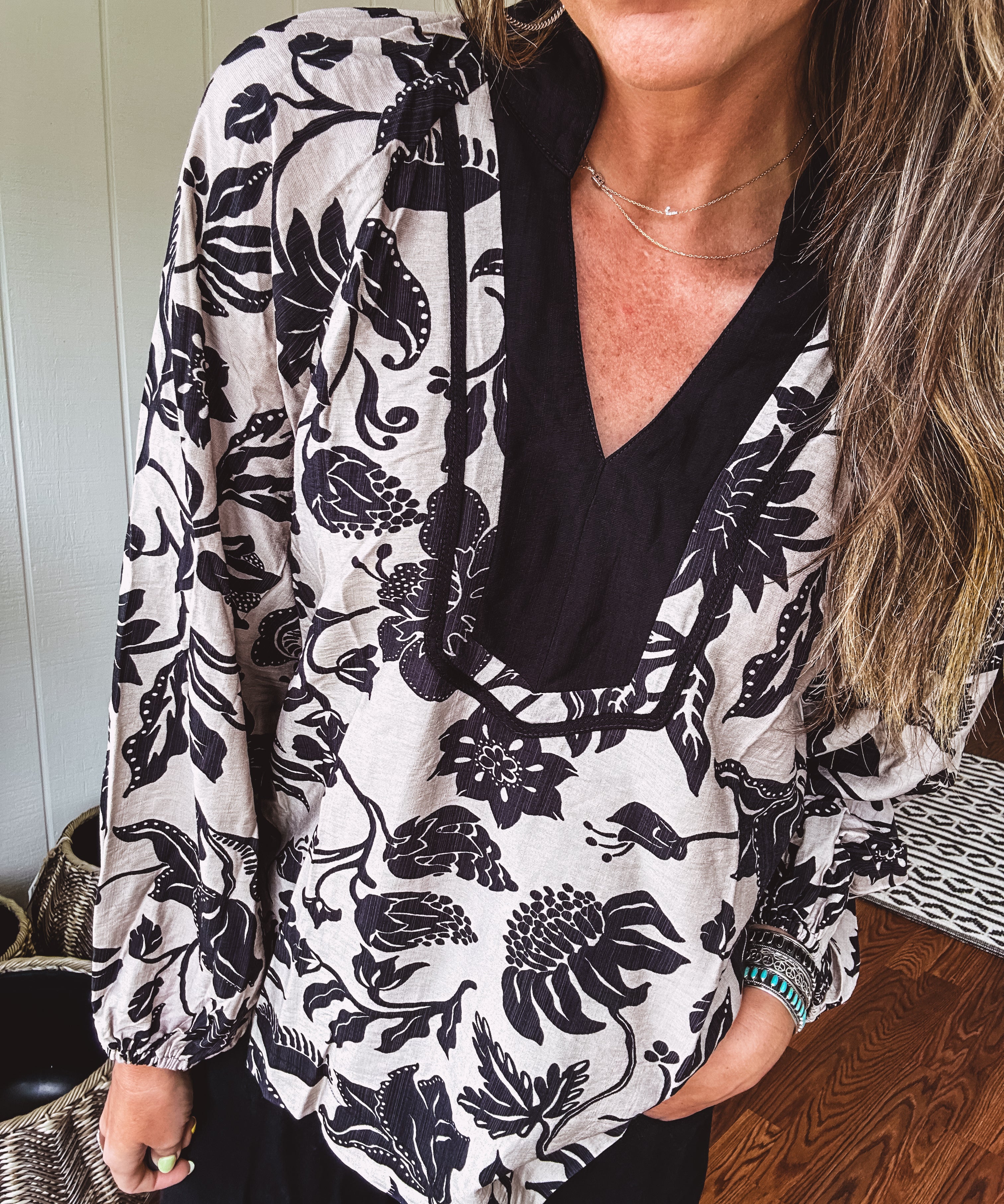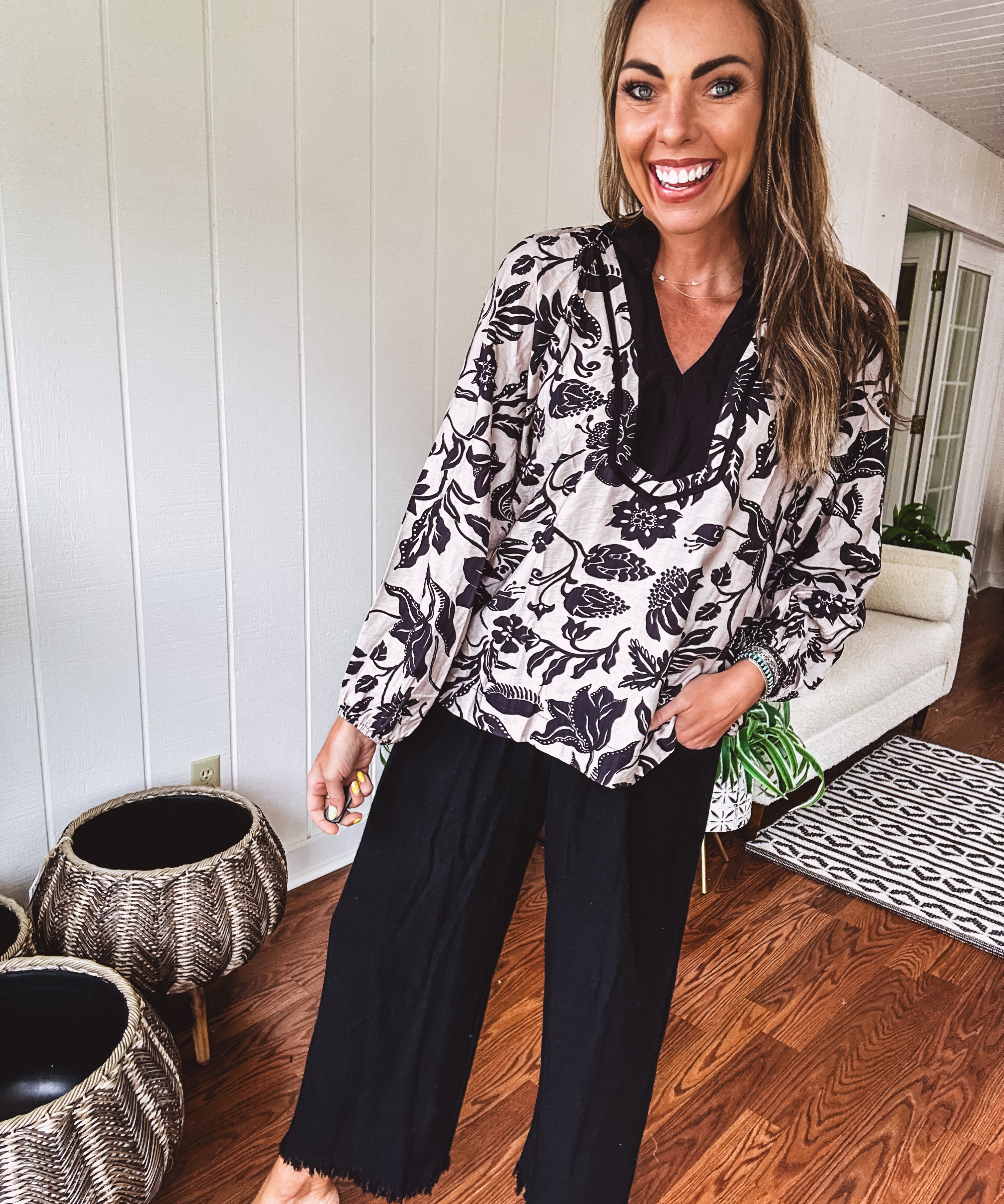 Dusty Floral Stripe Trim Flutter Hem Dress