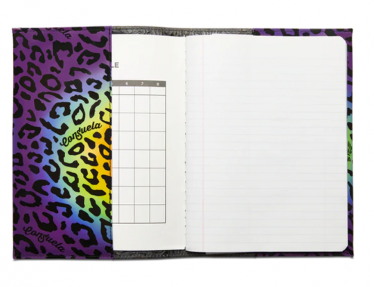 Featuring a charcoal tooled leather cover with a sleek steely vibe, this notebook comes with a removable, reusable sleeve. Inside, you'll find a composition notebook, plus a leather-embossed nudge to Make Today Ridiculously Awesome.