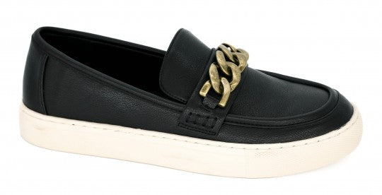From Corkys, come the Chain Reaction shoes: Add some effortless style and comfort to your daily escapades with these groovy slip-on kicks. The trendy chain detailing adds a touch of flair to any ensemble while keeping you comfortable all day long. Essential for any fashion-forward individual seeking both style and convenience, these shoes are a must-have for your closet. Don't pass up the opportunity to showcase your one-of-a-kind fashion sense with every stride!