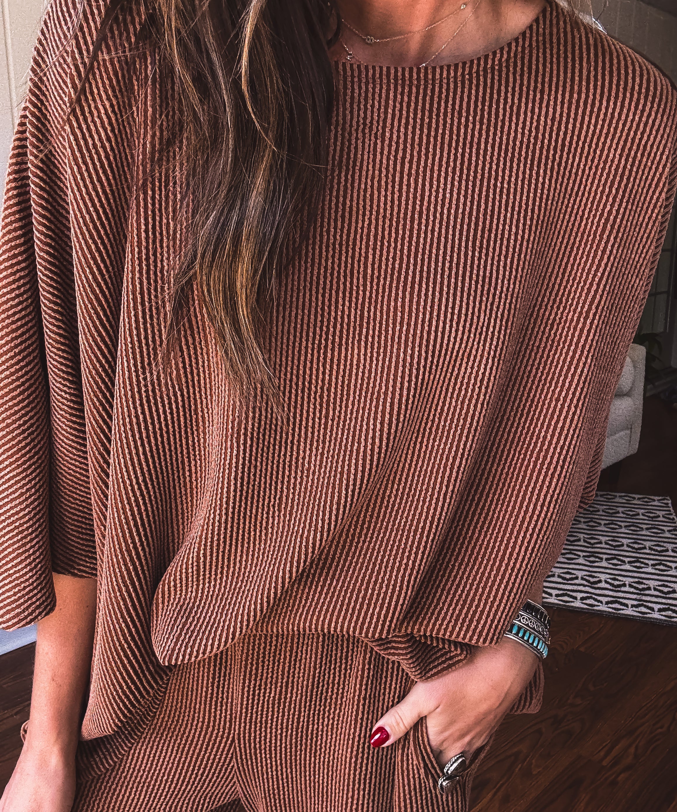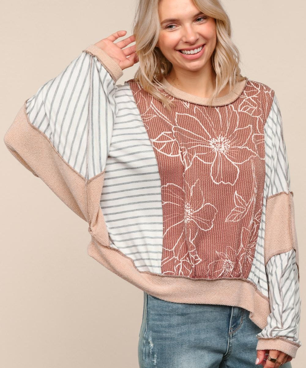 Oatmeal + Mocha Floral & Stripe Mix Oversize Dolman