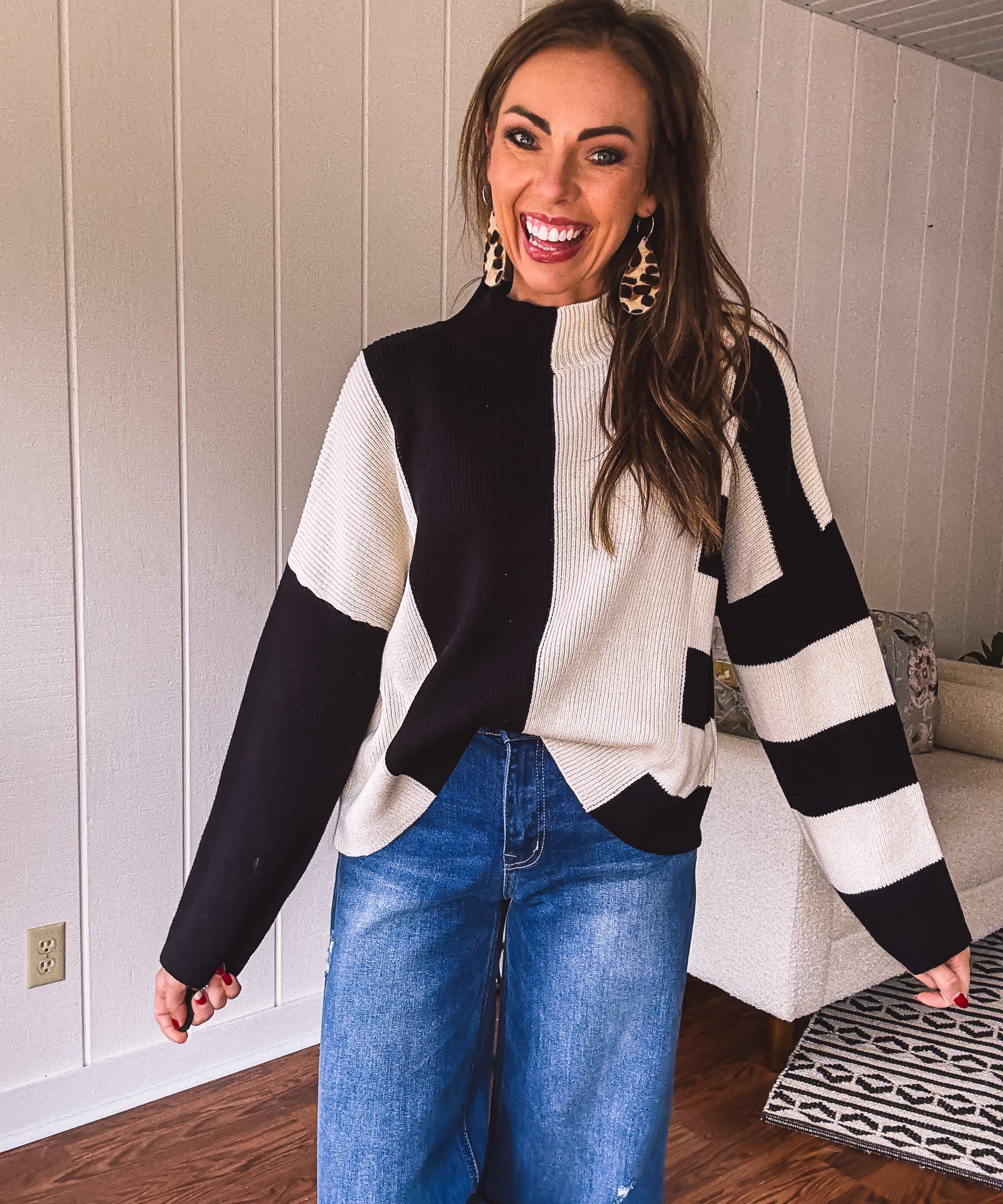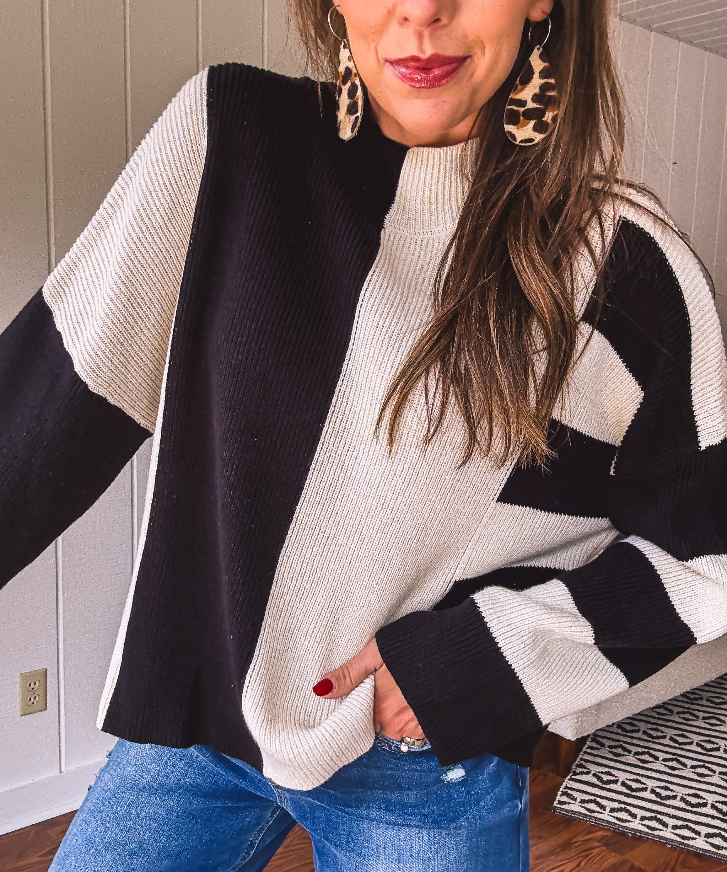 Black & White Stripe Colorblock Pullover Sweater