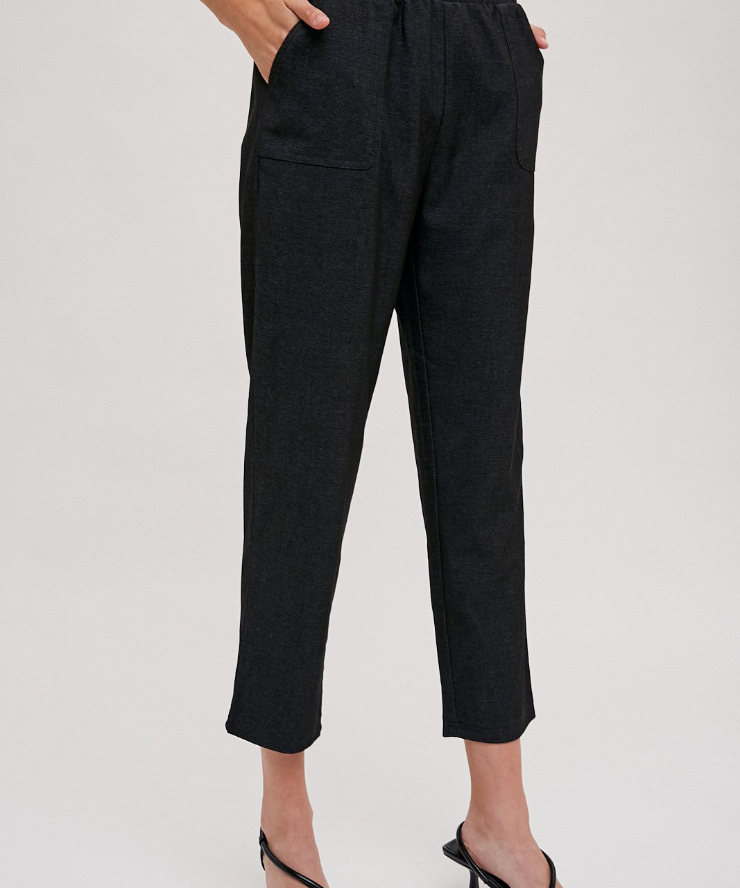 Black Crop Straight Raw Hem | Mid Rise