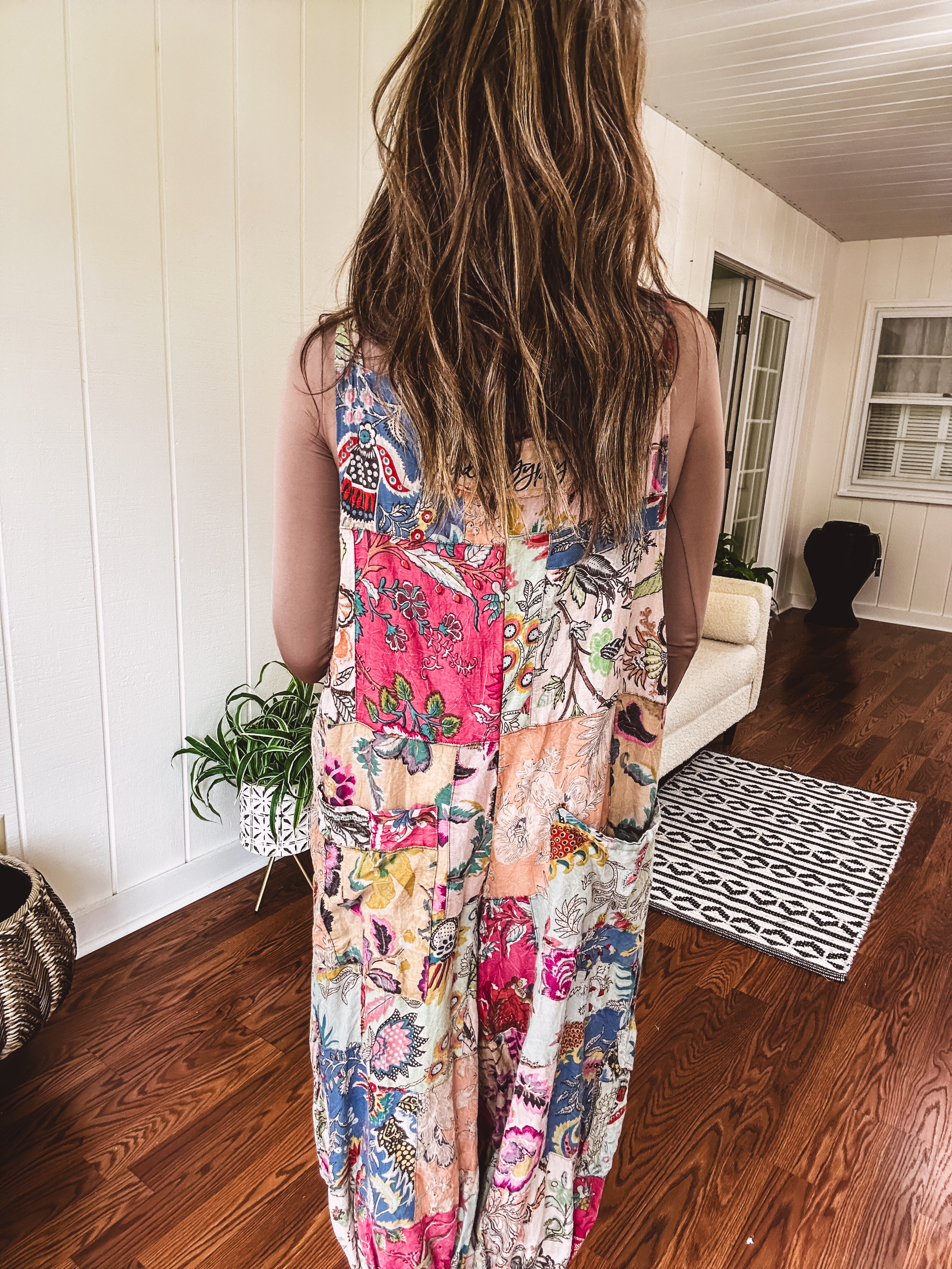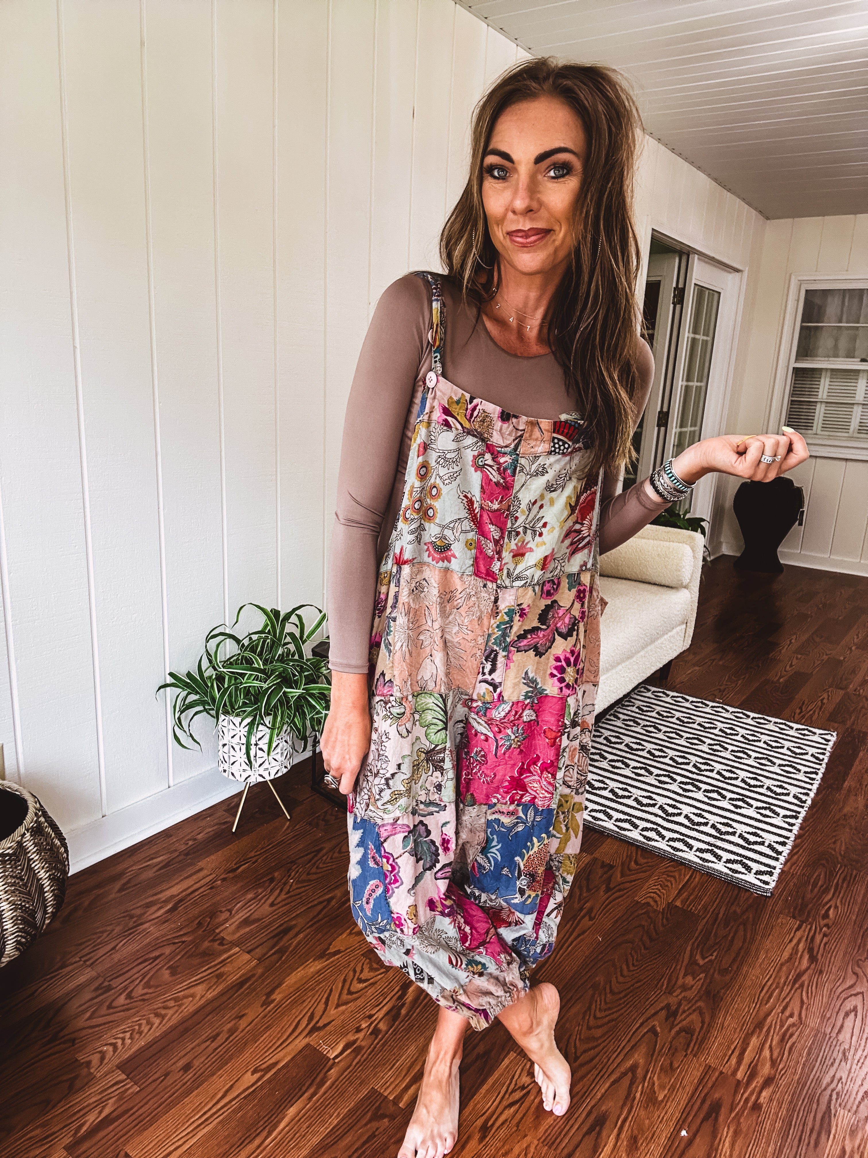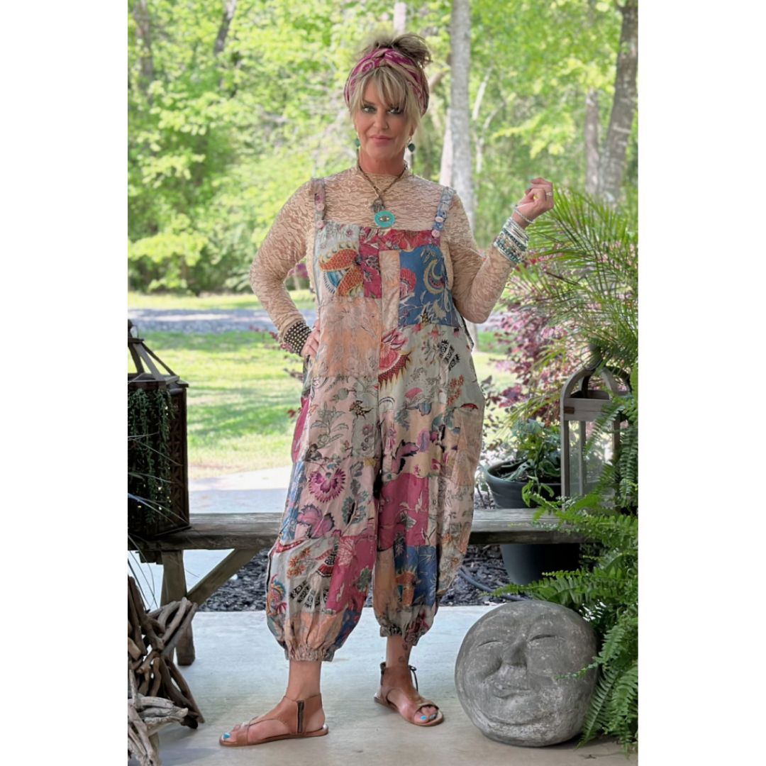 These Joyous Jamboree Slouchy Overalls from Jaded Gypsy feature a lightweight, breathable fabric with a funky floral patchwork in soft, muted tones. The elastic cuffs and relaxed fit give off a laid-back boho vibe, ideal for moving smoothly from summer into fall. Layer with a tank or your favorite long-sleeve mesh or tee, slip on some booties, and get ready to shine with your joyful spirit!