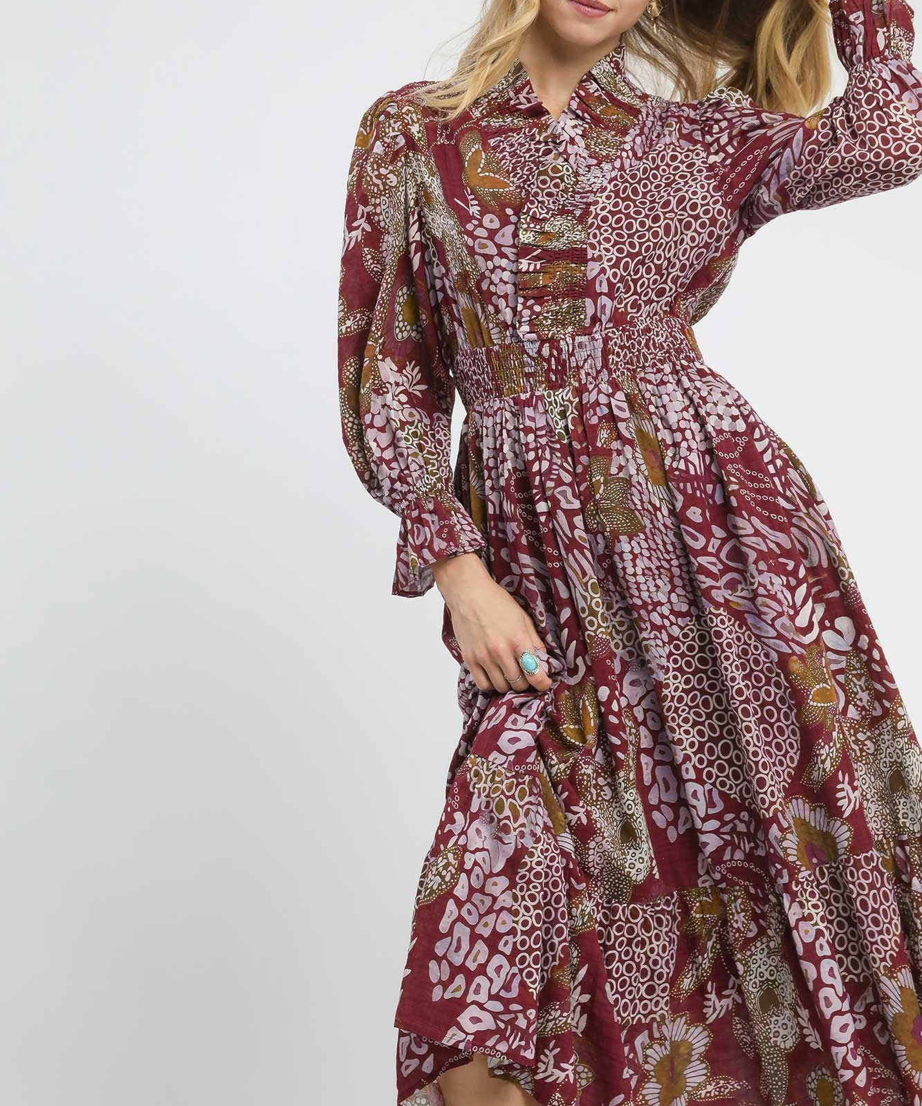 Olive Woven Print Tiered Maxi Dress Flutter Sleeve