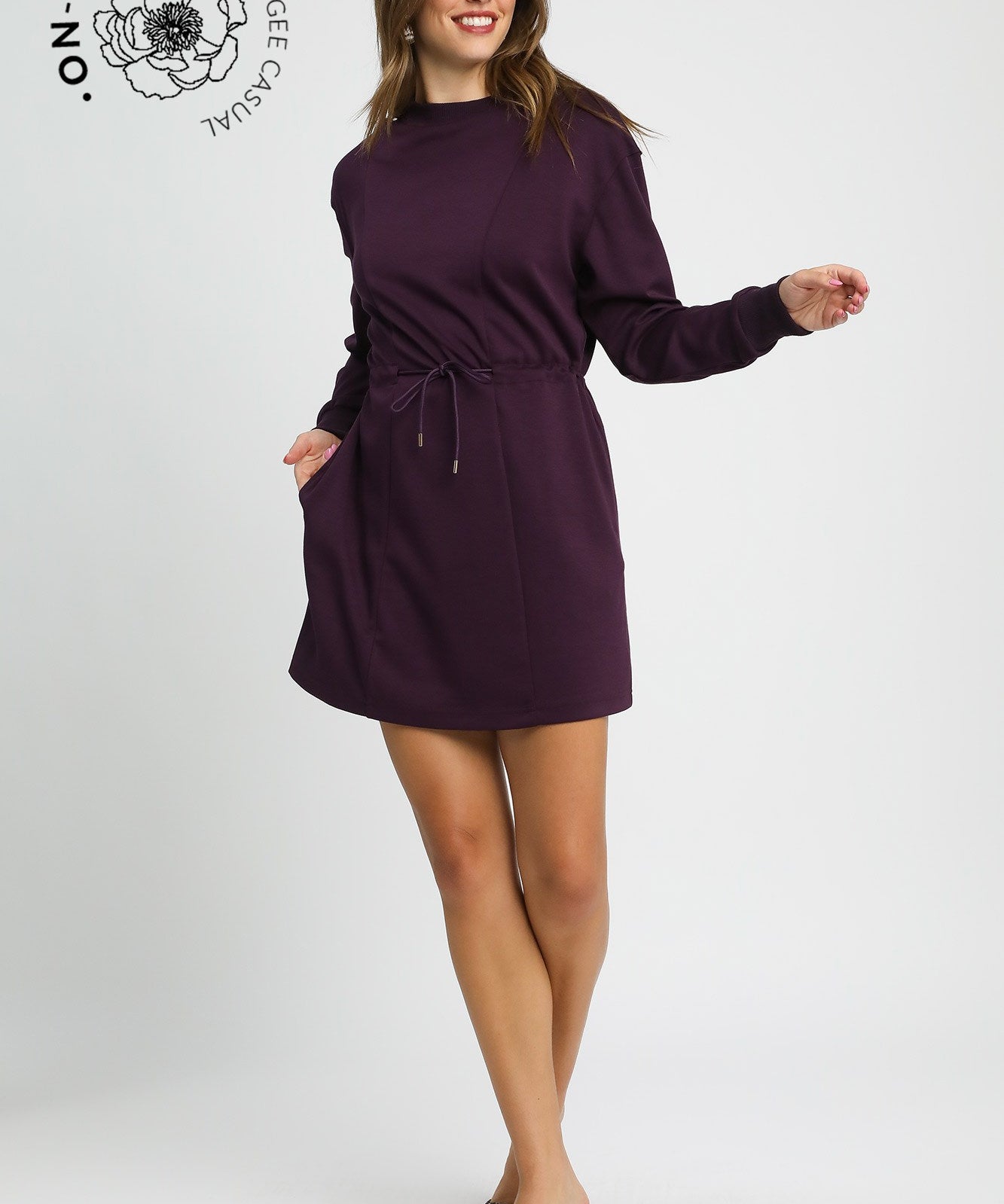 Plum On The Go Drawstring Waist Dress