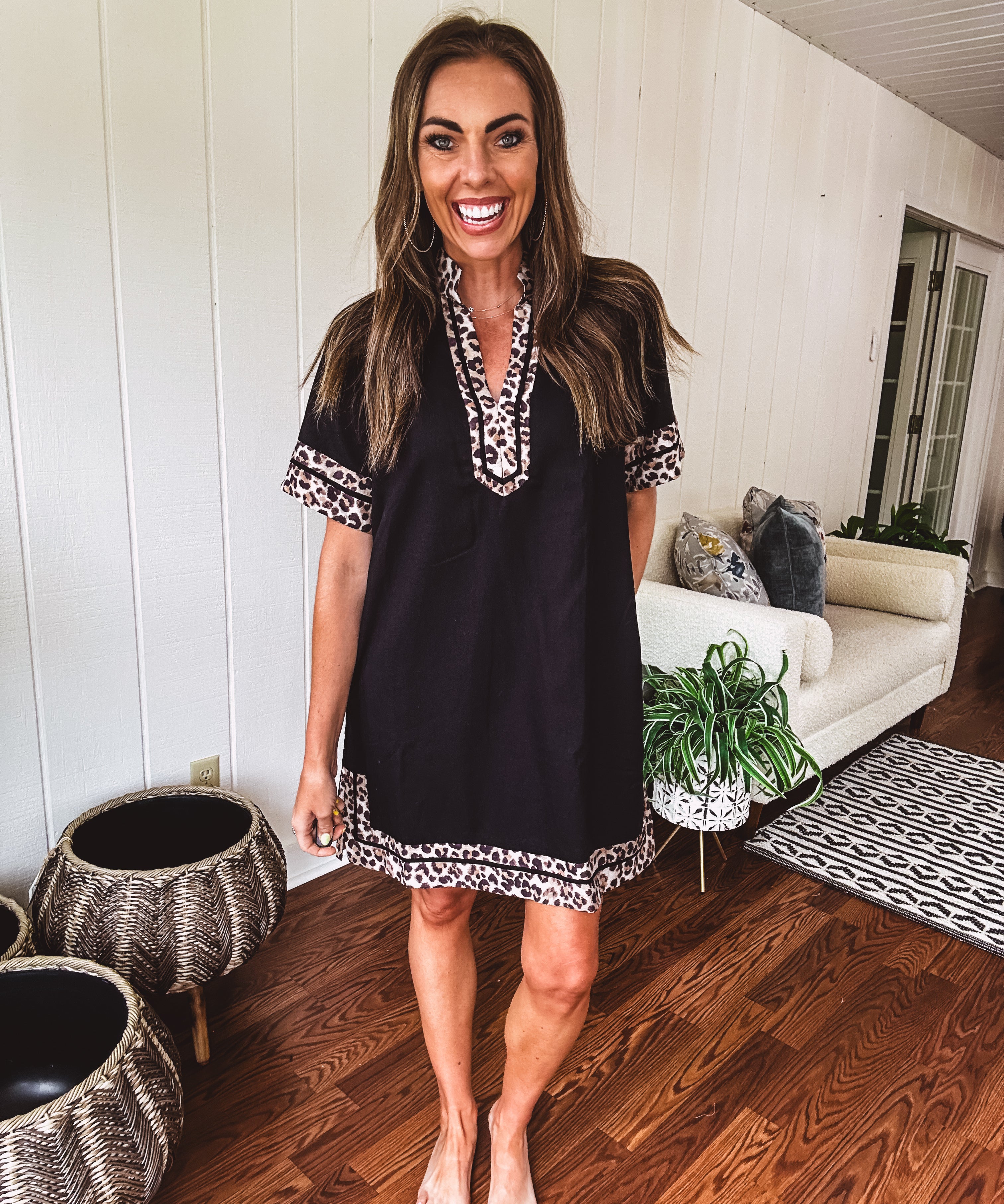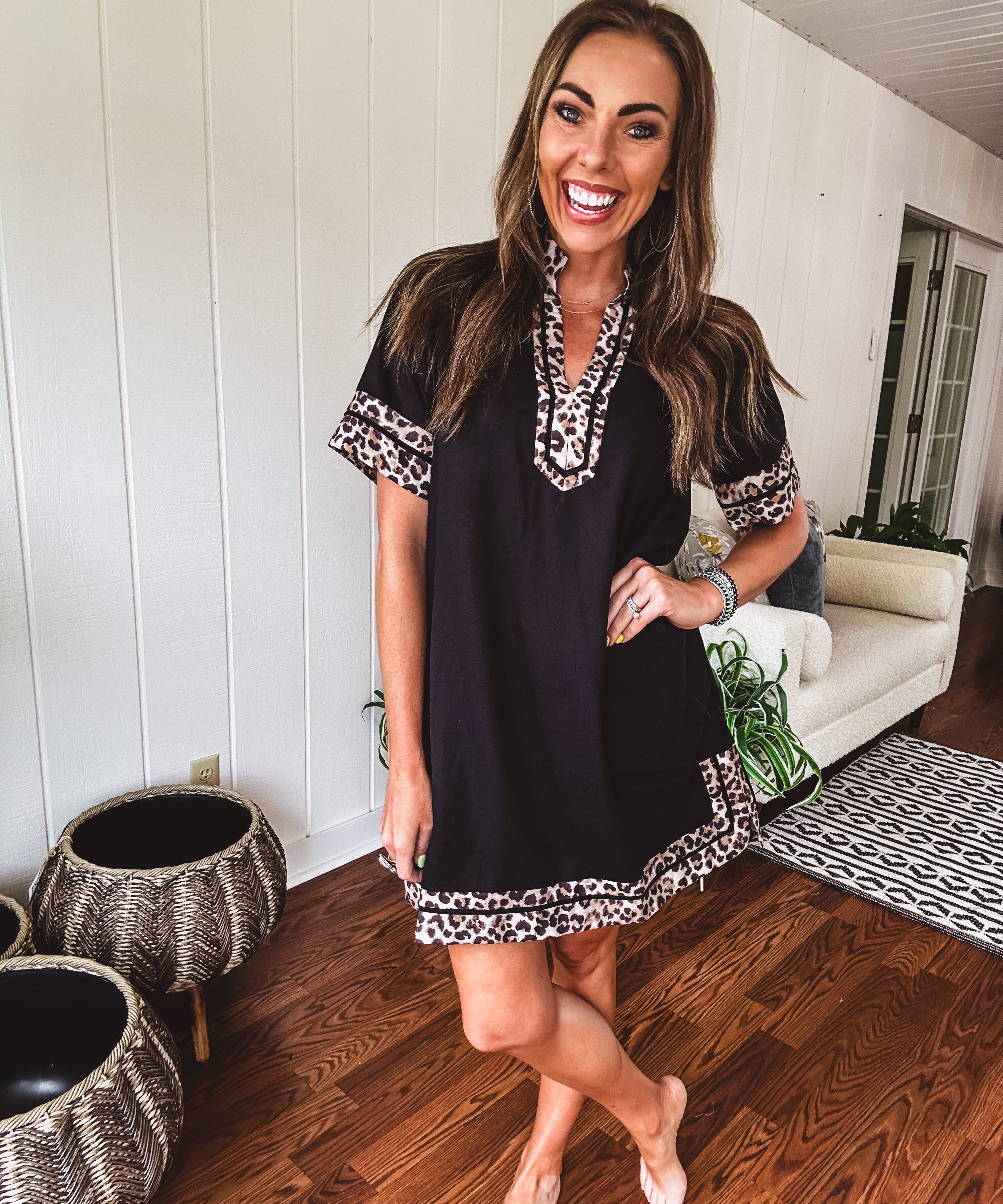 Black Leo Trim A Line Dress