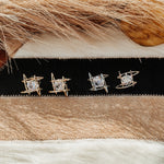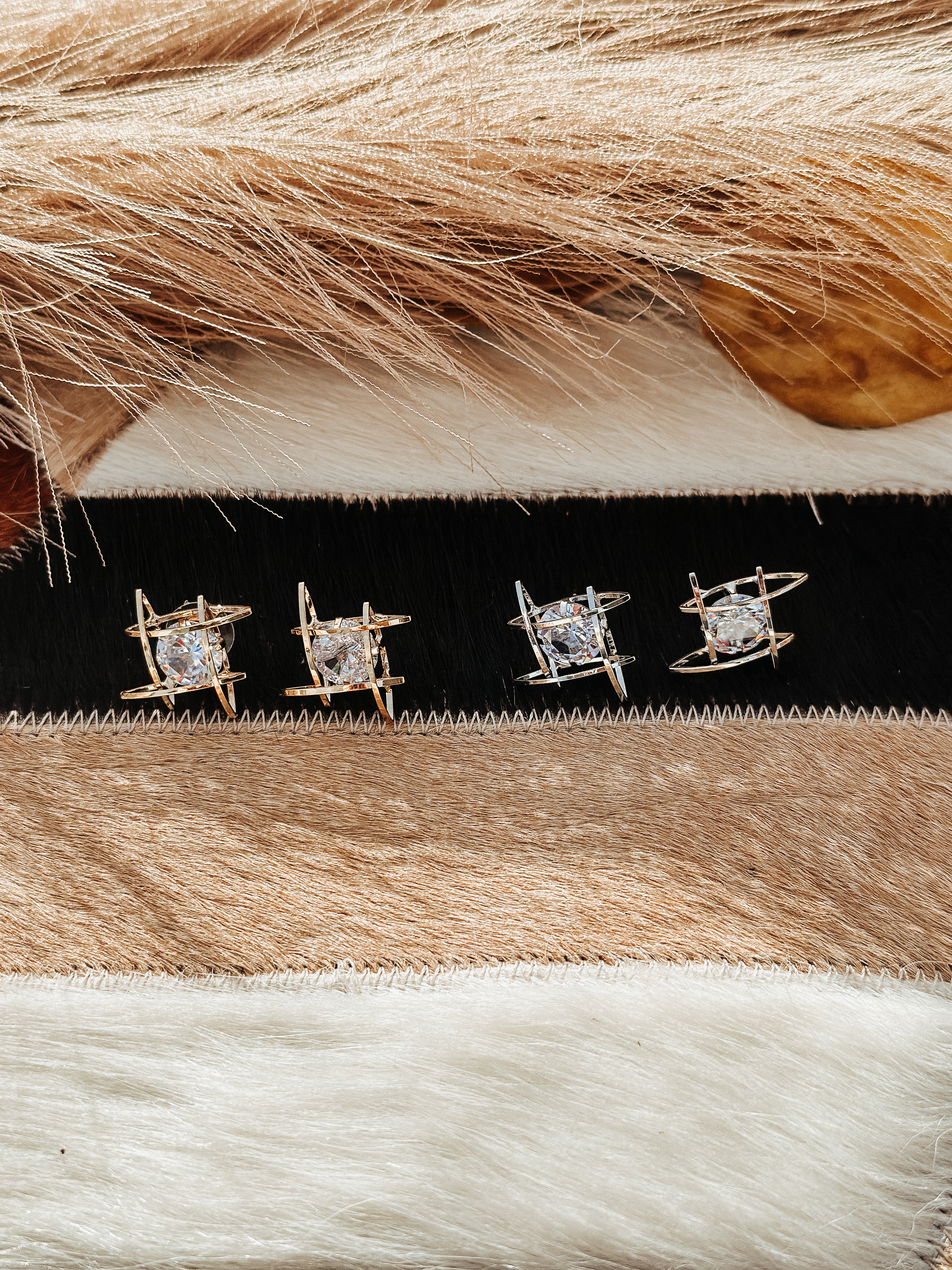 These Abstract Glam Post earrings feature a large faux diamond suspended in a shiny, abstract prism made of either faux silver or faux gold. These are lightweight and the perfect size to add to any 'fit - guaranteed to catch the eye! Grab them in both colors for unlimited options!