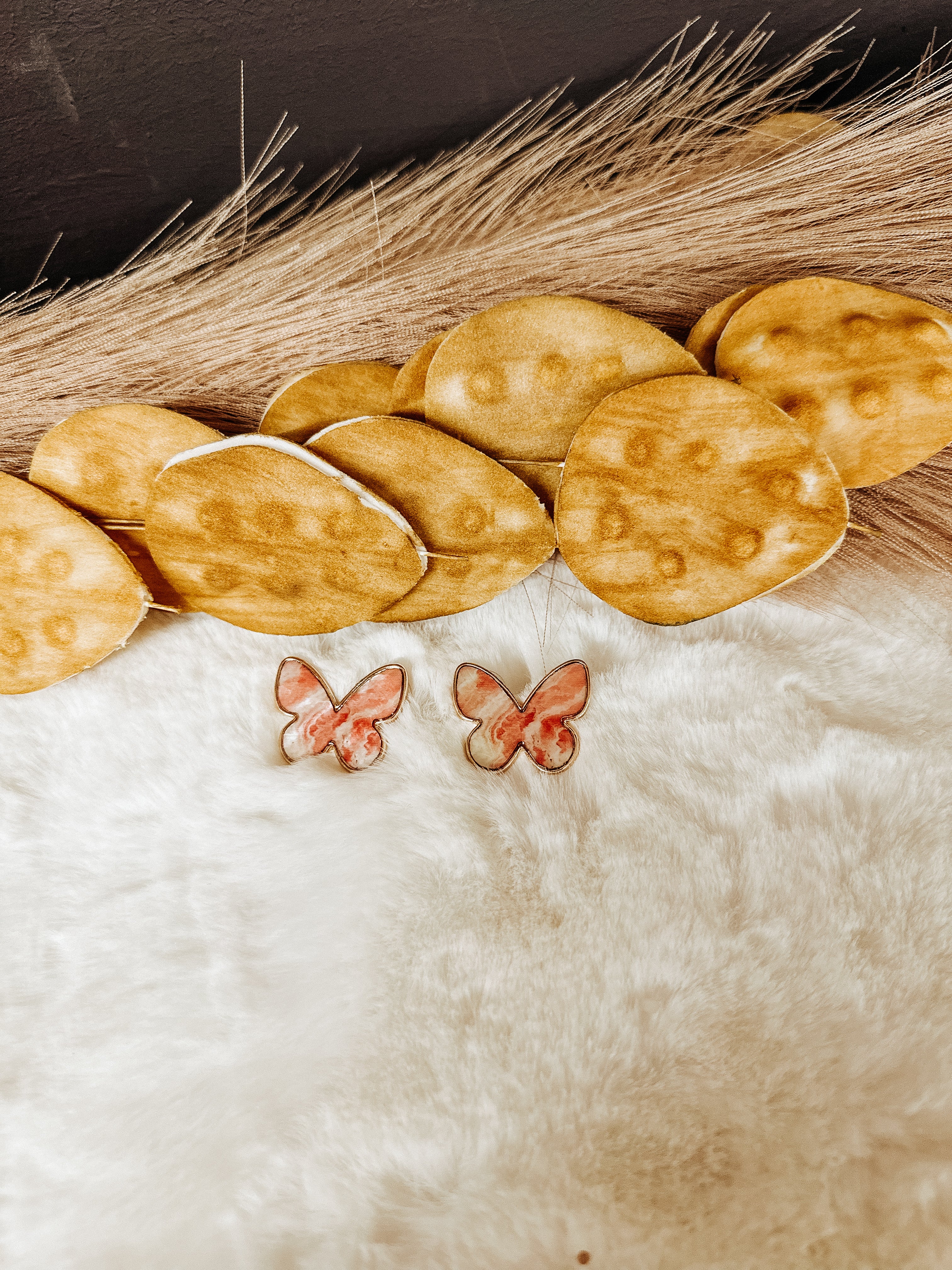 Simply mesmerizing! These Art Deco Butterfly Earrings feature a pearly pink, coral and ivory background surrounded by faux gold and are the perfect size to make any heart flutter!