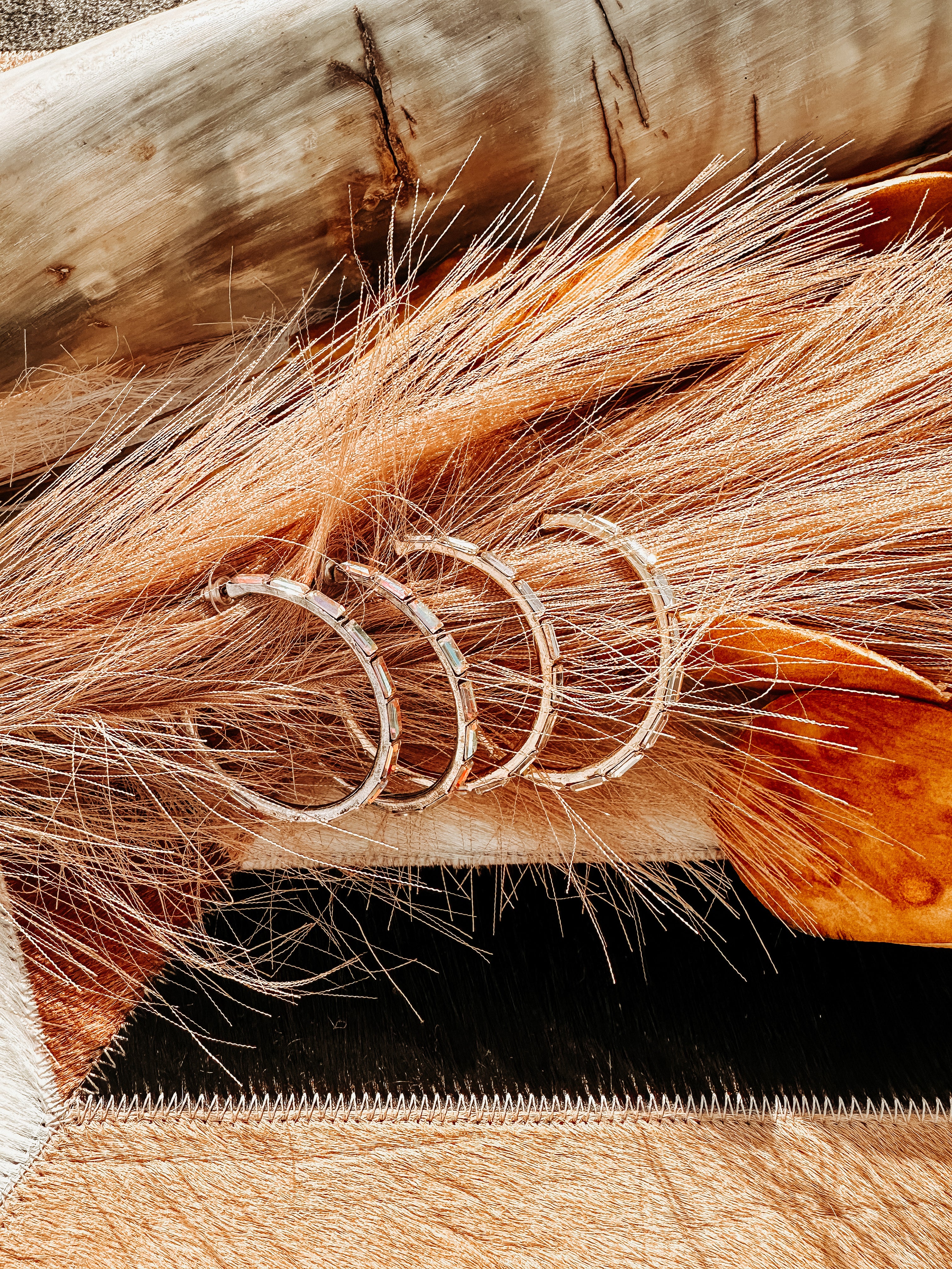 Enhance your outfit with the perfect touch of sparkle! These faux diamond baguettes, set in either faux gold or silver, effortlessly catch the light and add a luxurious touch to any look. Lightweight and at an ideal price point, you can't go wrong with these stunning hoops. Get them in multiple colors for limitless styling possibilities!