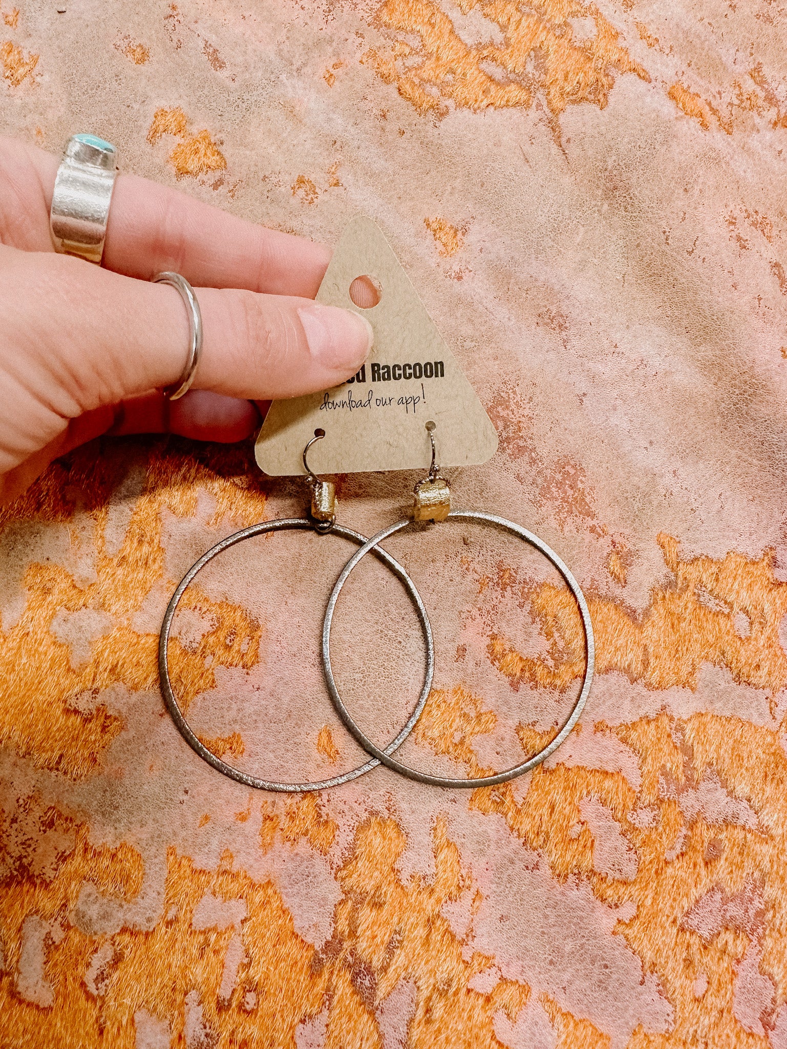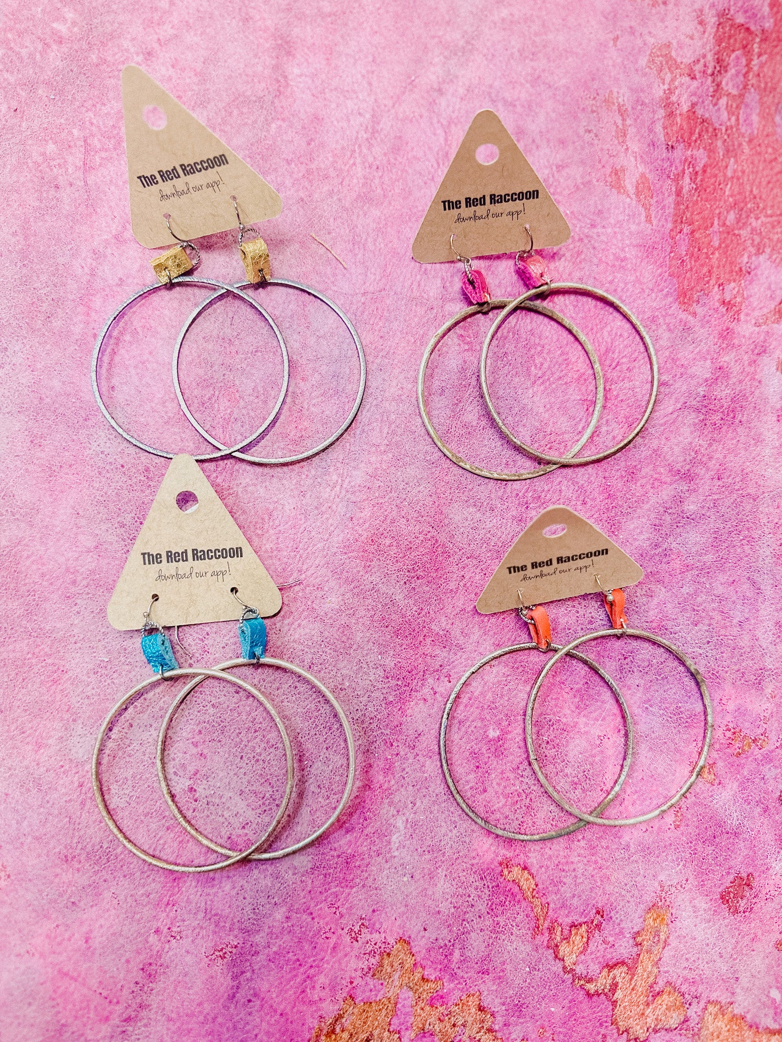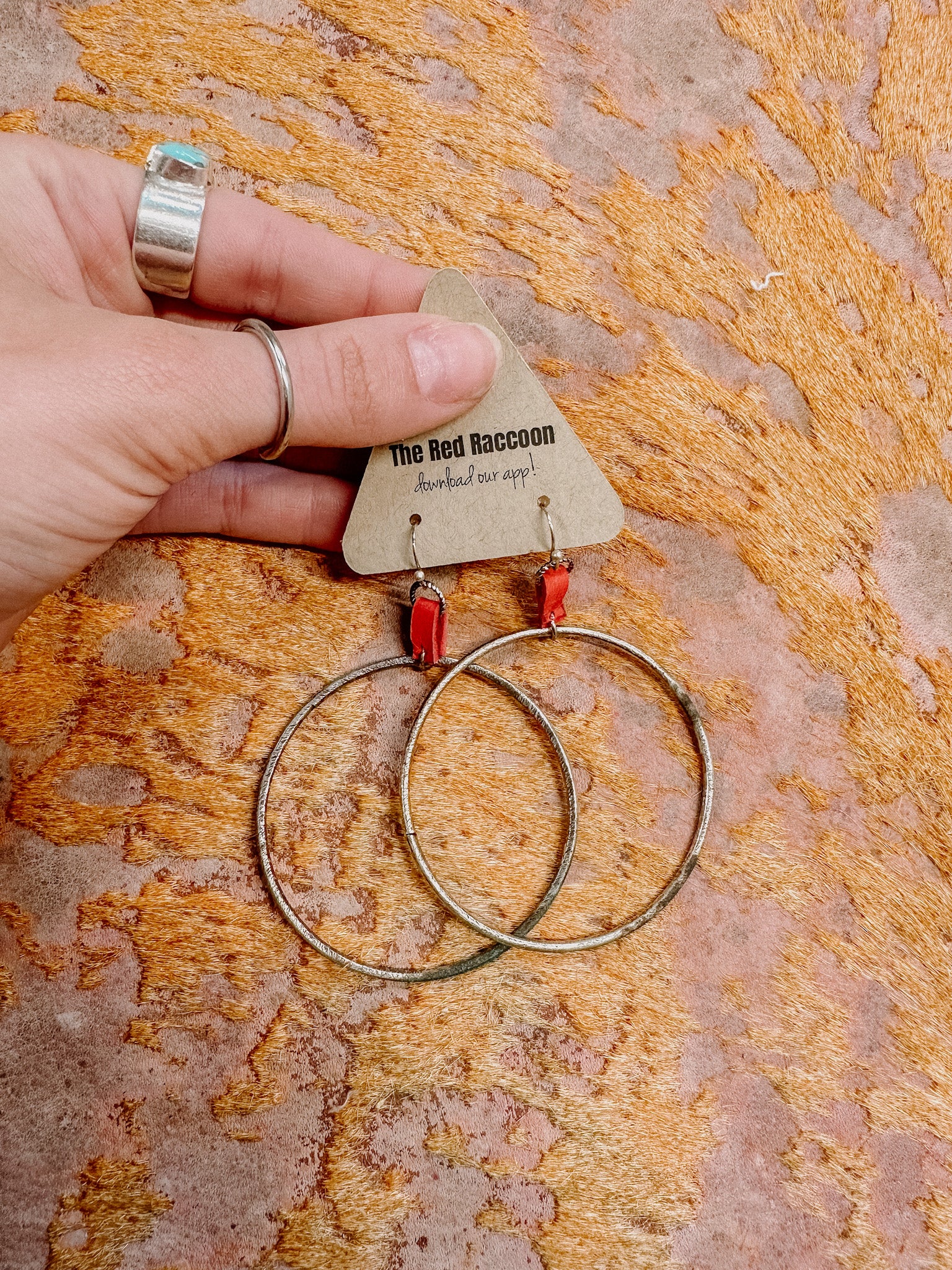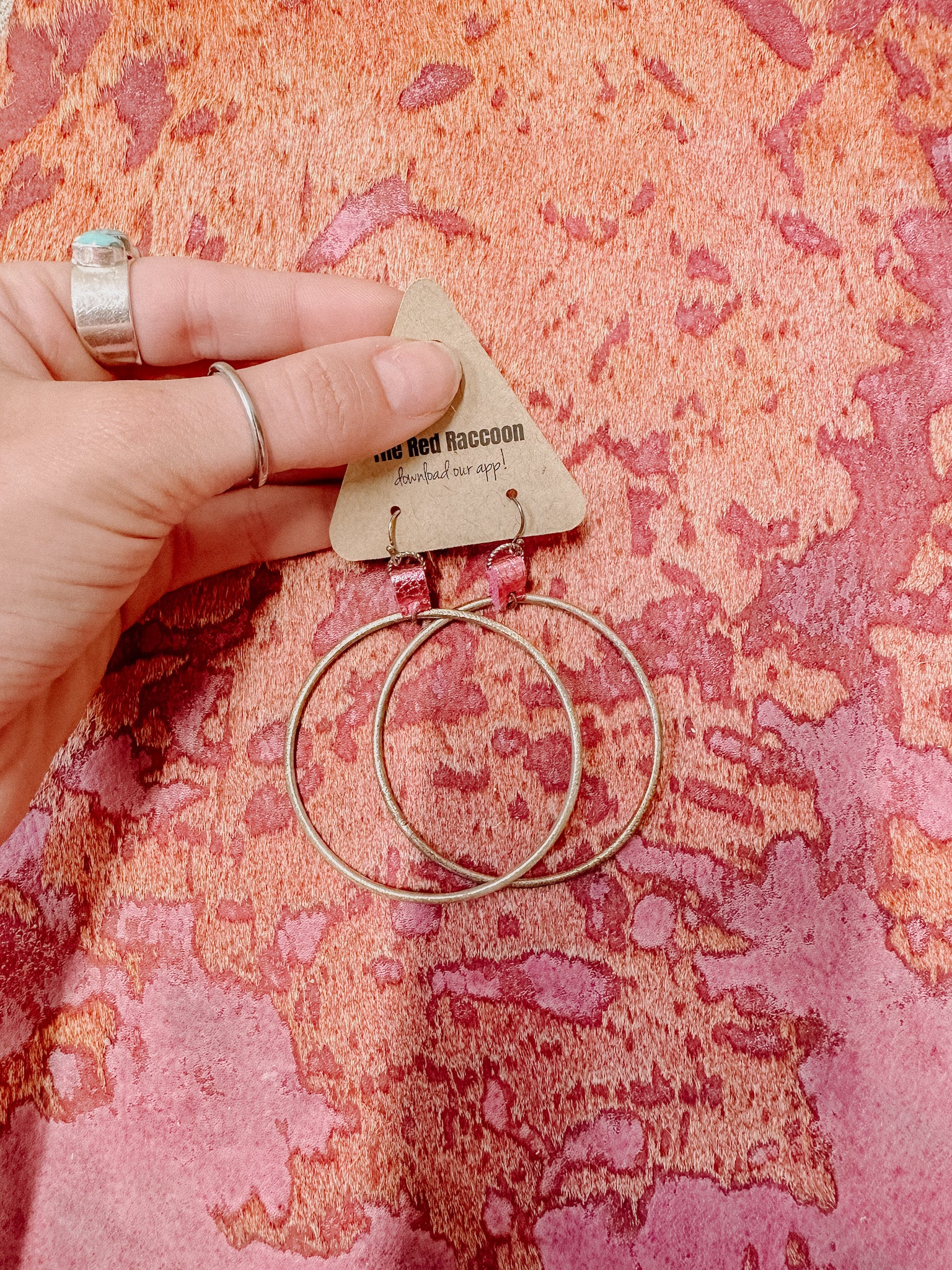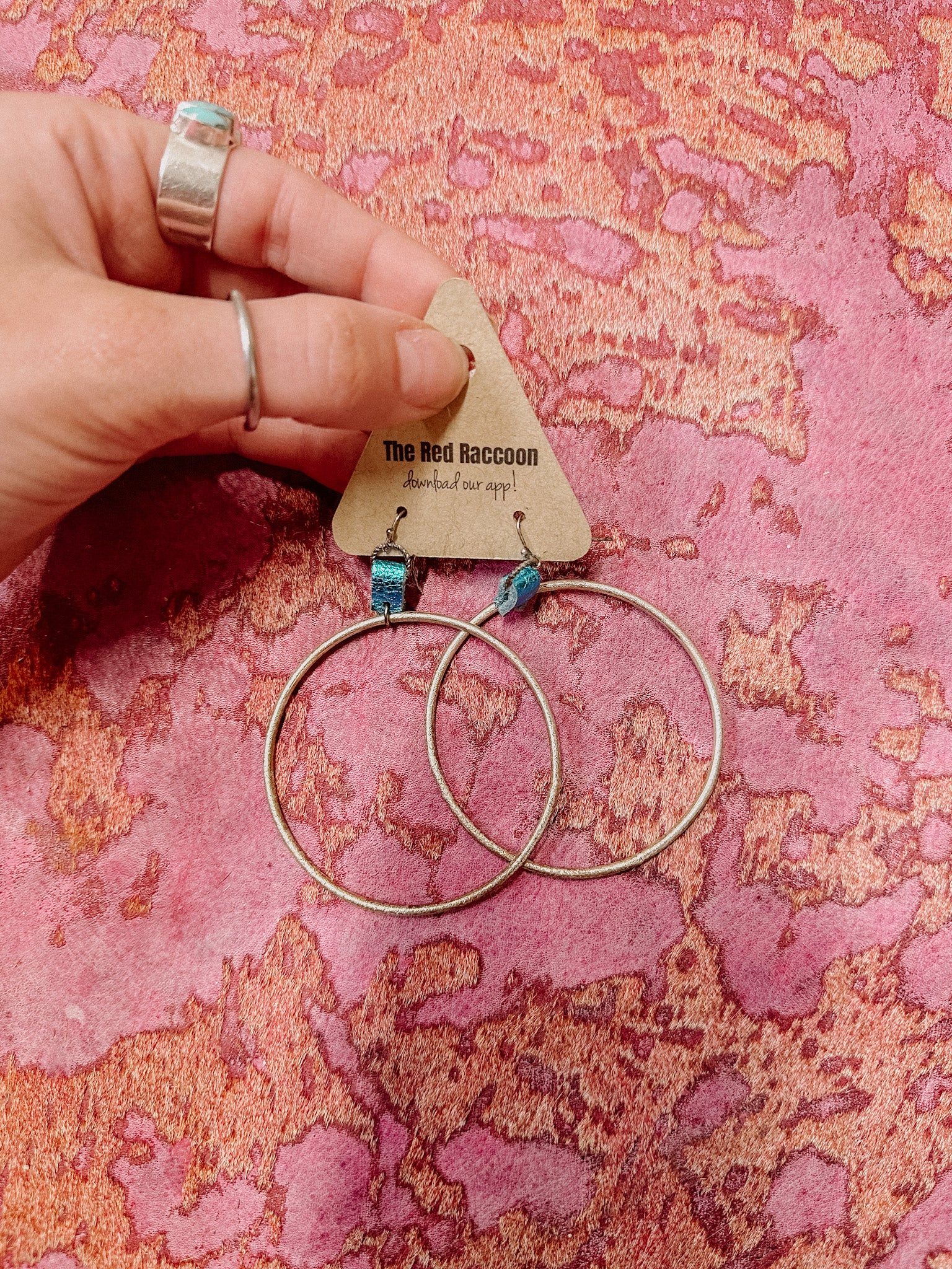 Elevate your style with the Cosmic Cowgirl Hoops, where bold meets playful in large muted silver or gold hoops accented with a splash of metallic leather in vibrant electric blue, hot pink, red, or gold. These earrings are lightweight and designed just right to catch attention without weighing you down. Whether you’re dressing up for a night out or adding a pop of fun to your everyday look, these hoops bring a cosmic twist to your cowgirl charm. Mix and match colors to express every mood—grab one in each shade and let your style shine bright!