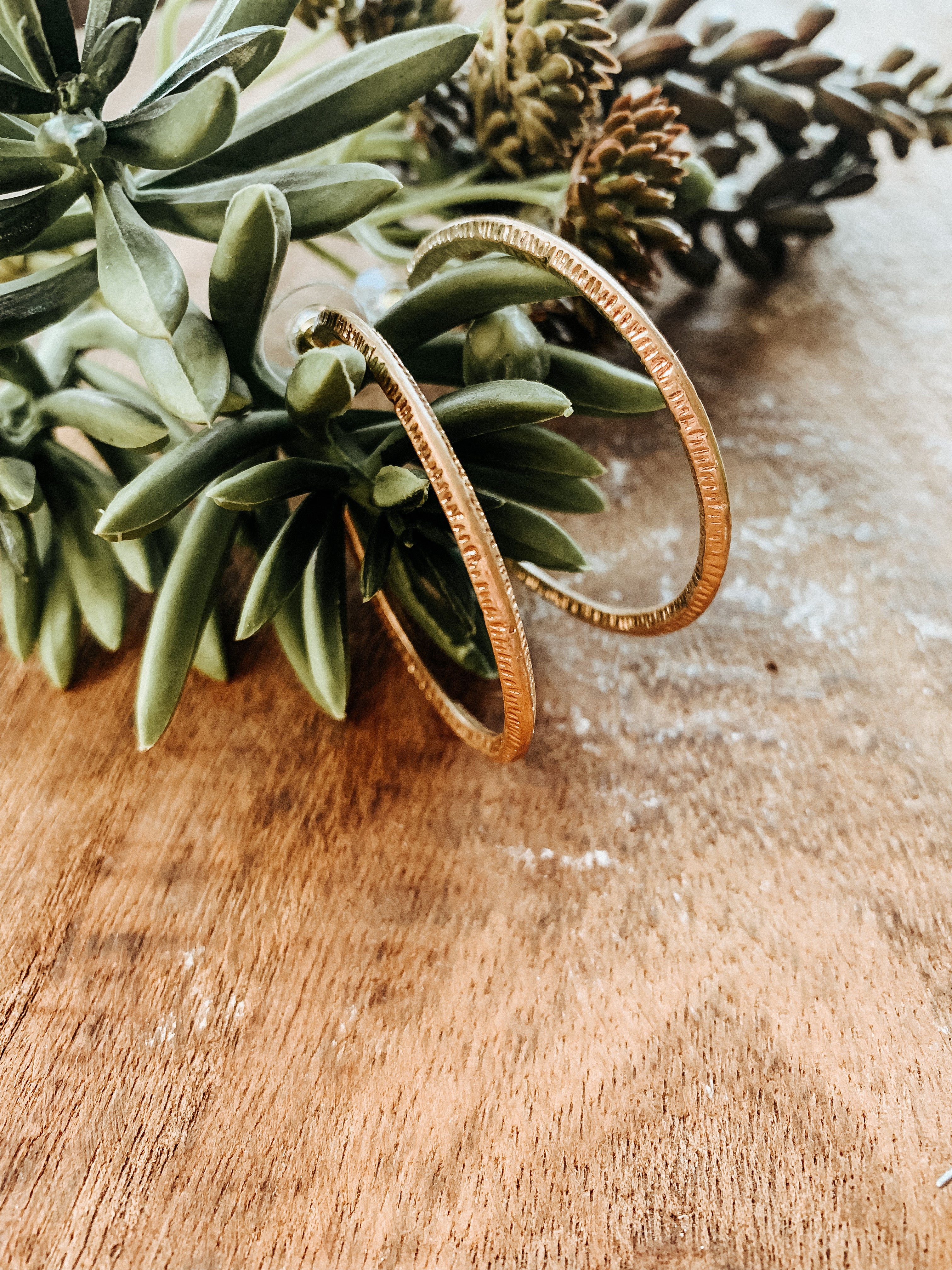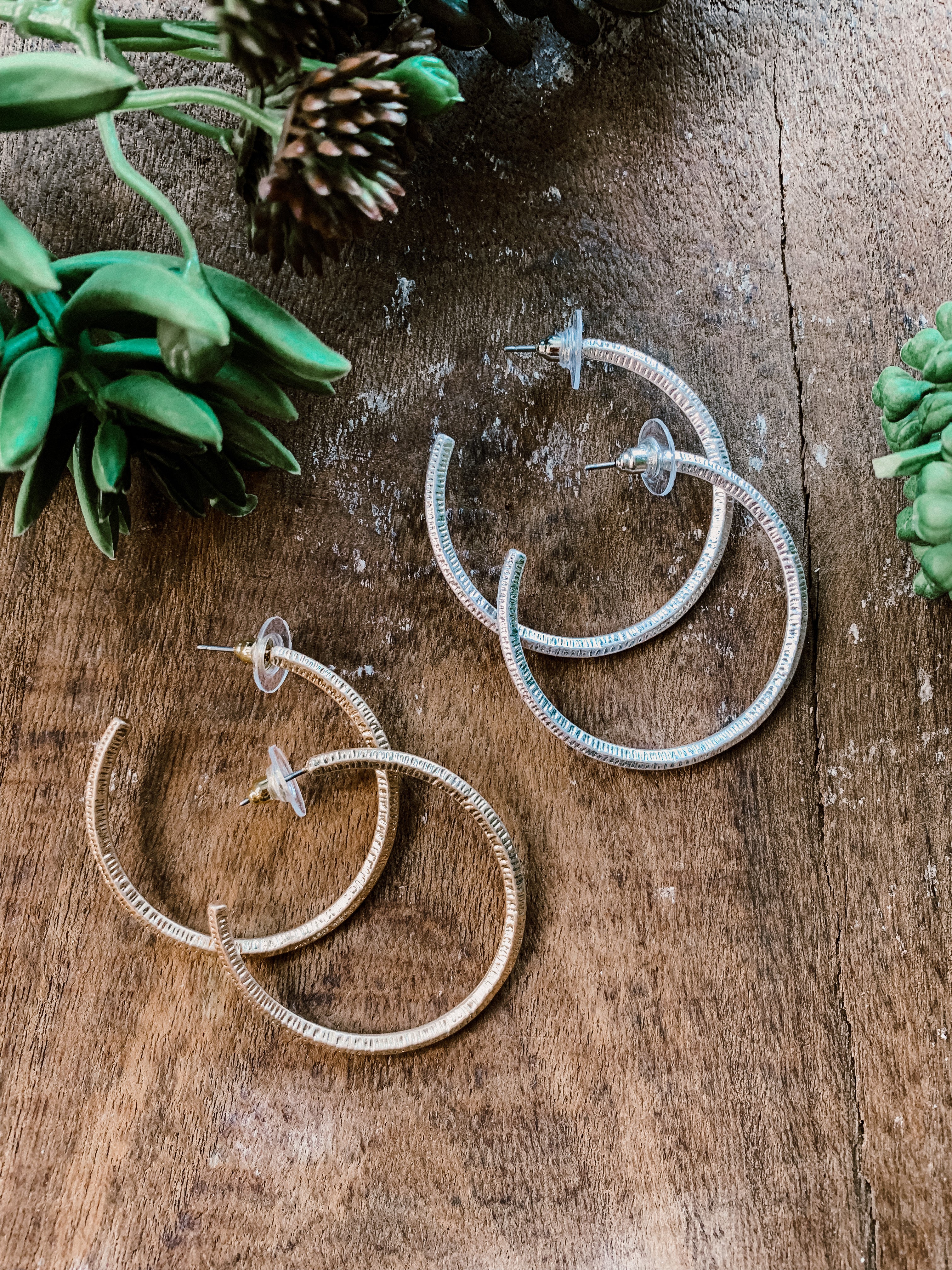 Elevate your everyday style with these charming Hammered Look Thick Hoops. Crafted in muted gold or silver with a textured hammered finish, these hoops add a touch of sparkle without overwhelming your look. The sturdy post back ensures a secure fit, making them perfect for everything from casual coffee dates to spontaneous dance parties. Playful yet elegant, these hoops are your new go-to accessory for effortless chic wherever you go.