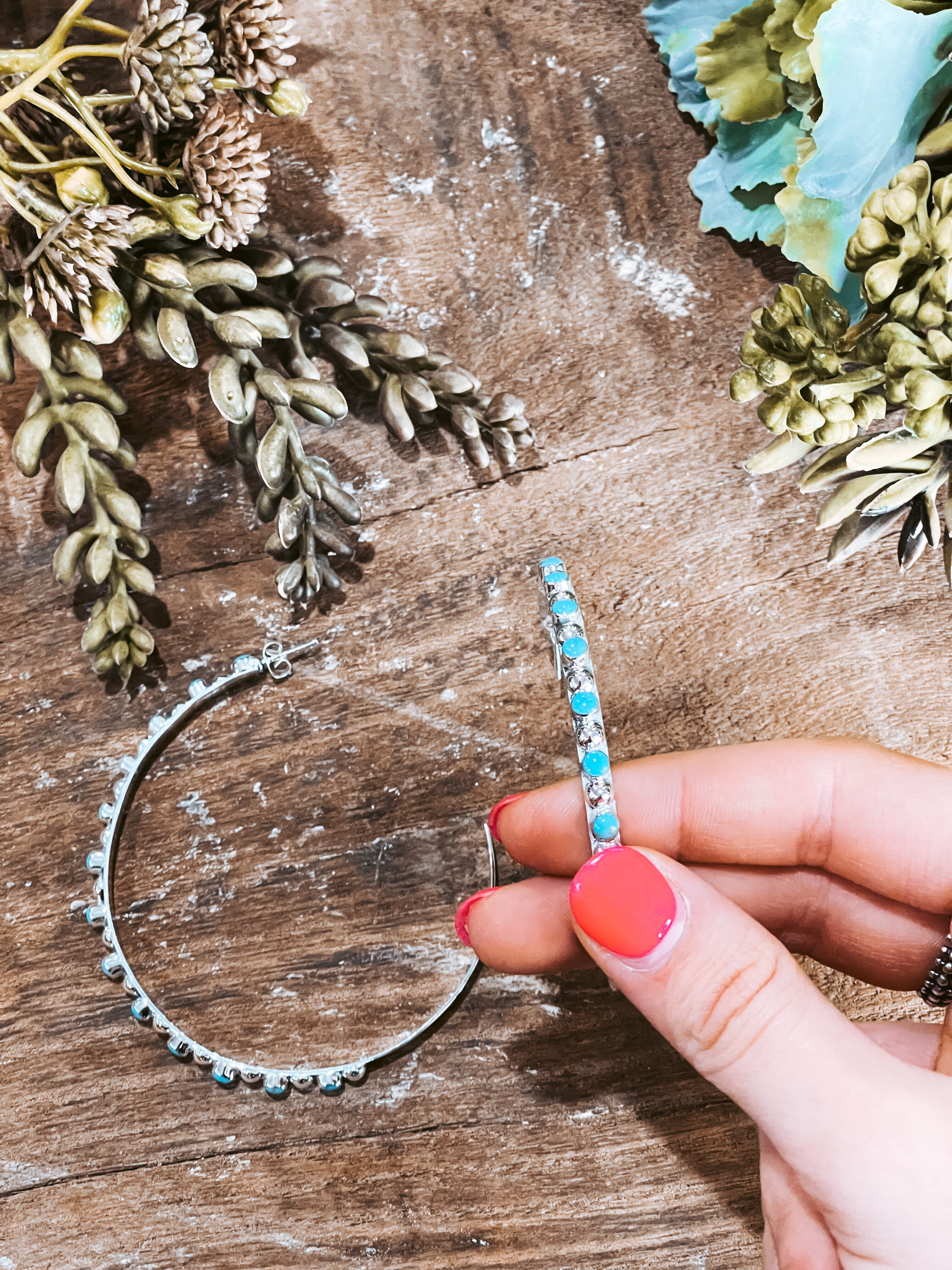 Get Noticed in These Authentic Kingman Turquoise & Real Sterling Silver 3" Hoops