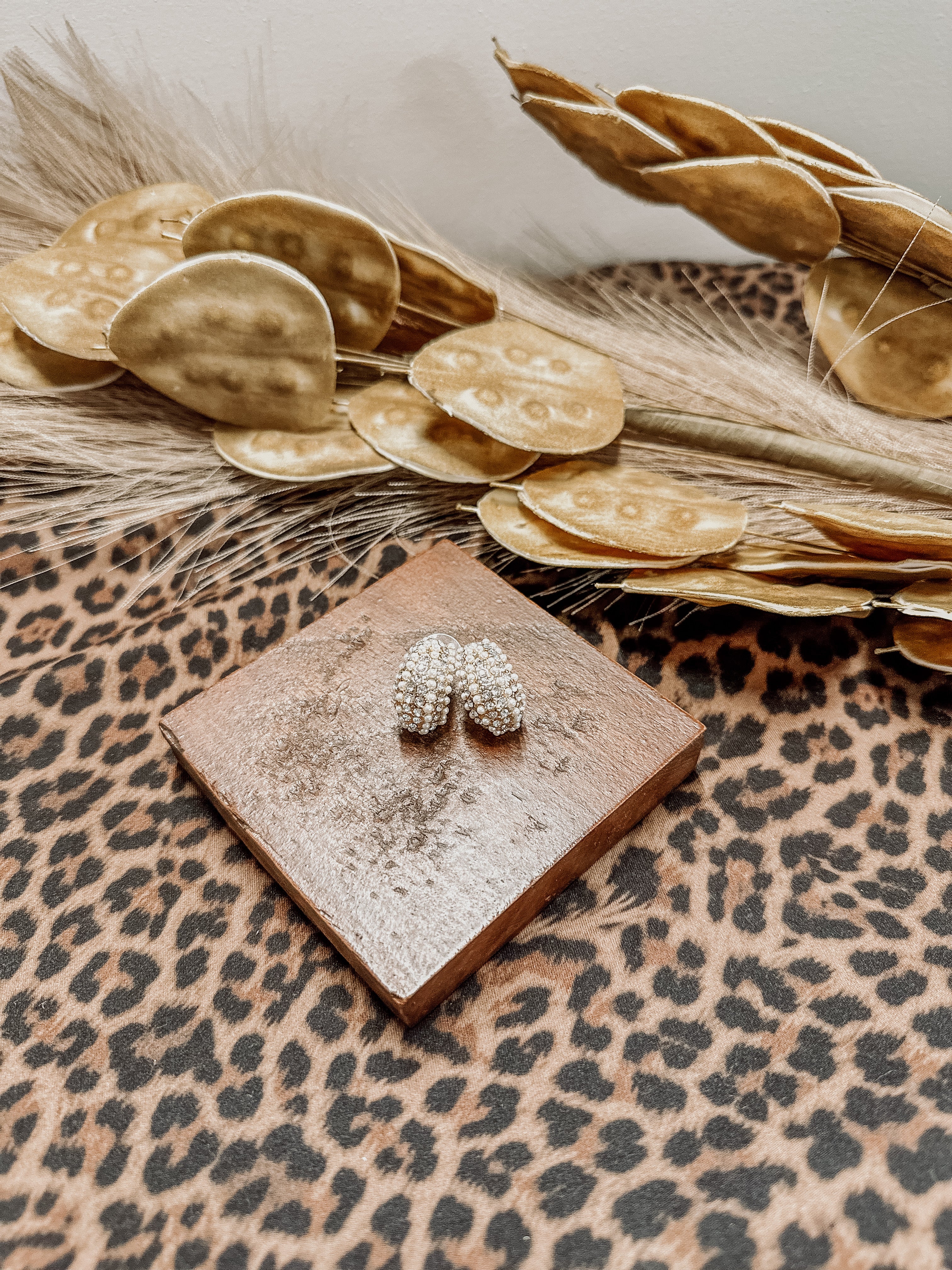 Elevate your style with the Pearl Crystal Peanut Post earrings—a playful twist on classic glam. Featuring a charming peanut shape crafted from sparkling faux crystals and lustrous pearls, these earrings bring a fresh, trendy vibe to any outfit. Their post back ensures easy, secure wear, making them perfect for adding a touch of fun sophistication to your everyday look or dressing up for a night out. Let these delightful earrings be your new go-to accessory that sparkles with personality and charm.
