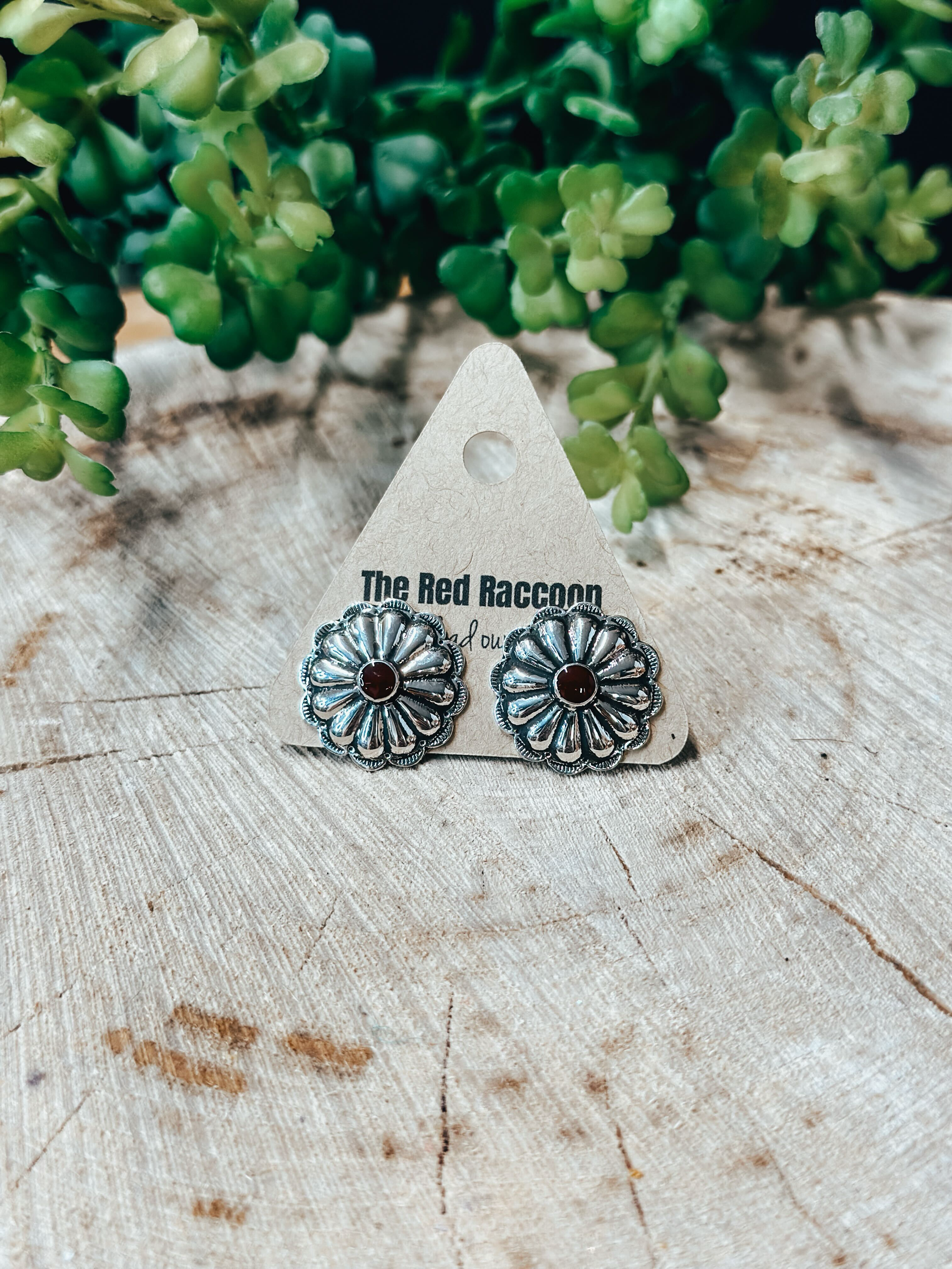 Focus In On These Gorgeous Red Jasper Concho Sterling Silver Earrings!