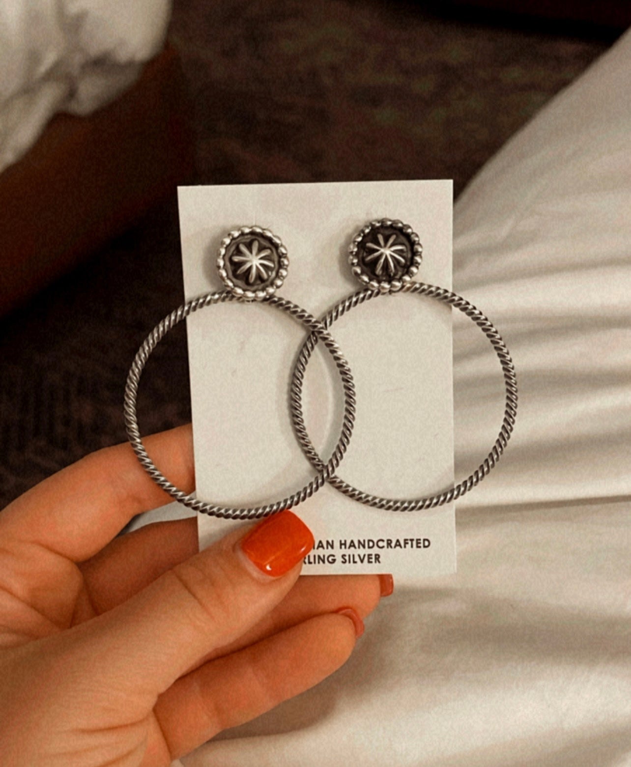 These sterling silver SS Rope Concho Post Hoops are the perfect blend of edgy and timeless style. With authentic rope detailing that wraps around each hoop and an etched concho post featuring oxidation accents, these earrings add a playful yet classic flair to any outfit. Whether you’re dressing up or keeping it casual, their unique design makes them a versatile favorite you’ll reach for again and again. Add a little twist to your everyday look with these standout hoops that effortlessly catch the eye!