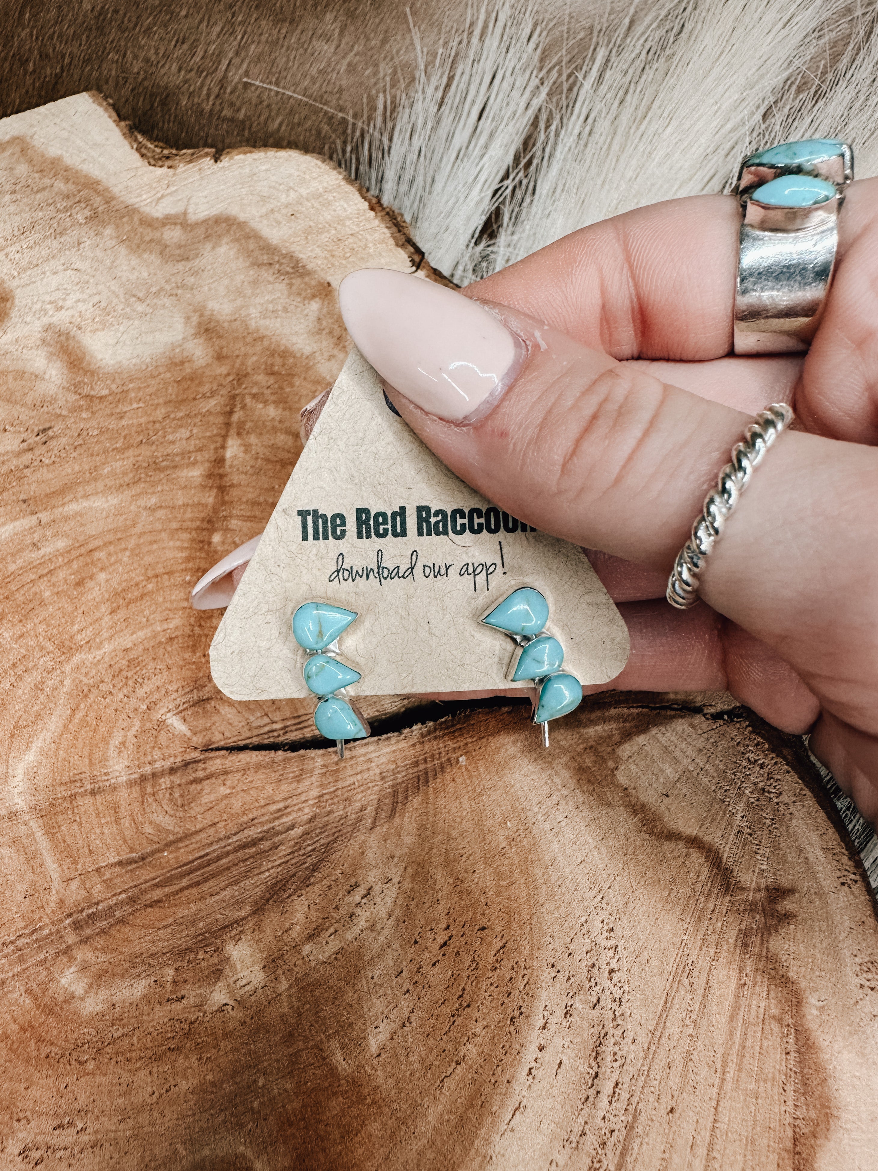 Experience the beauty and uniqueness of Authentic Kingman Turquoise with our Triple Mini Ear Crawler! Each piece features three teardrop-shaped stones in descending size set in Authentic Sterling Silver. The shepherd's hook back ensures a snug fit, perfect for adding a trendy touch to any outfit. And the best part? These gems come at an amazing price point! Elevate your collection with a variety of colors available.