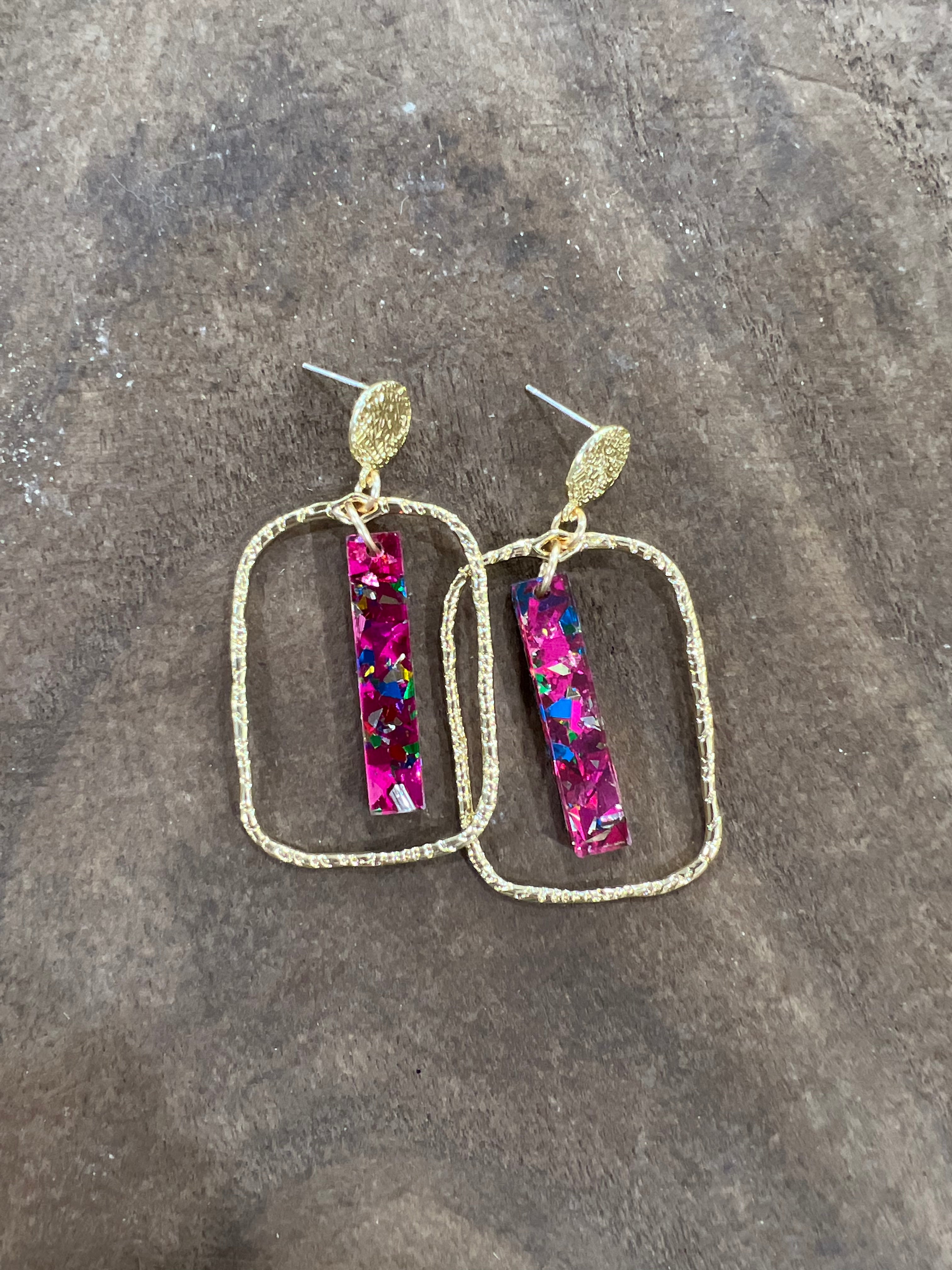 Add a splash of charm to your look with these Unicorn Stick Hoops. Crafted from gold-plated wire, the rectangular hoops offer a modern twist, while the pink and blue unicorn stick dangles playfully from a stamped gold post back. Lightweight and eye-catching, these earrings bring a fun pop of color and shine, perfect for turning everyday outfits into something extraordinary. Whether dressing up for a night out or adding flair to casual wear, these hoops make a bold yet whimsical statement.