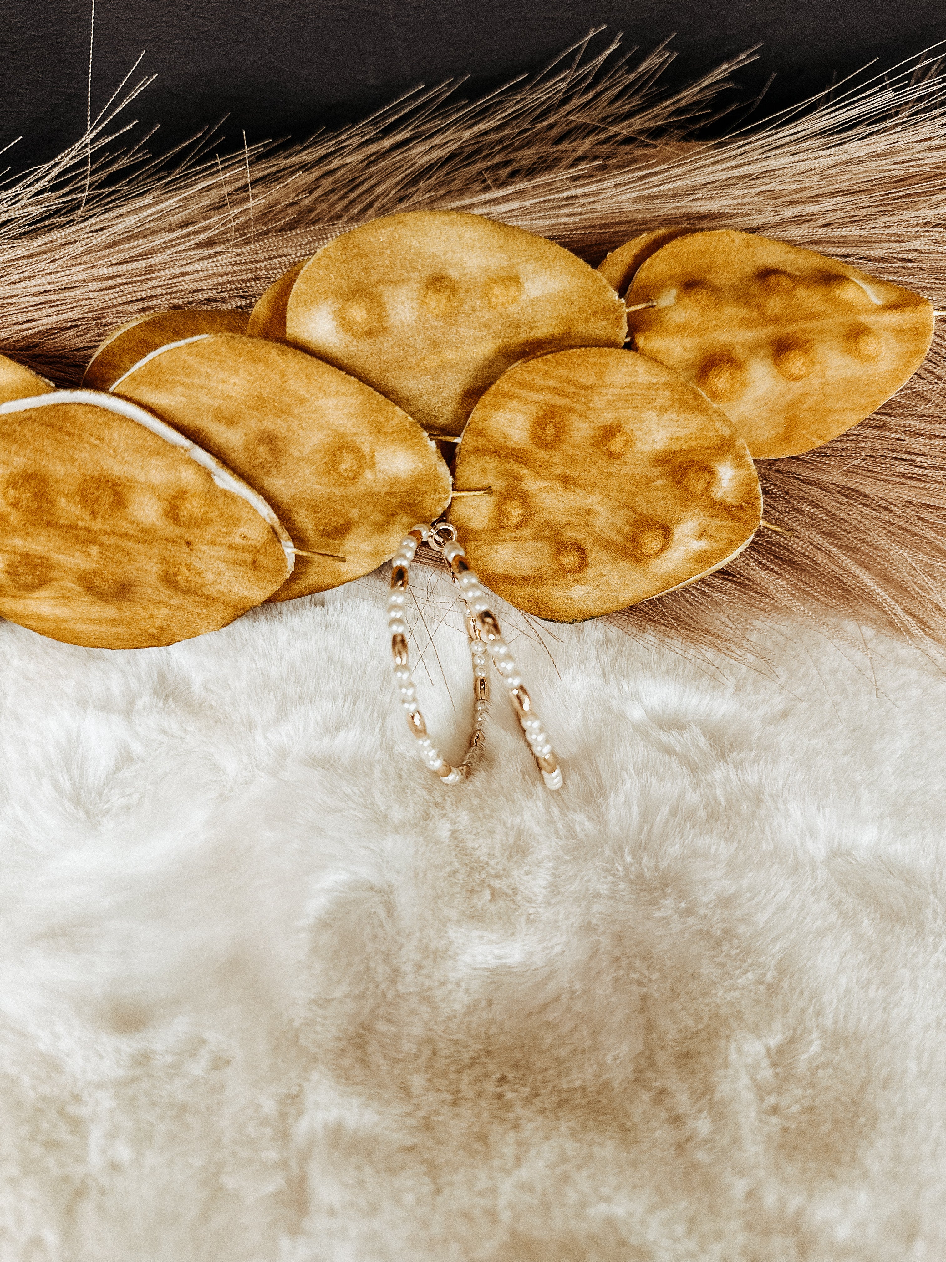 You can never go wrong with gold and pearls and these hoops are no exception! Featuring a 2" hoop highlighted with faux pearls and gold beads, they're the perfect chic and classy addition to your 'fit. The combination of a hinge and post back makes them extra secure, plus, they're lightweight and affordable - so grab one in each color: gold or silver!