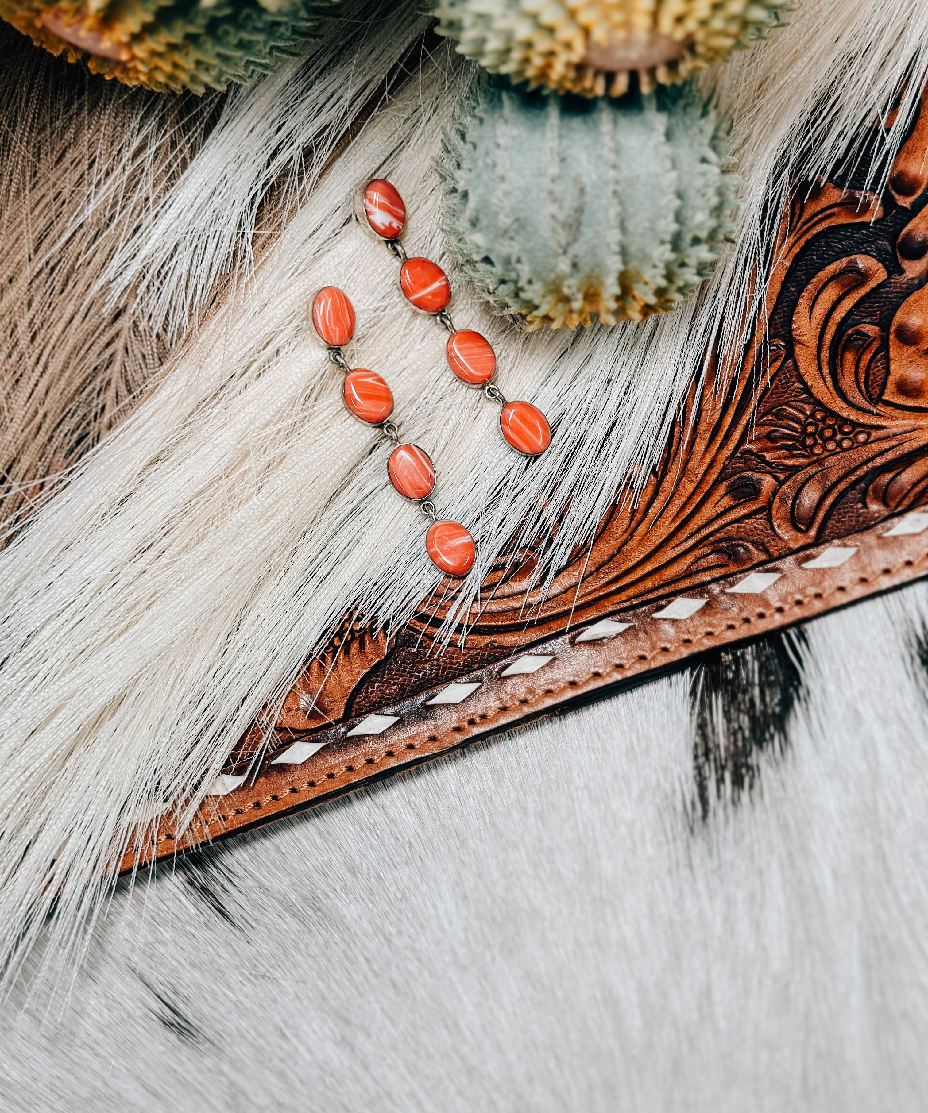 Coral 4 Stone Drop Earring