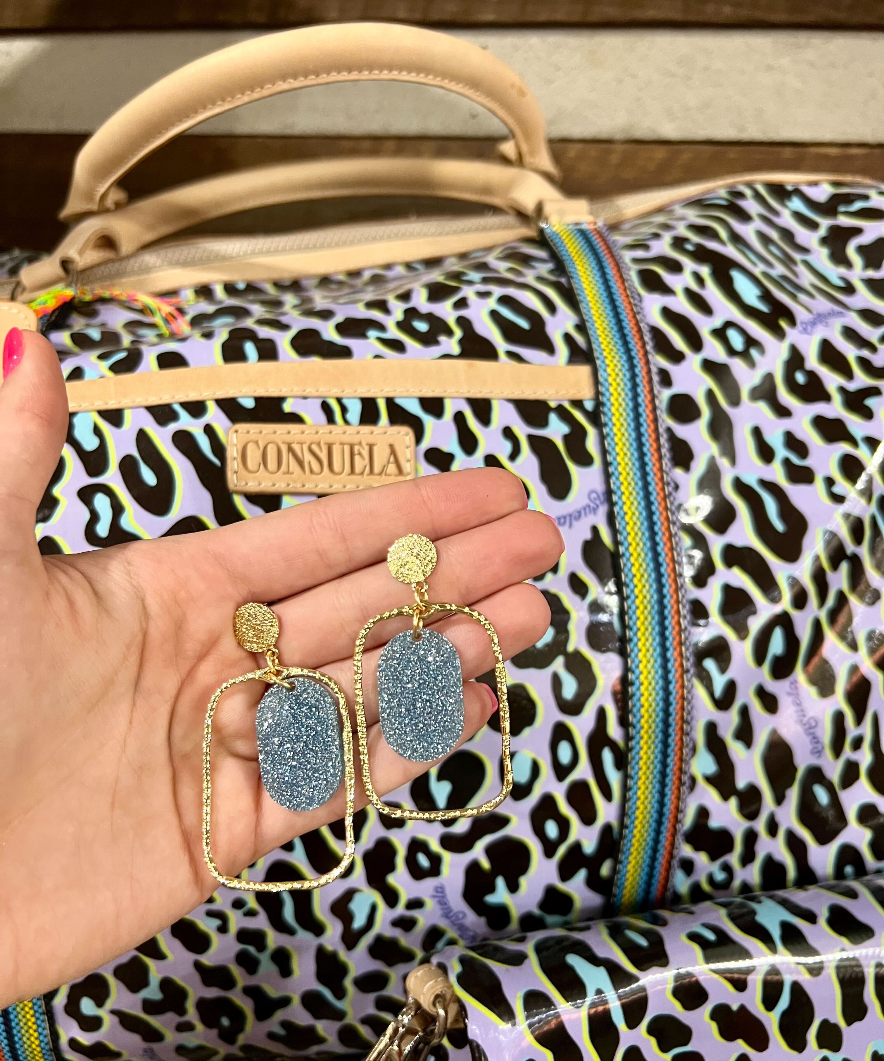 Blue Glitter Rectangle Hoops